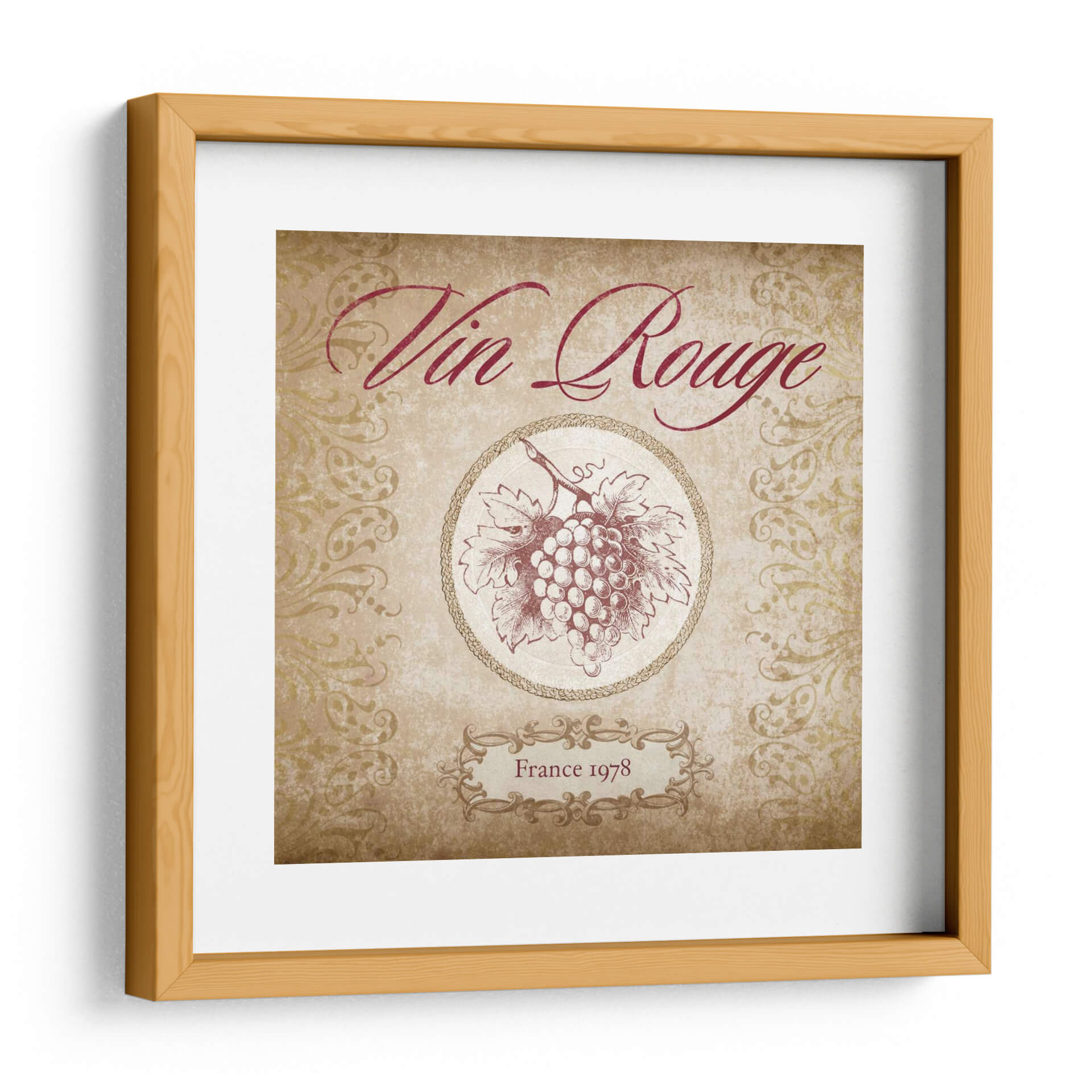 Transforma tu espacio con la cautivadora obra 'Etiqueta De Vino I' de Beth Anne Creative. Este cuadro decorativo evoca la sofisticación y el encanto del vino francés, presentando un diseño inspirado en las etiquetas de bodegas clásicas. La pieza central muestra un racimo de uvas en tonos burdeos, delicadamente dibujado y enmarcado por un borde ornamentado, sobre un fondo texturizado que simula pergamino envejecido. Los patrones paisley en tonos dorados y ocres añaden un toque de elegancia y calidez, creando una atmósfera rica y acogedora. La tipografía script en rojo vibrante que reza 'Vin Rouge' complementa a la perfección la estética vintage, mientras que la inscripción 'France 1978' añade un detalle nostálgico. Este cuadro es ideal para cocinas, comedores, bodegas o cualquier rincón donde desees añadir un acento de refinamiento y carácter. Su estilo retro y los cálidos tonos tierra lo convierten en una pieza versátil, capaz de integrarse en decoraciones rústicas, tradicionales o incluso contemporáneas que busquen un toque de historia y buen gusto. Deja que 'Etiqueta De Vino I' sea el punto focal que inspire conversaciones y celebre el arte de la vinicultura en tu hogar u oficina.