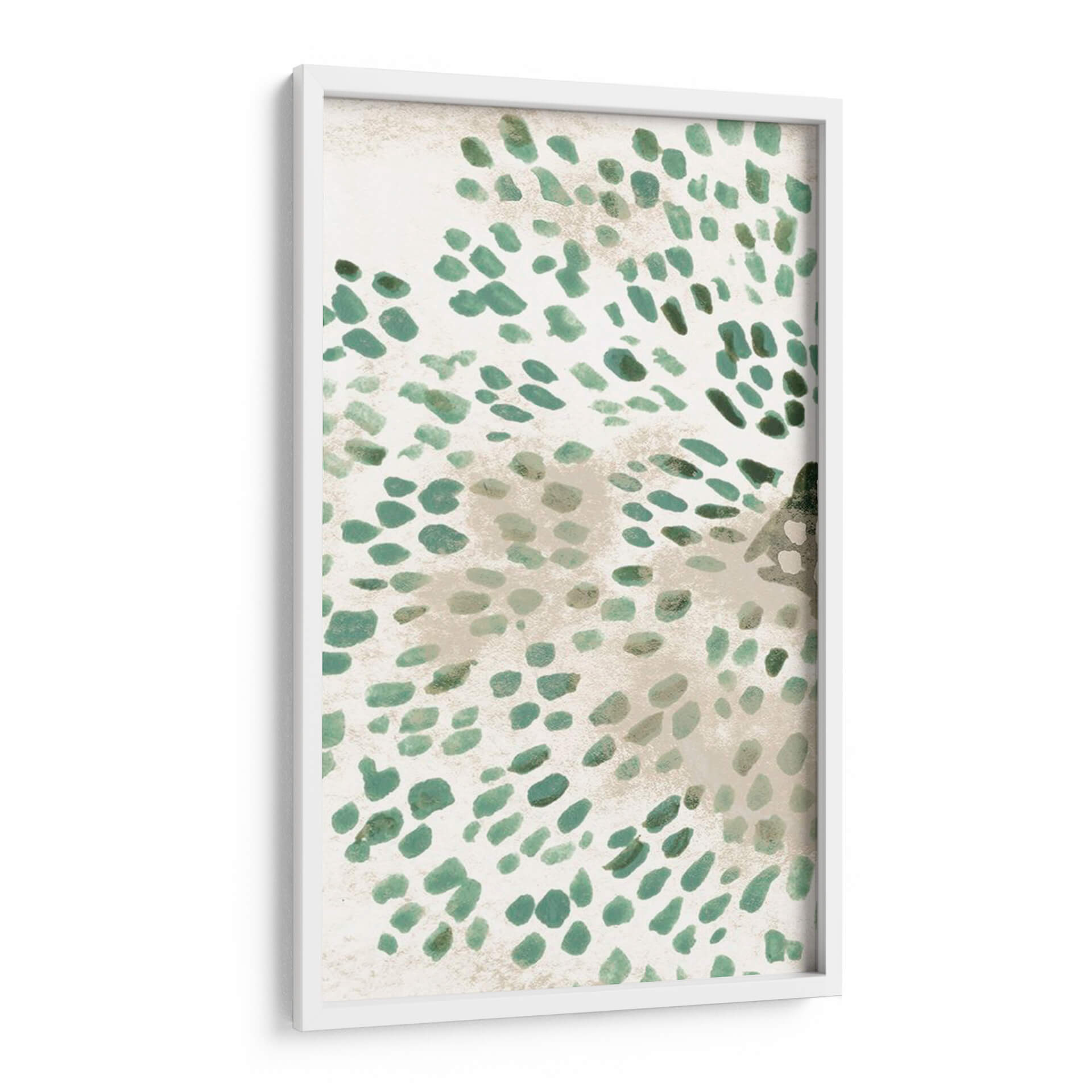 Sumérgete en la serenidad botánica con "Flowerhead Verde Iii", una obra de arte abstracto que evoca la delicadeza de la naturaleza a través de pinceladas orgánicas. Este cuadro decorativo presenta un patrón cautivador de manchas en tonos verde esmeralda y aguamarina, salpicadas sobre un fondo neutro de beige y blanco roto. La composición, aunque abstracta, sugiere la textura sutil de pétalos o hojas dispersas, creando una sensación de movimiento y vitalidad controlada. La paleta de colores armoniosa, dominada por verdes frescos y suaves tonos tierra, aporta calma y equilibrio a cualquier espacio. Ideal para quienes buscan infundir un toque de frescura natural y sofisticación contemporánea en su hogar u oficina, esta pieza se adapta perfectamente a estilos de decoración modernos, minimalistas o bohemios. Su presencia visual es a la vez sutil y llamativa, invitando a la contemplación y añadiendo una dimensión de tranquilidad y elegancia a tu ambiente. "Flowerhead Verde Iii" no es solo una decoración de pared, es una invitación a conectar con la belleza efímera del mundo natural, reinterpretada a través de una sensibilidad artística única.