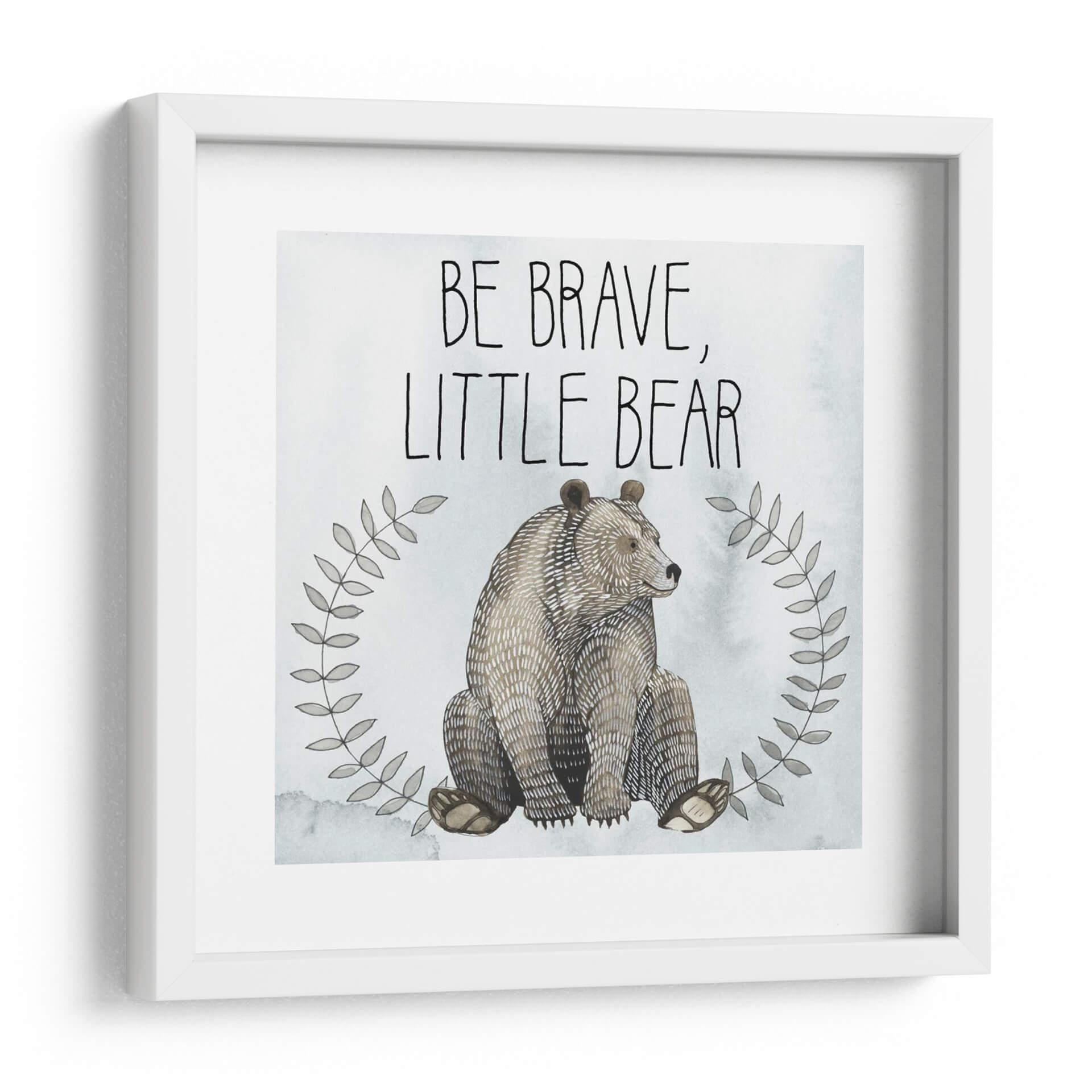 Celebra la valentía y la dulzura con nuestro encantador cuadro decorativo 'Forest Friends I', una obra de Grace Popp que captura la esencia de la naturaleza y la fortaleza interior. Esta pieza presenta un tierno oso sentado, rodeado por una delicada guirnalda de hojas en tonos grises y verdes suaves. La frase "BE BRAVE, LITTLE BEAR" (Sé valiente, pequeño oso) inspira un mensaje de coraje y resiliencia, convirtiéndolo en un regalo o adorno perfecto para habitaciones infantiles, guarderías o cualquier espacio que necesite un toque de optimismo. La técnica de acuarela digital le otorga una textura suave y una apariencia etérea, mientras que la paleta de colores serena y neutra facilita su integración en diversas decoraciones. Este cuadro decorativo es ideal para crear un ambiente acogedor y lleno de ternura, evocando la calma del bosque y el espíritu indomable de sus habitantes. Añade un toque de encanto rústico y un mensaje inspirador a tu hogar con esta hermosa representación artística.