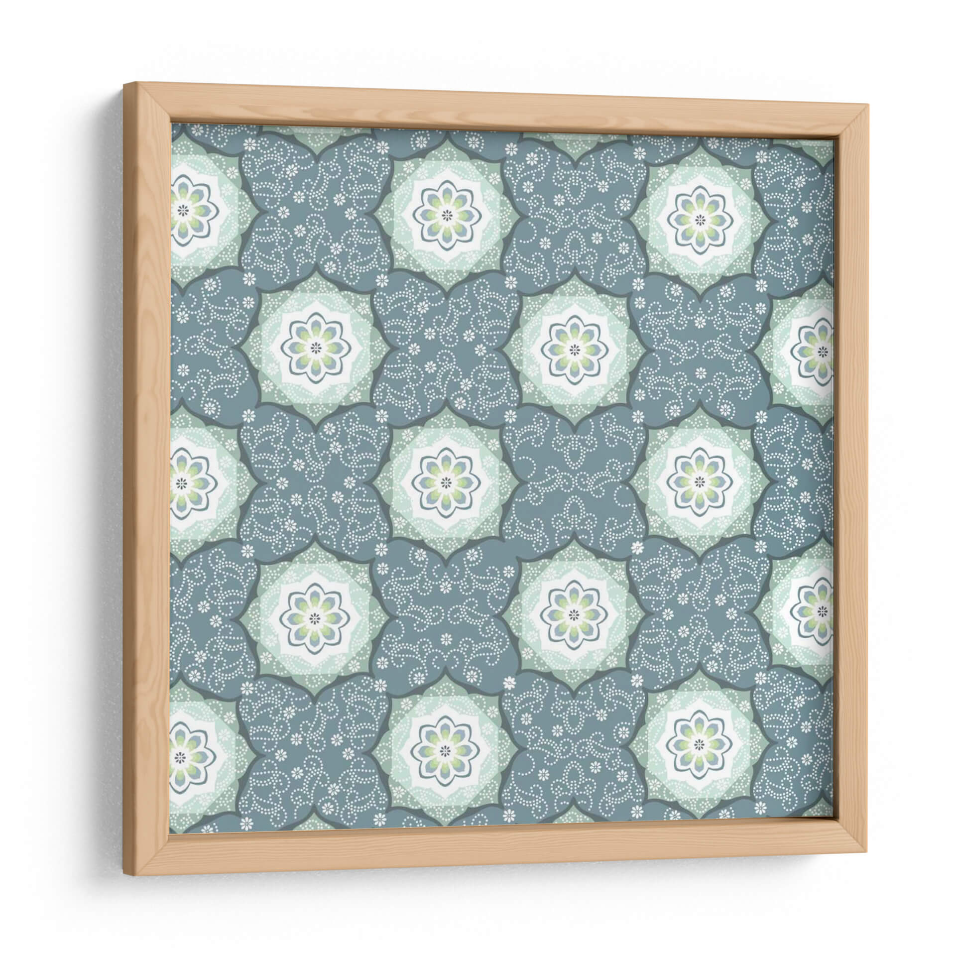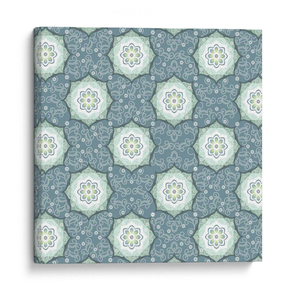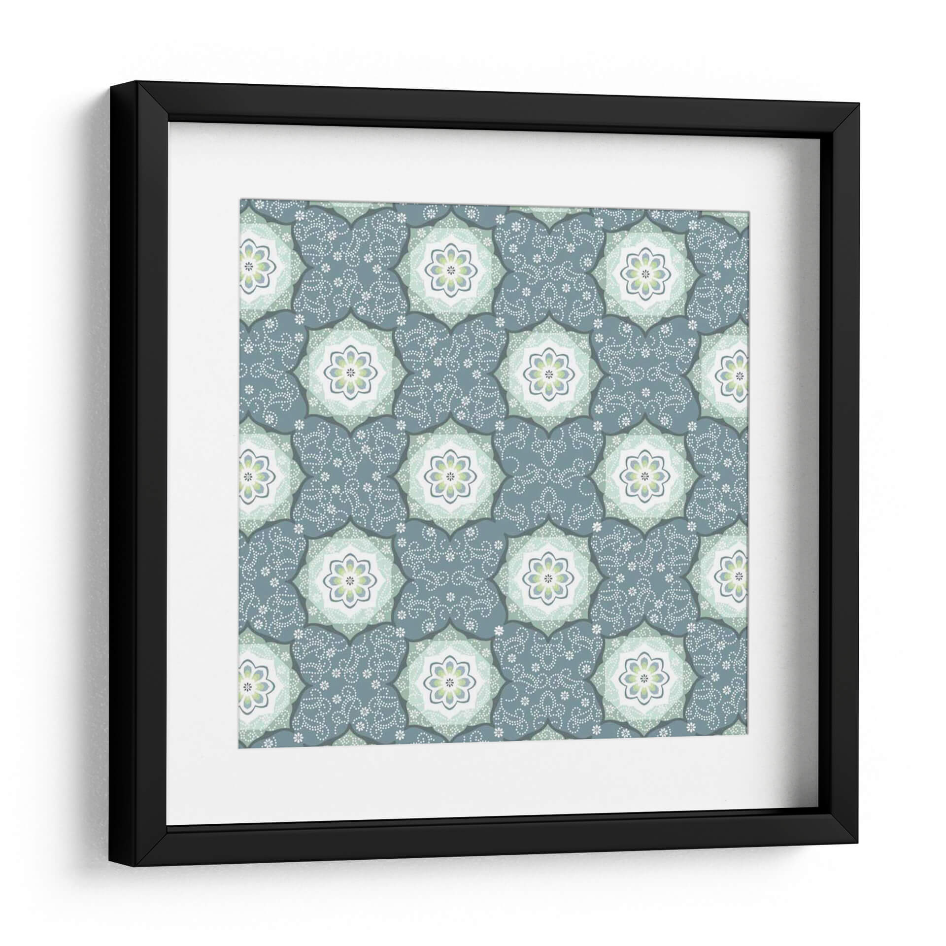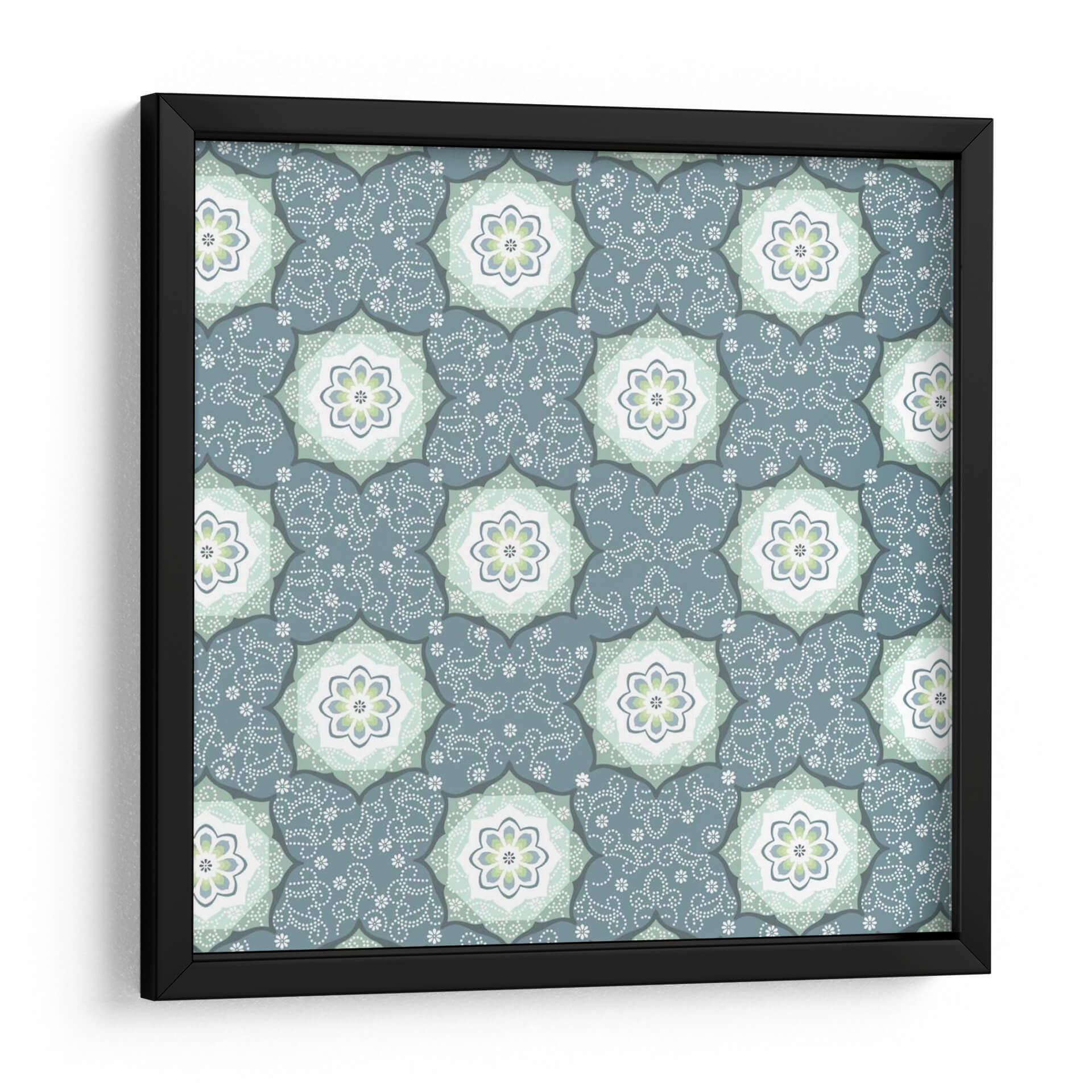 Añada un toque de elegancia y serenidad a su hogar con este cautivador cuadro decorativo "Glamour Medallions II" de Katia Hoffman. La obra presenta un patrón intrincado y simétrico de medallones florales superpuestos sobre un fondo texturizado en tonos azules y verdosos. Cada medallón central, con sus delicados pétalos en blanco y verde menta, se ve realzado por un sutil halo de puntos blancos, creando una sensación de profundidad y sofisticación. El diseño general evoca una atmósfera de calma y refinamiento, similar a los patrones geométricos de inspiración marroquí o mehndi, pero con una sensibilidad contemporánea. La paleta de colores suaves y armoniosos lo convierte en una pieza versátil, perfecta para complementar una variedad de estilos de decoración, desde el bohemio chic hasta el moderno escandinavo. Imagine este cuadro como un punto focal en su sala de estar, aportando una dosis de tranquilidad y un aire de lujo discreto a su espacio. También sería una adición exquisita a un dormitorio, creando un refugio de paz y belleza. "Glamour Medallions II" no es solo una decoración, es una invitación a la contemplación y al bienestar visual, ideal para quienes buscan arte que inspire y eleve el espíritu de su entorno.
