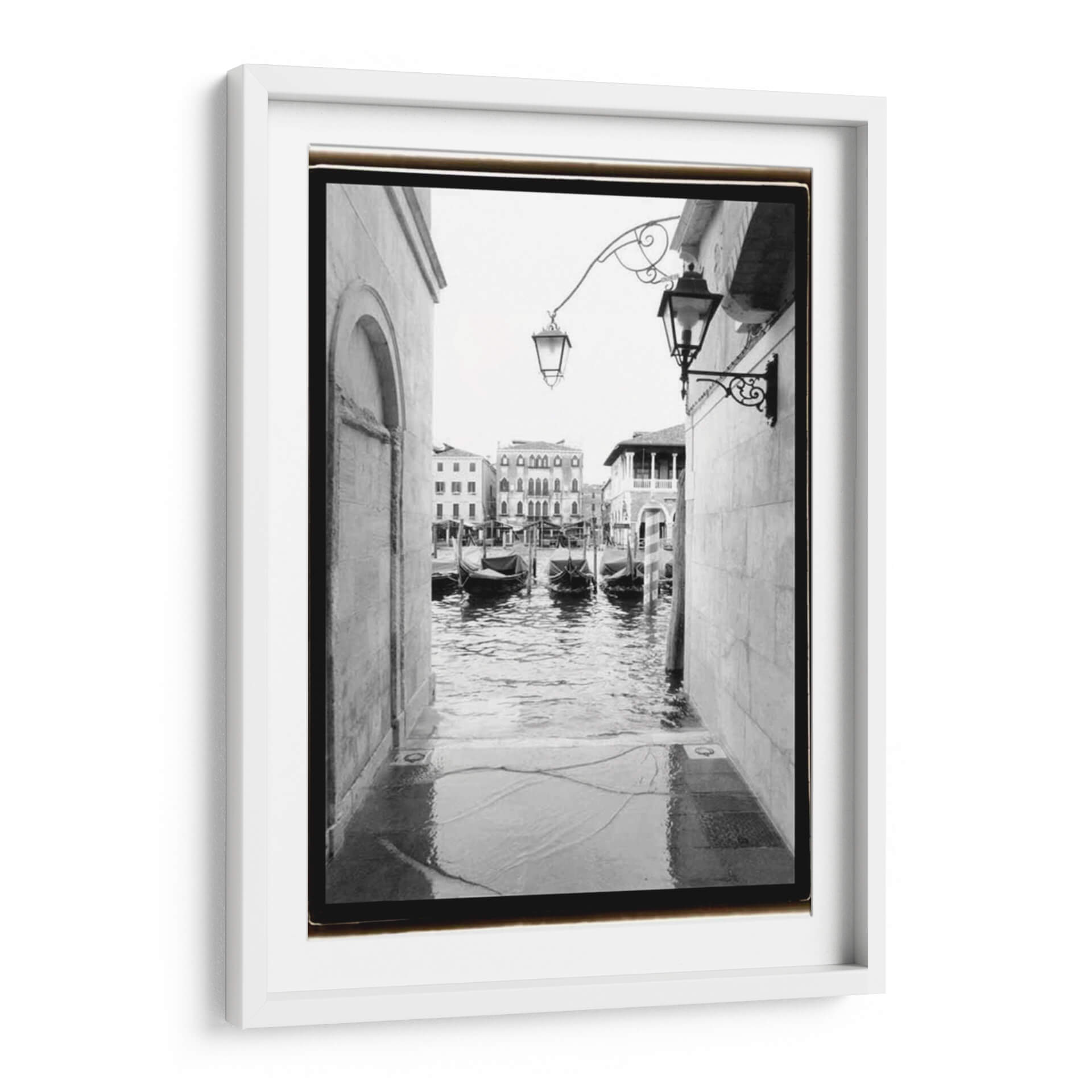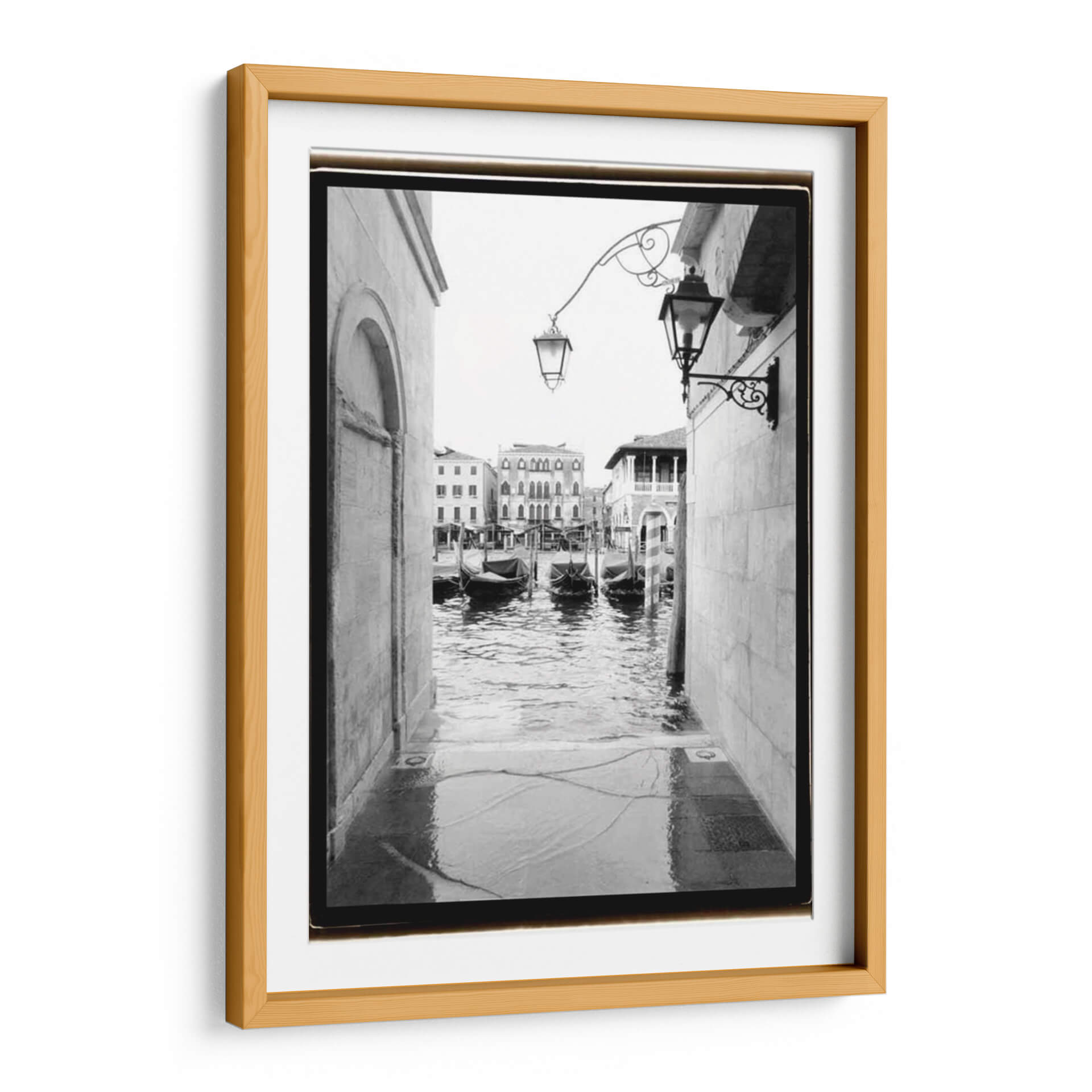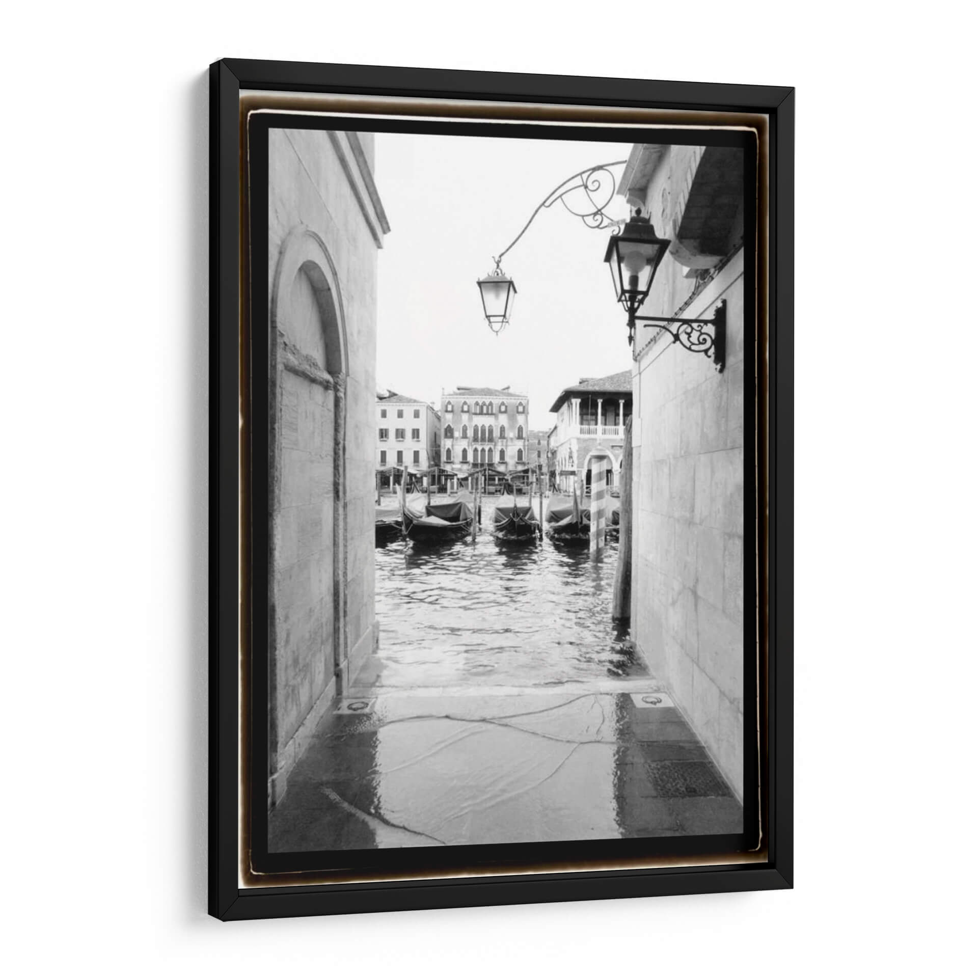 Sumérgete en la atmósfera romántica y atemporal de Venecia con "Glimpses Grand Canal Venecia III", una obra de arte digital que captura la esencia de esta ciudad icónica. La fotografía en blanco y negro, titulada "Glimpses Grand Canal Venecia III" y firmada por la artista Laura DeNardo, transporta al espectador a un rincón pintoresco, donde las tranquilas aguas del canal reflejan la arquitectura clásica y las sombras alargadas de las farolas crean un ambiente melancólico y evocador. La composición, que se abre a través de un pasaje entre edificios, dirige la mirada hacia los gondoleros esperando pacientemente, anclados al muelle como centinelas silenciosos de la historia veneciana. La ausencia de color resalta las texturas, el juego de luces y sombras, y la profundidad de la escena, invitando a la contemplación y al descubrimiento de los detalles sutiles. Este cuadro decorativo es una invitación a revivir la magia de Venecia, ideal para añadir un toque de elegancia y sofisticación a cualquier espacio, ya sea un salón, un estudio o un dormitorio, aportando una sensación de calma y serenidad.