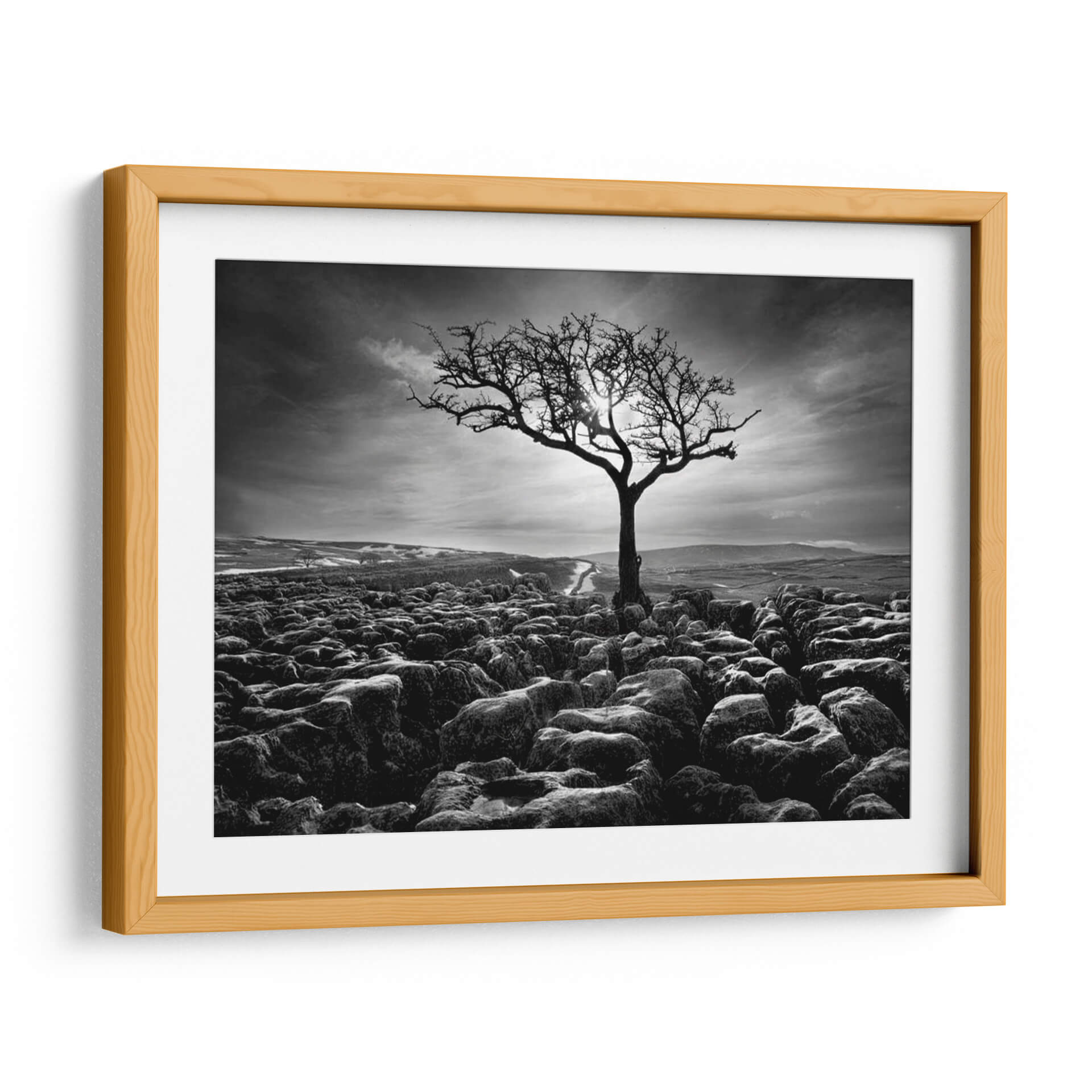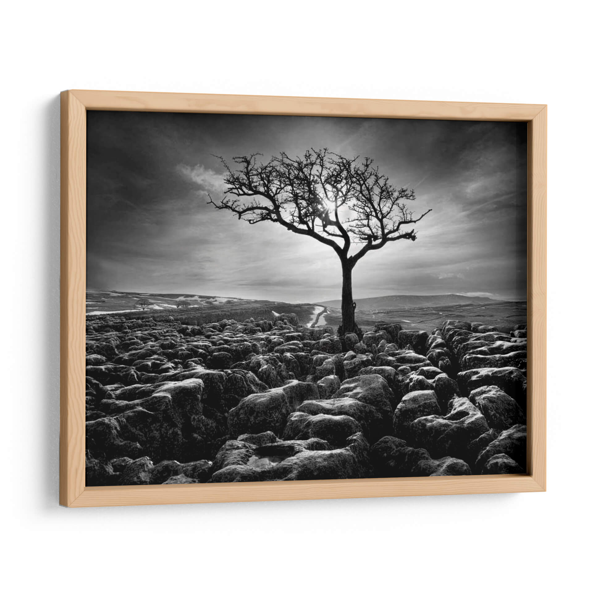 Sumérgete en la fuerza de la naturaleza con "Grikes Y Clints", una obra fotográfica en blanco y negro del aclamado artista Martin Henson. Esta pieza captura la esencia de un paisaje rocoso y desolado, dominado por un árbol solitario que se alza con resiliencia contra un cielo dramático y texturizado. Los tonos de gris, desde los negros profundos hasta los blancos luminosos, crean un contraste impactante y una atmósfera de solemnidad y contemplación. La composición, con las rocas formando un primer plano detallado y el árbol actuando como punto focal, invita a la reflexión sobre la resistencia y la belleza encontrada en la simplicidad. "Grikes Y Clints" es ideal para espacios que buscan un toque de carácter y profundidad, como un estudio, una sala de estar moderna o incluso una oficina, aportando una sensación de calma y fortaleza atemporal. Su estética monocromática la convierte en una adición versátil y elegante a cualquier decoración, dialogando con una amplia gama de estilos interiores, desde lo industrial hasta lo contemporáneo, sin perder su poder evocador. Deja que esta fotografía te transporte a un paisaje de poder silencioso y belleza perdurable.