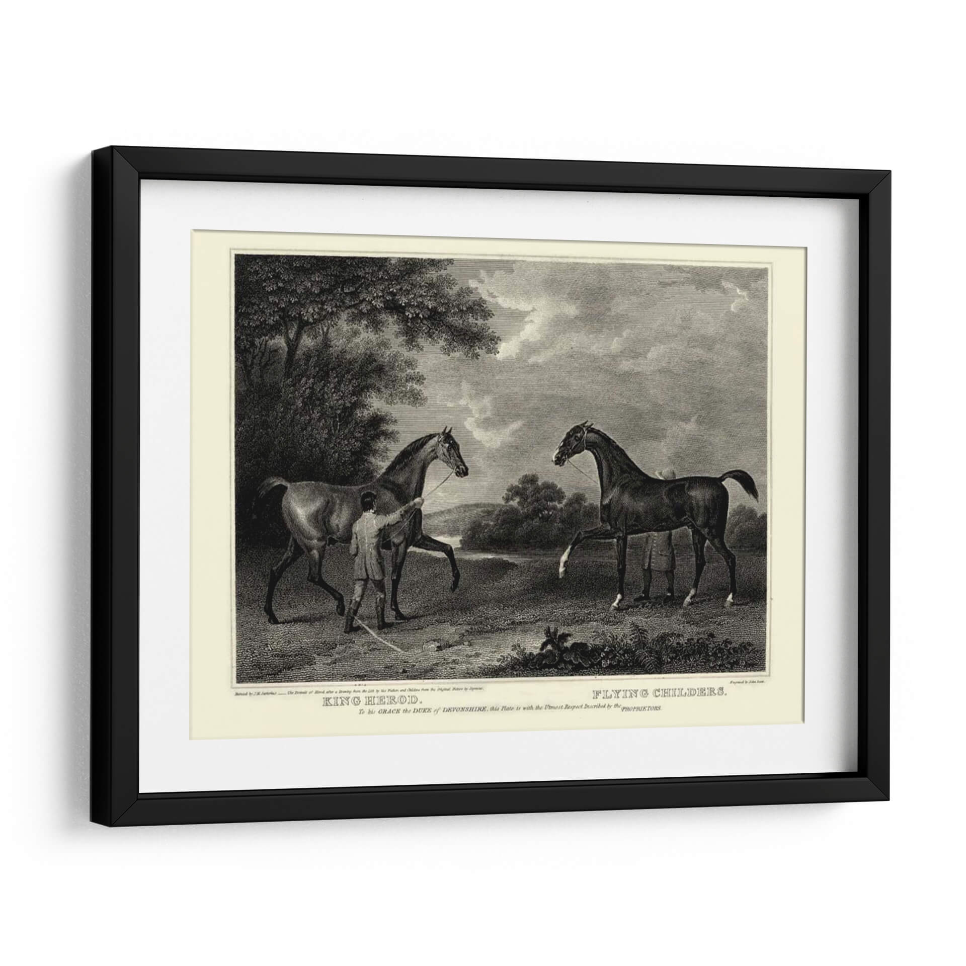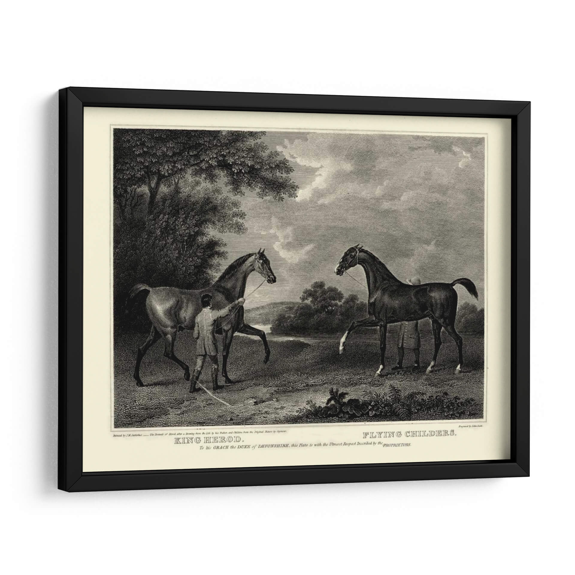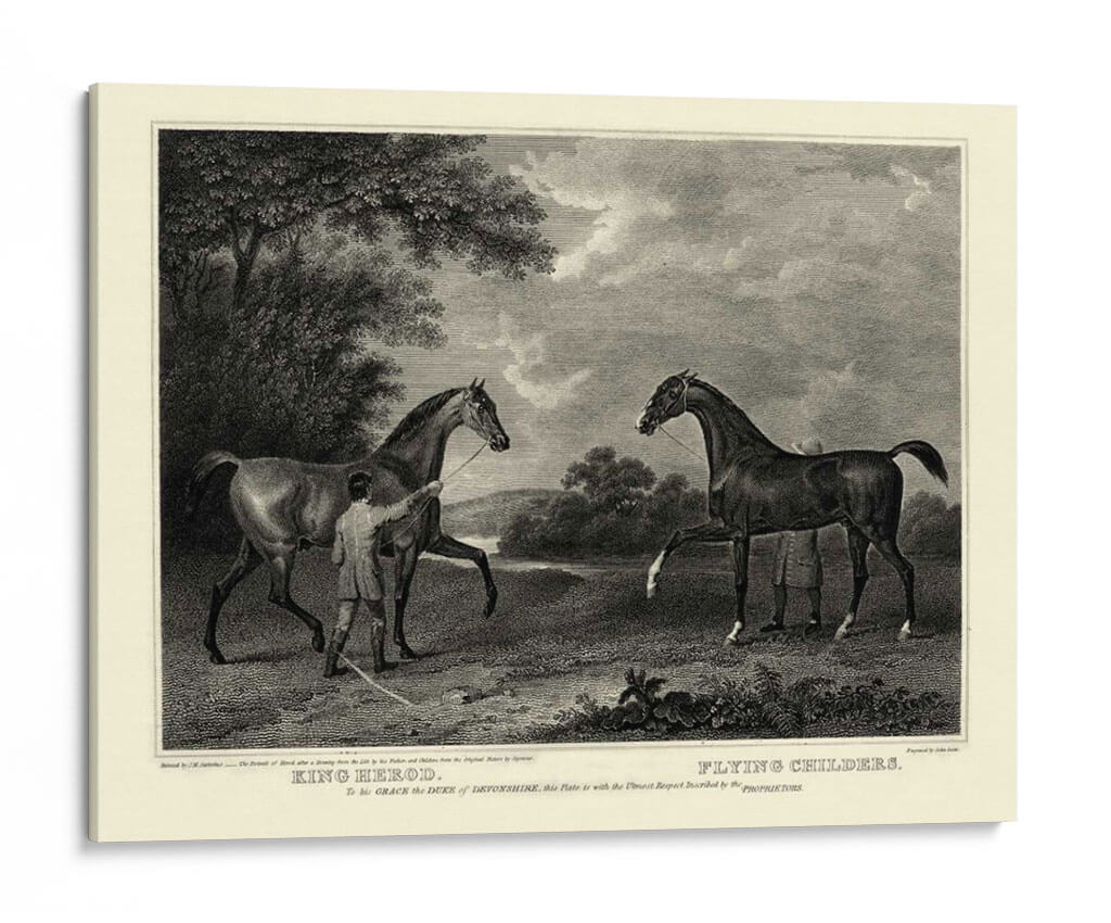 Sumérgete en la majestuosidad ecuestre con este cuadro decorativo que captura la esencia de "King Herodes Y Hijos Voladores", una obra clásica del artista John Scott. La pieza evoca una atmósfera de nobleza y potencia, presentando dos caballos de raza con una elegancia atemporal, acompañados por la figura de un cuidador. La paleta de tonos grises y negros, acentuada por las sutiles texturas del grabado, crea un contraste dramático y sofisticado. El paisaje de fondo, con su vegetación frondosa y un cielo nublado, añade profundidad y un toque de realismo pastoral. Este cuadro decorativo es ideal para espacios que buscan transmitir autoridad, tradición y un aprecio por la belleza natural y la fuerza animal. Perfecto para salones, estudios u oficinas que deseen un punto focal con carácter e historia, este grabado evoca la era dorada de la cría de caballos y la elegancia de estas magníficas criaturas, añadiendo un toque de distinción atemporal a cualquier decoración.