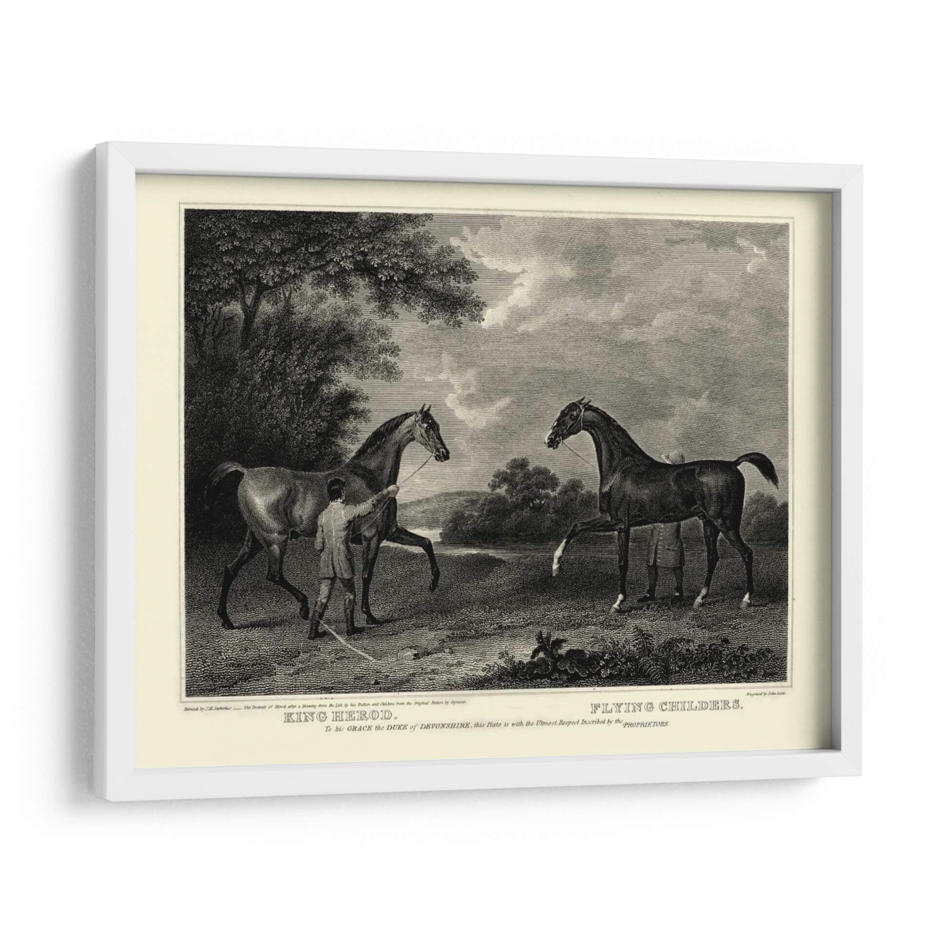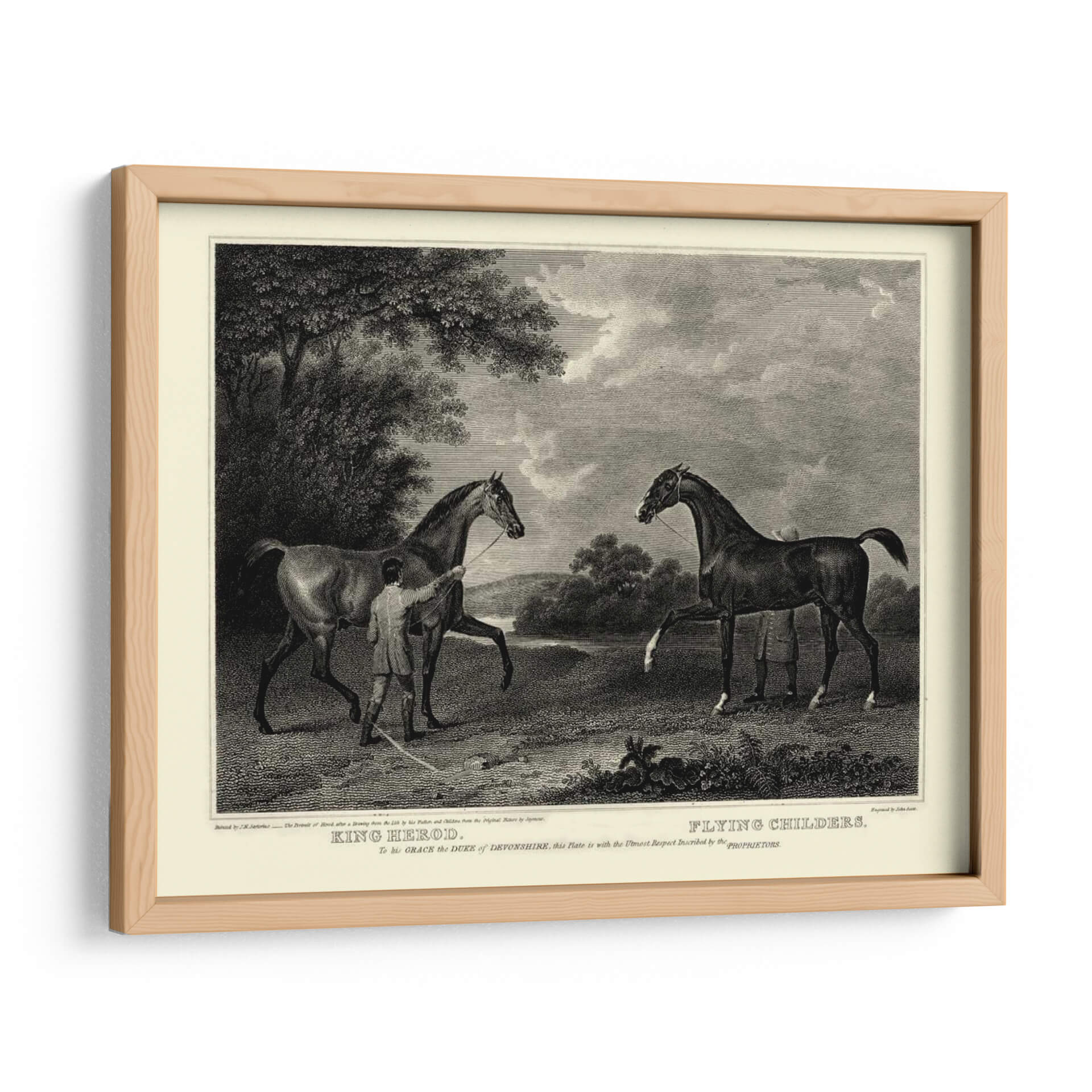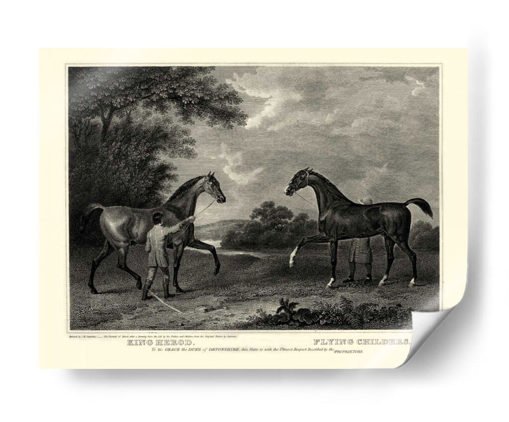 Sumérgete en la majestuosidad ecuestre con este cuadro decorativo que captura la esencia de "King Herodes Y Hijos Voladores", una obra clásica del artista John Scott. La pieza evoca una atmósfera de nobleza y potencia, presentando dos caballos de raza con una elegancia atemporal, acompañados por la figura de un cuidador. La paleta de tonos grises y negros, acentuada por las sutiles texturas del grabado, crea un contraste dramático y sofisticado. El paisaje de fondo, con su vegetación frondosa y un cielo nublado, añade profundidad y un toque de realismo pastoral. Este cuadro decorativo es ideal para espacios que buscan transmitir autoridad, tradición y un aprecio por la belleza natural y la fuerza animal. Perfecto para salones, estudios u oficinas que deseen un punto focal con carácter e historia, este grabado evoca la era dorada de la cría de caballos y la elegancia de estas magníficas criaturas, añadiendo un toque de distinción atemporal a cualquier decoración.