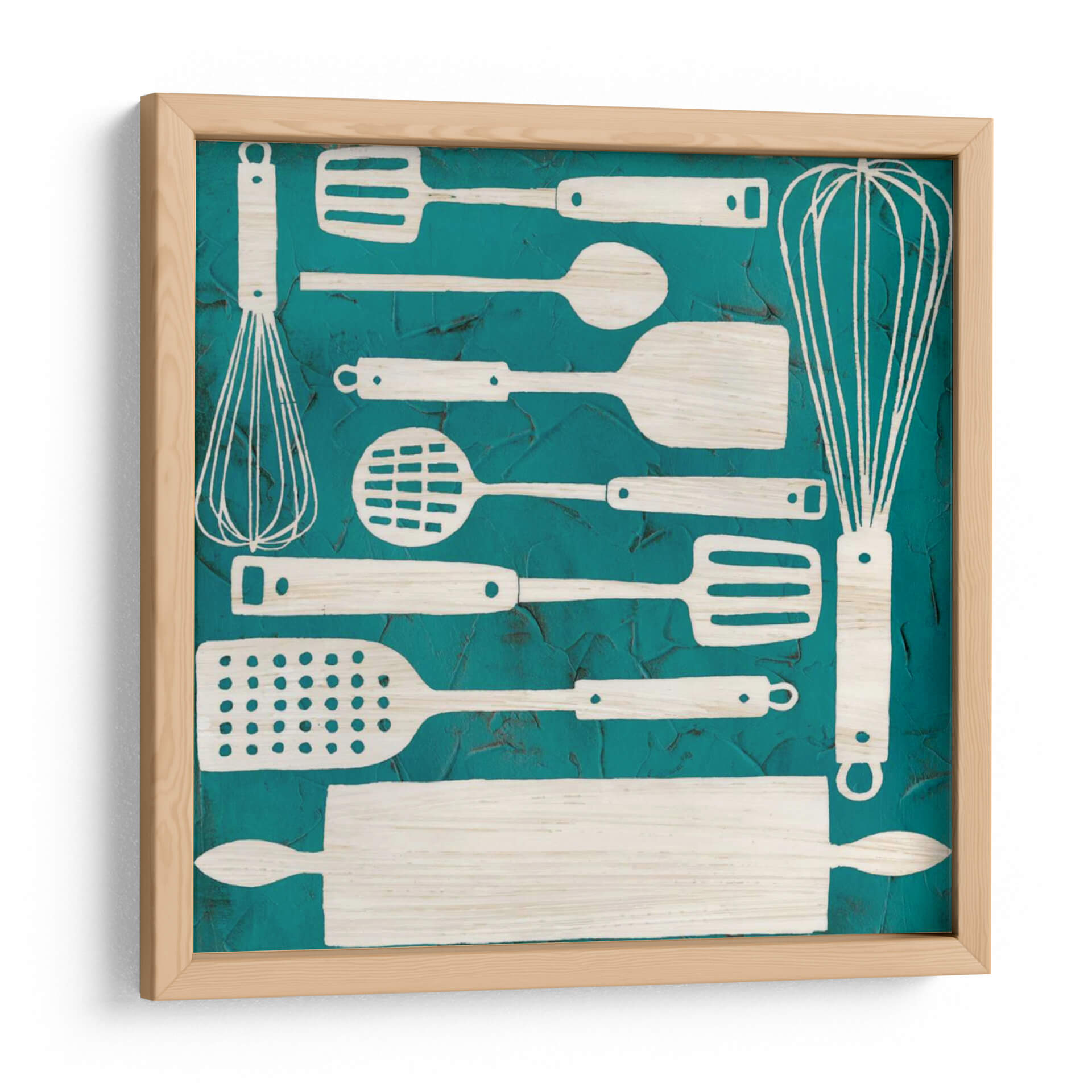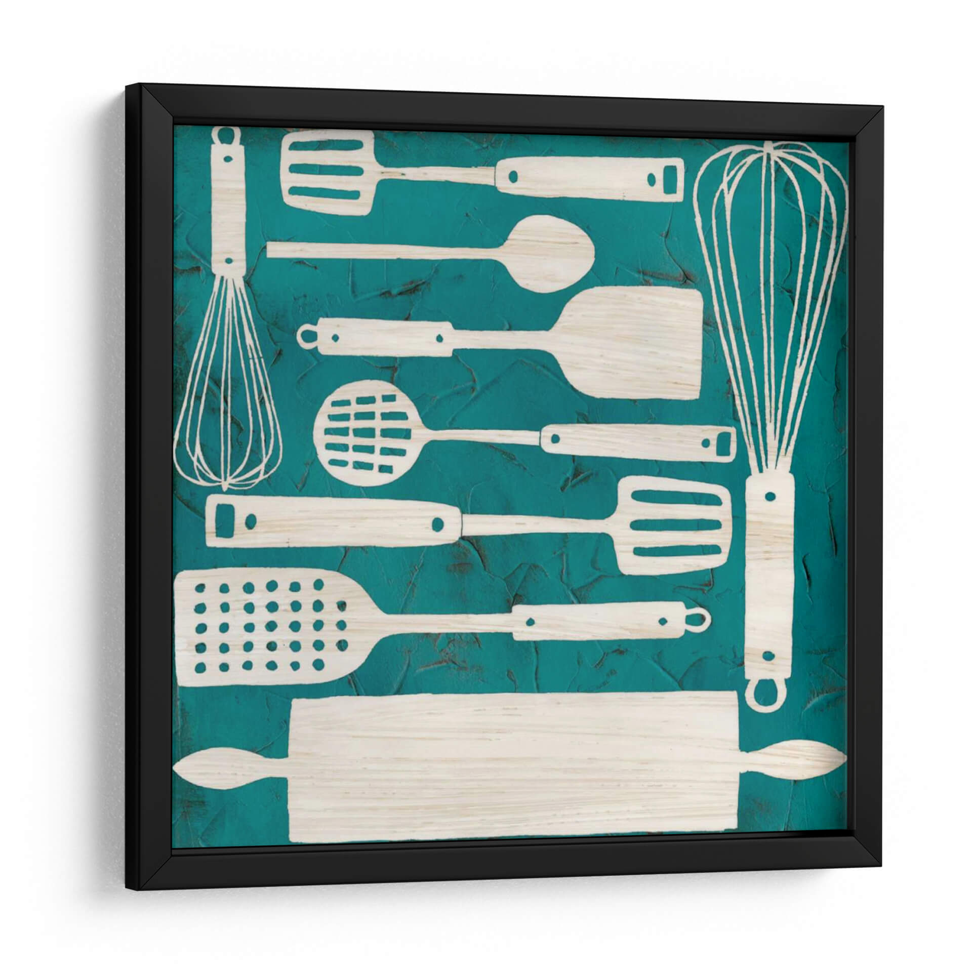 Transforma tu cocina o comedor en un espacio lleno de estilo con el cuadro decorativo "Kitsch De Cocina Iv" de June Erica Vess. Esta vibrante obra de arte presenta una composición ingeniosa de utensilios de cocina en tonos blanco y madera clara, dispuestos sobre un fondo texturizado de un profundo y cautivador color turquesa. La paleta de colores evoca una sensación de frescura y vitalidad, perfecta para añadir un toque de alegría y personalidad a cualquier ambiente culinario o área de reunión. El diseño gráfico, con sus líneas limpias y la repetición de elementos funcionales, crea un ritmo visual atractivo que captura la atención y fomenta la conversación. Ideal para cocinas modernas, rústicas o incluso espacios de coworking con un toque gastronómico, este cuadro es una celebración del arte de cocinar y de la estética que rodea la preparación de alimentos. Su estilo único lo convierte en un punto focal excepcional, capaz de inspirar creatividad y calidez. Añade un toque de originalidad y buen gusto a tu hogar con esta pieza que combina funcionalidad y diseño artístico de manera excepcional.