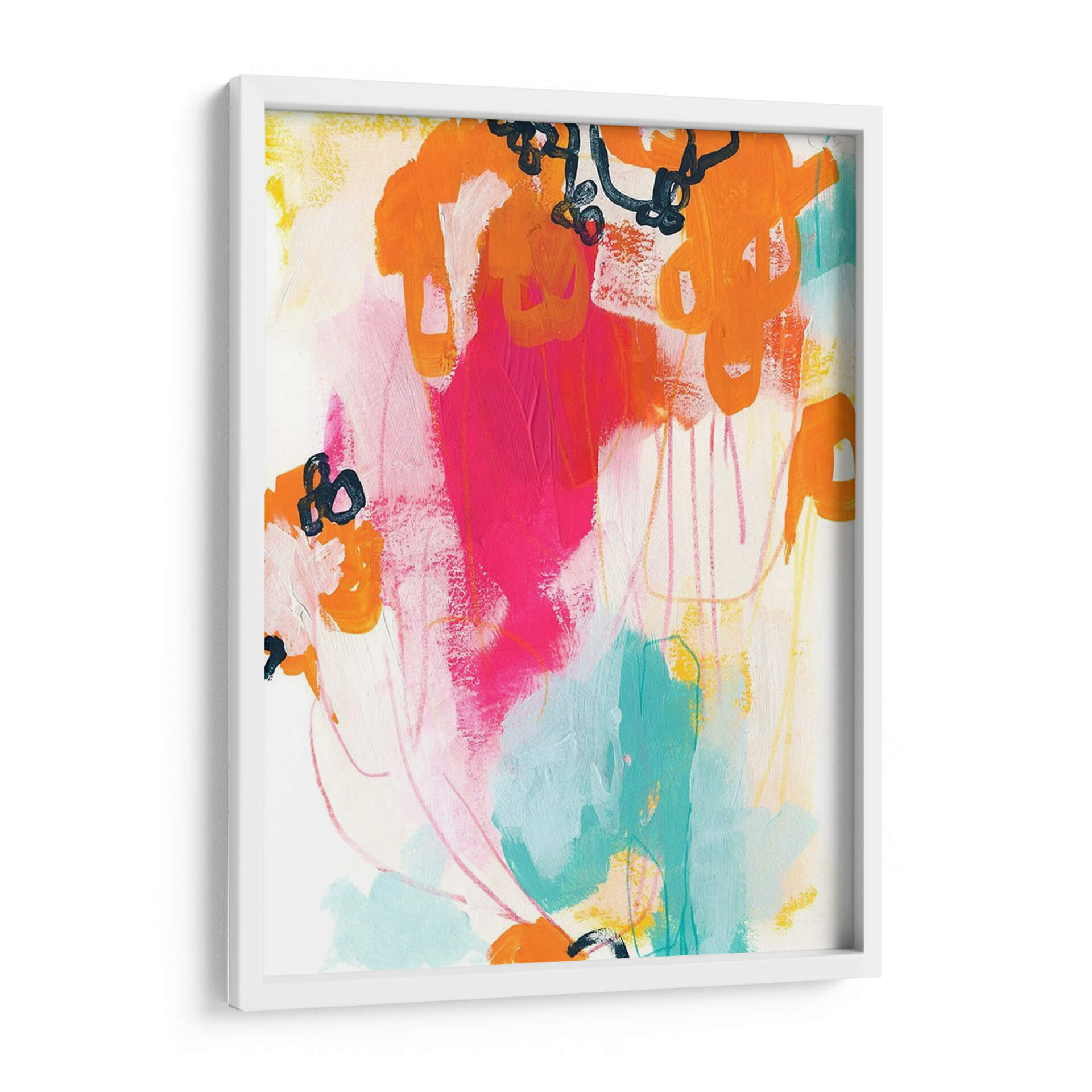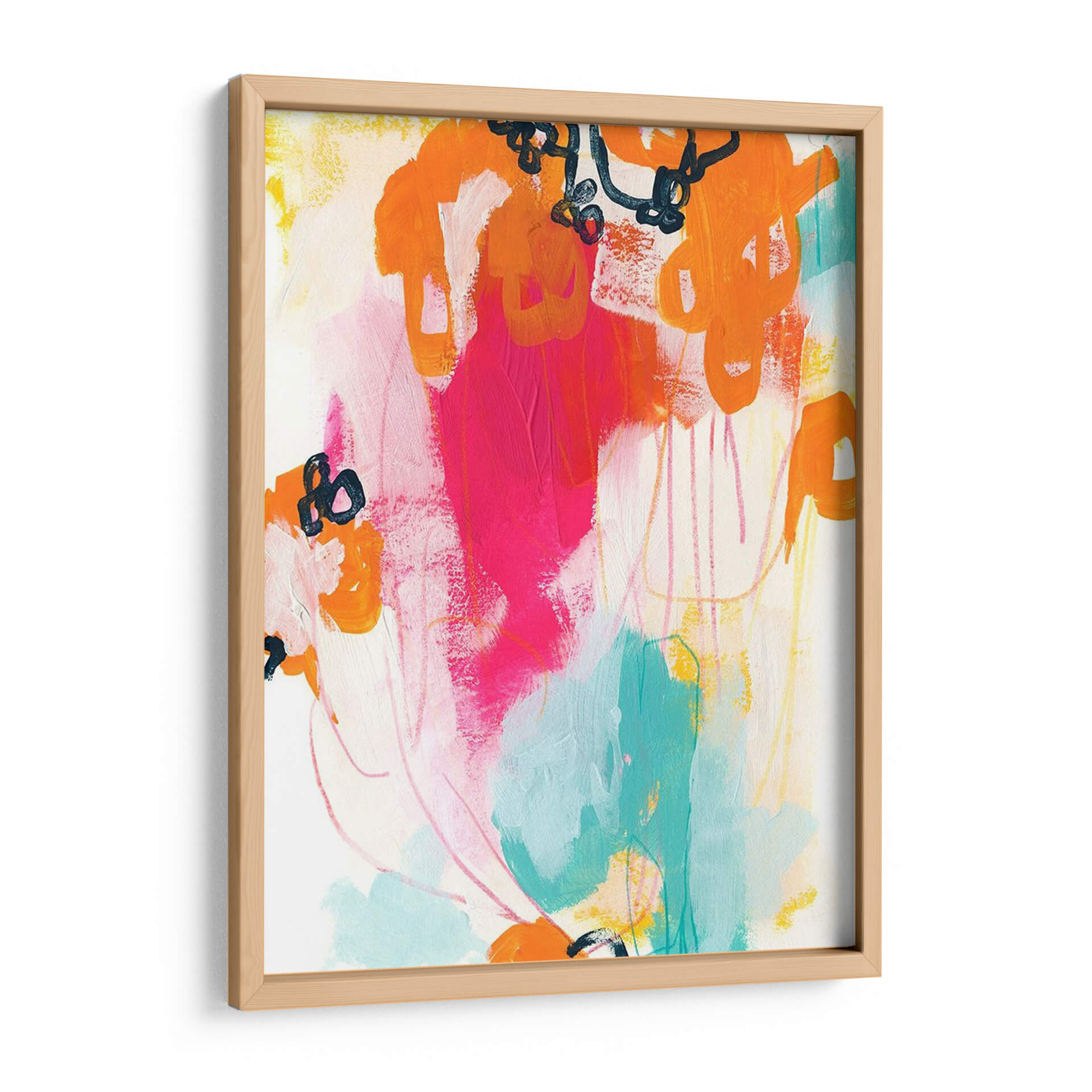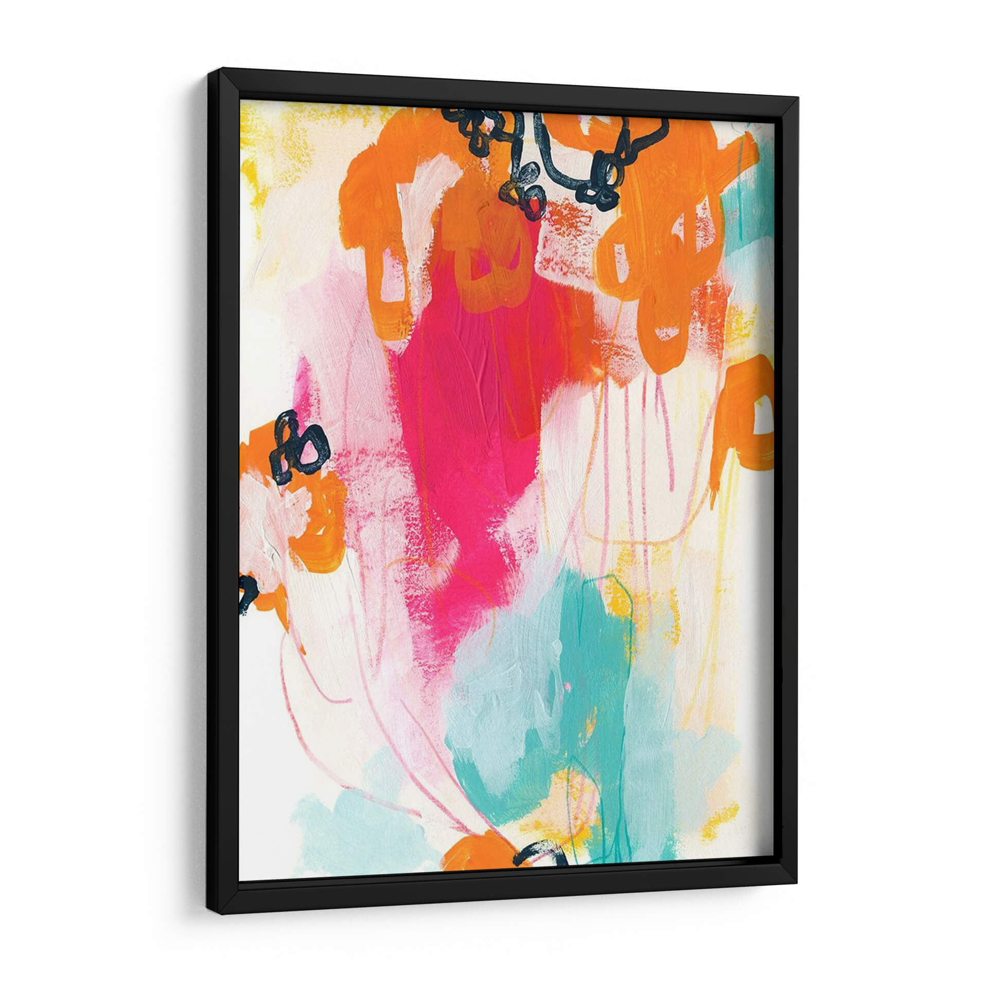 Sumérgete en la vitalidad de "Lado Brillante I", una obra abstracta contemporánea de June Erica Vess que irradia energía y optimismo. Este cuadro decorativo se caracteriza por una audaz composición de pinceladas gestuales en vibrantes tonos de rosa fucsia, naranja intenso y turquesa brillante, contrastando con sutiles trazos de color pastel y negro. Las formas fluidas y orgánicas se entrelazan sobre un fondo blanco roto, creando una sensación de movimiento y alegría desenfadada. La técnica mixta, visible en la textura y las capas de pintura, añade profundidad y un carácter artesanal a la pieza. "Lado Brillante I" es ideal para infundir vida a cualquier espacio, ya sea una sala de estar moderna, una oficina creativa o un dormitorio luminoso. Su estilo abstracto y su paleta de colores alegres lo convierten en un punto focal cautivador que invita a la contemplación y estimula la conversación. Añade un toque de audacia y optimismo a tu decoración con este lienzo que celebra la expresión libre y la belleza del color.