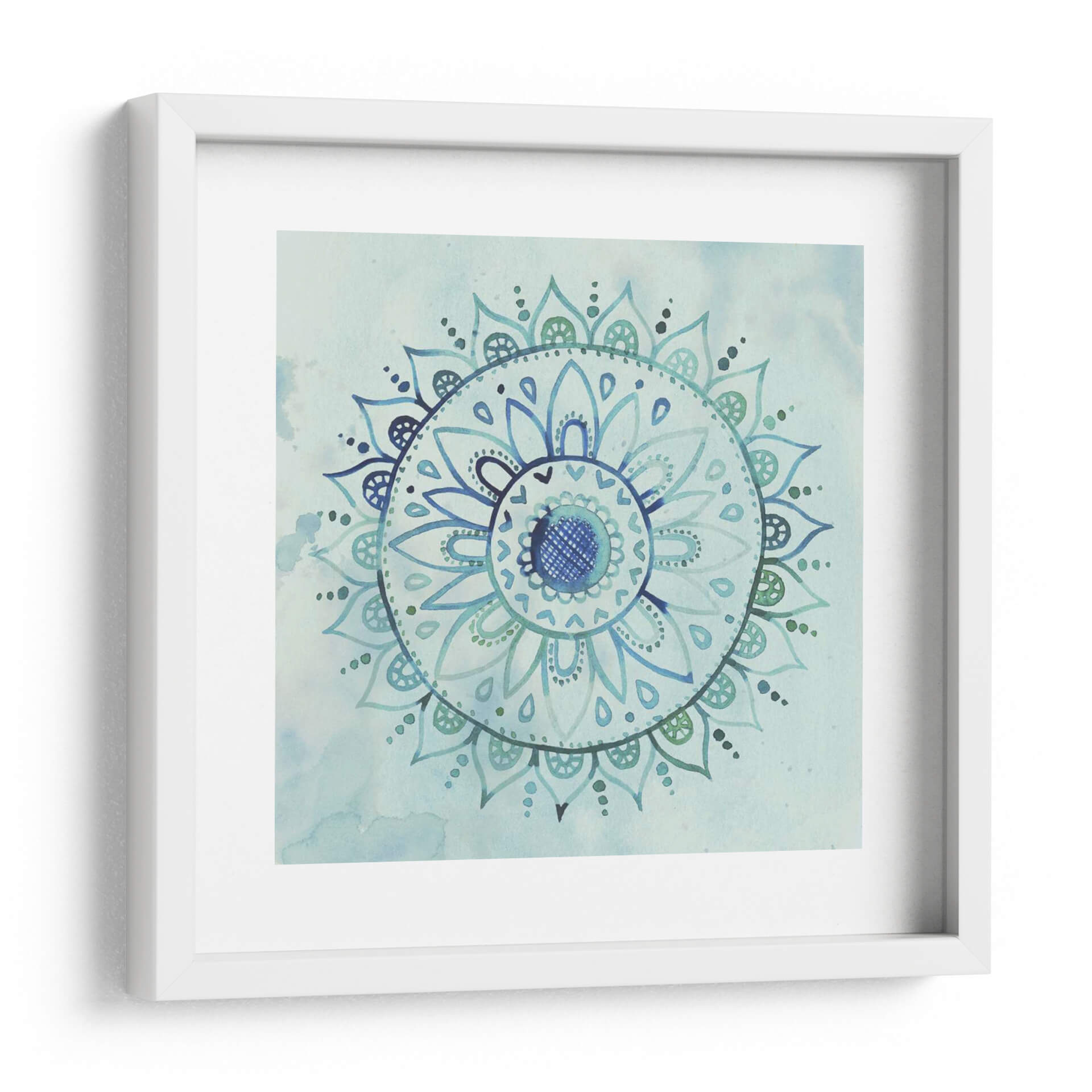 Sumérgete en la serenidad con 'Mandala Acuarela I', una obra de arte que irradia calma y equilibrio. Creada por Grace Popp, esta pieza presenta un intrincado diseño de mandala ejecutado en delicadas acuarelas, evocando una sensación de paz y armonía. La paleta de colores, dominada por tonos de azul y verde agua, crea un ambiente relajante, perfecto para cualquier espacio que busque un toque de tranquilidad. Los detalles precisos y las formas fluidas invitan a la contemplación, haciendo de este cuadro decorativo una adición excepcional para tu hogar u oficina. Ideal para salas de estar, dormitorios o estudios, este arte de pared contemporáneo añade un punto focal suave pero cautivador. Transforma tu ambiente con la belleza etérea de las mandalas y la maestría acuarela de Grace Popp, creando un refugio visual de serenidad y estilo moderno. Añade una dimensión de paz y conexión a tu decoración con esta pieza única.