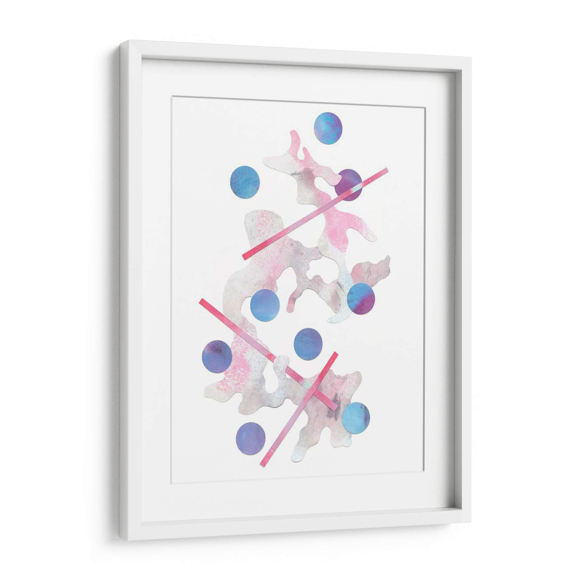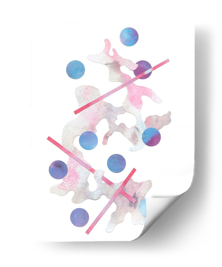 Sumérgete en la serenidad abstracta de "Nube De Pintura I", una obra de arte contemporáneo que desafía las convenciones visuales. Este cuadro decorativo presenta una composición dinámica de formas orgánicas etéreas, teñidas en suaves tonos de rosa y lavanda, que parecen flotar sobre un fondo blanco inmaculado. La delicadeza de las pinceladas, reminiscentes de acuarelas fluidas, crea una sensación de movimiento y ligereza, como si se tratara de nubes de pintura suspendidas en el tiempo. Intercaladas con estas formas fluidas, círculos de un azul vibrante y líneas rojas nítidas añaden toques de color contrastante y estructura geométrica, creando un equilibrio visual intrigante entre lo orgánico y lo abstracto. Esta pieza es ideal para quienes buscan añadir un toque de sofisticación moderna y calma a su hogar u oficina. Su paleta de colores sutil pero impactante la convierte en una adición versátil para cualquier espacio, desde un salón minimalista hasta un despacho contemporáneo, aportando una atmósfera de tranquilidad y creatividad. Descubre cómo este cuadro decorativo puede transformar tu ambiente, invitando a la contemplación y al diálogo estético.