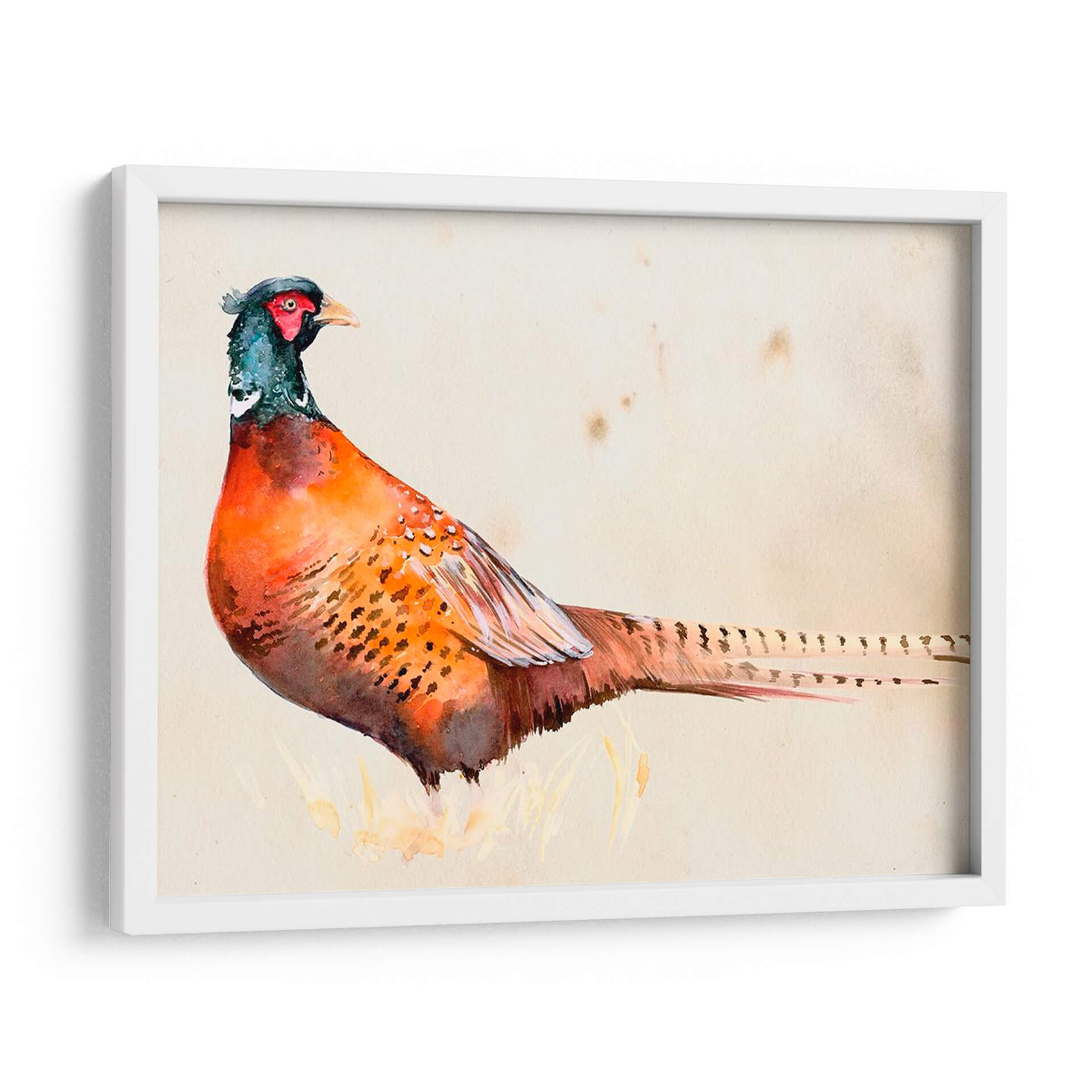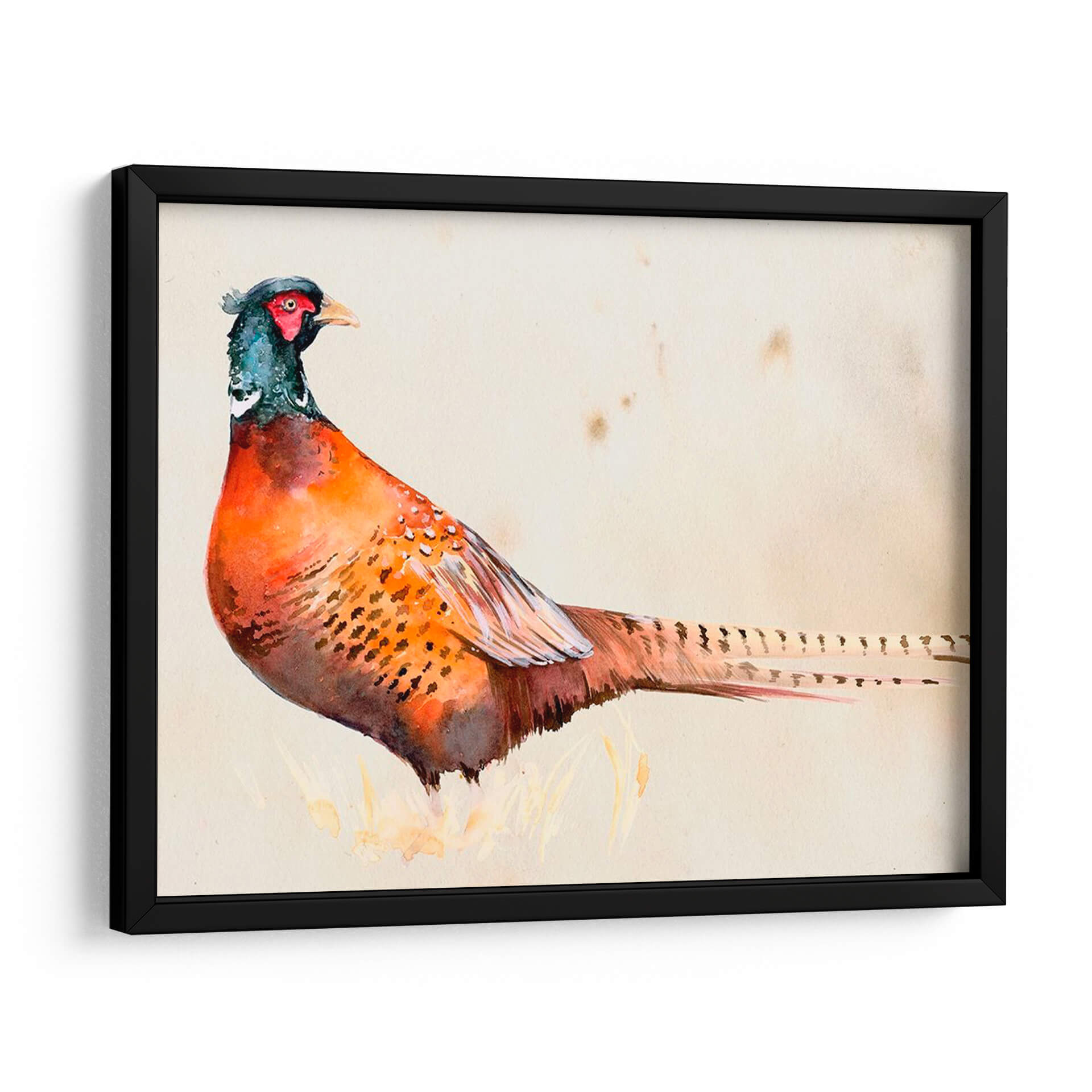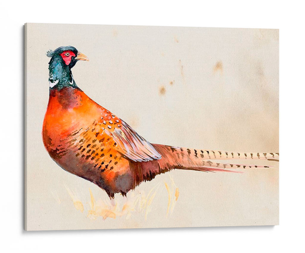 Embellece tu hogar con "Pheasantry Ii", una obra de arte exquisita que captura la majestuosidad de un faisán en acuarela. Los vibrantes tonos anaranjados y rojizos del plumaje del ave contrastan sutilmente con los toques de azul verdoso en su cabeza, creando una pieza visualmente cautivadora. El fondo neutro, con sus delicadas manchas, evoca una sensación de antigüedad y elegancia, permitiendo que el sujeto principal sea el protagonista indiscutible. Esta pieza, con su estilo detallado y realista, pero a la vez etéreo gracias a la técnica de acuarela, es perfecta para añadir un toque de naturaleza y sofisticación a cualquier espacio. Imagina este cuadro decorativo en tu sala de estar, aportando un punto focal de conversación, o en tu estudio, inspirando tranquilidad y concentración. Es ideal para quienes aprecian la belleza de la fauna y buscan incorporar elementos orgánicos en su decoración interior. "Pheasantry Ii" no es solo una imagen, es una invitación a la contemplación y un tributo a la delicadeza de la naturaleza, transformando cualquier pared en una galería de arte personal.