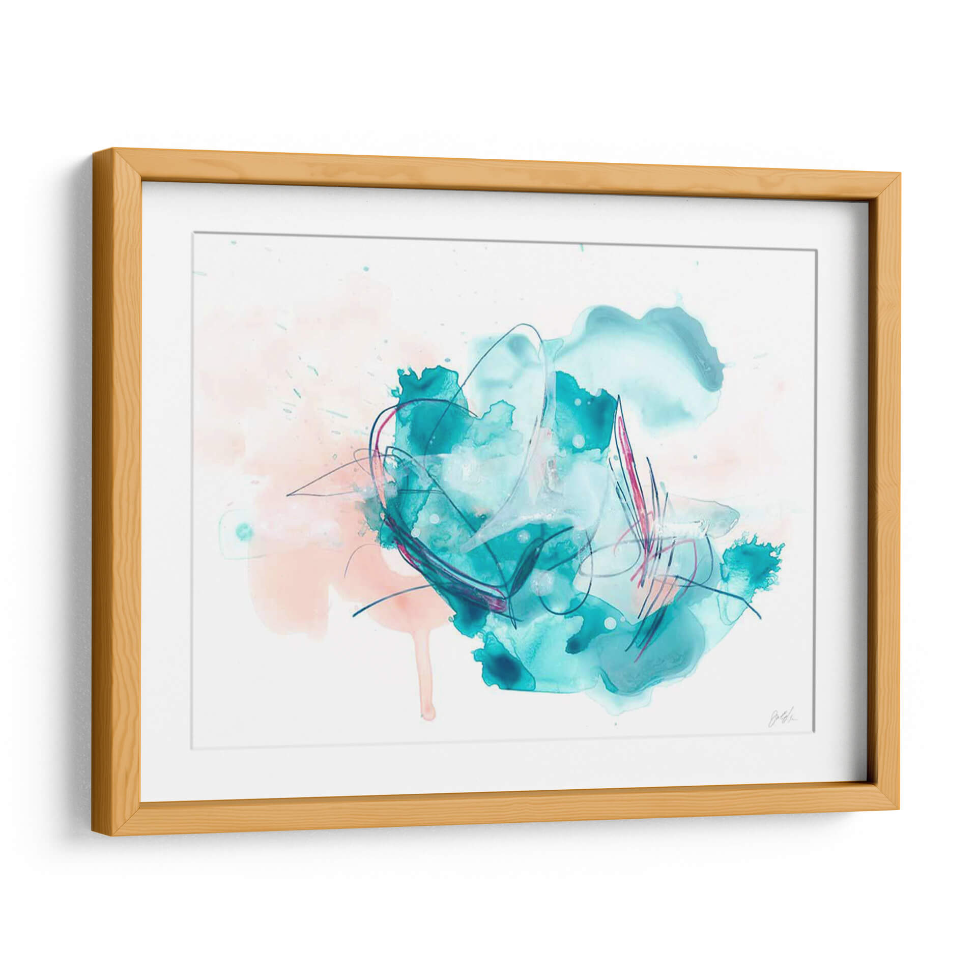 Sumérgete en la serenidad y el dinamismo de "Pileus Ii", una obra de arte abstracta contemporánea de June Erica Vess. Esta pieza cautiva con su fluida composición y una paleta de colores que evoca la calma del océano y la delicadeza del amanecer. Las etéreas capas de acuarela en tonos turquesa y aguamarina se entrelazan con sutiles toques de rosa pálido y pinceladas finas en carmesí, creando una danza visual de formas orgánicas y líneas gestuales. El fondo blanco aporta una sensación de amplitud y pureza, permitiendo que las formas centrales respiren y destaquen. "Pileus Ii" no es solo una decoración, sino una invitación a la contemplación, perfecta para añadir un toque de sofisticación moderna a cualquier espacio, ya sea una sala de estar minimalista, un dormitorio tranquilo o una oficina creativa. Su estilo abstracto lo convierte en un punto focal versátil que complementa una variedad de decoraciones, aportando una atmósfera de serenidad y elegancia.