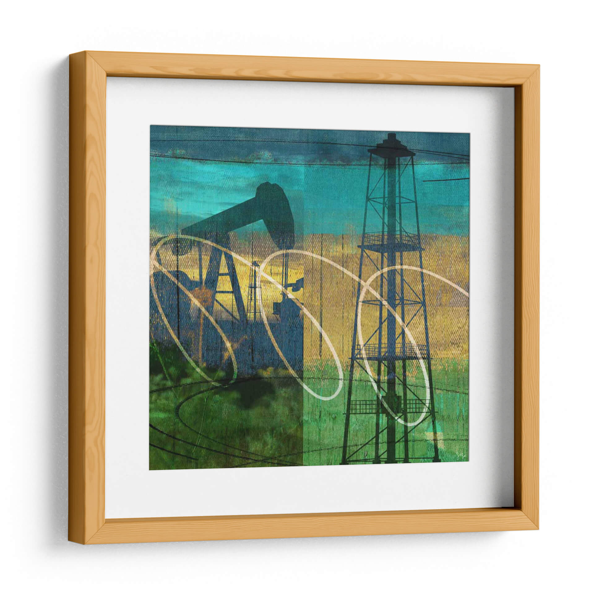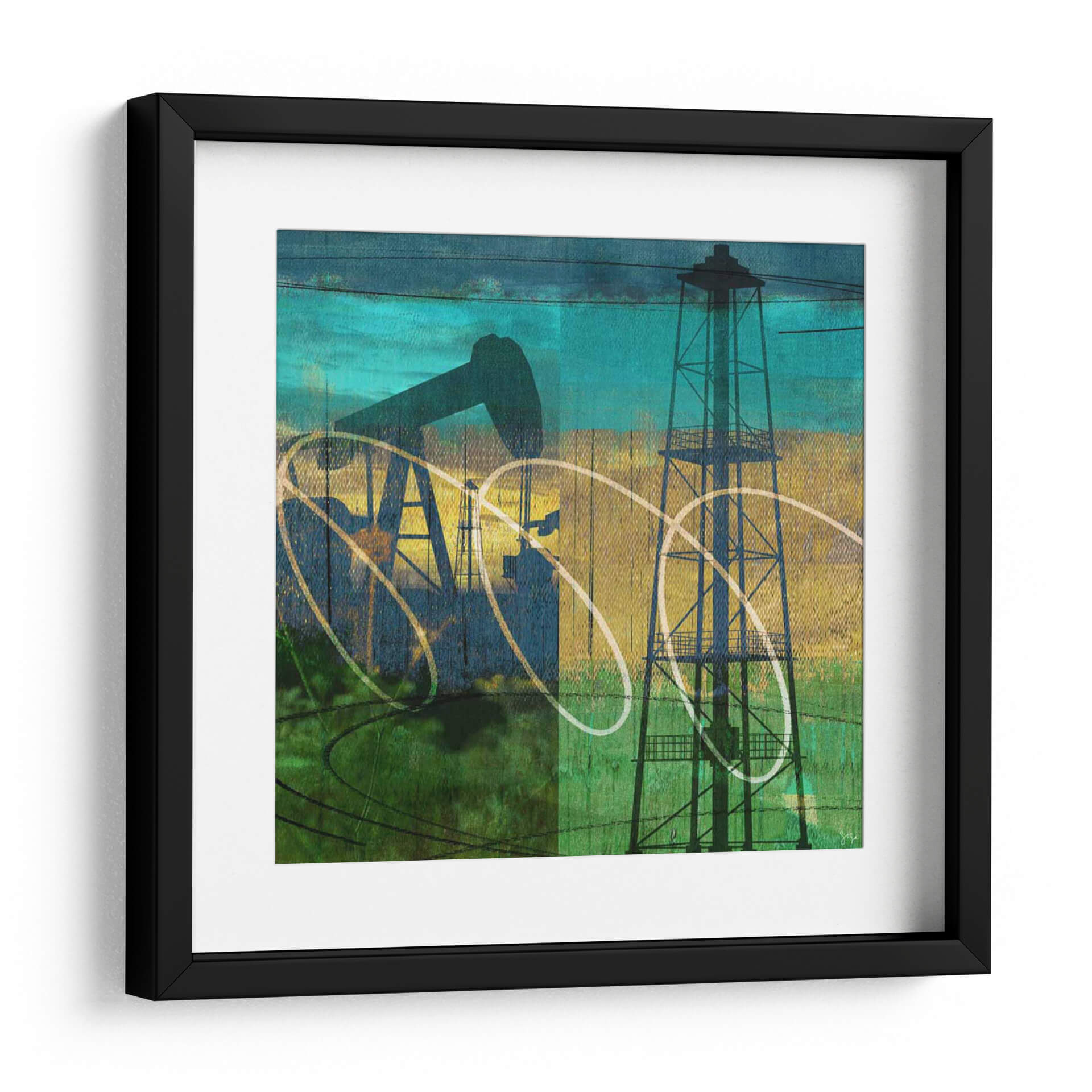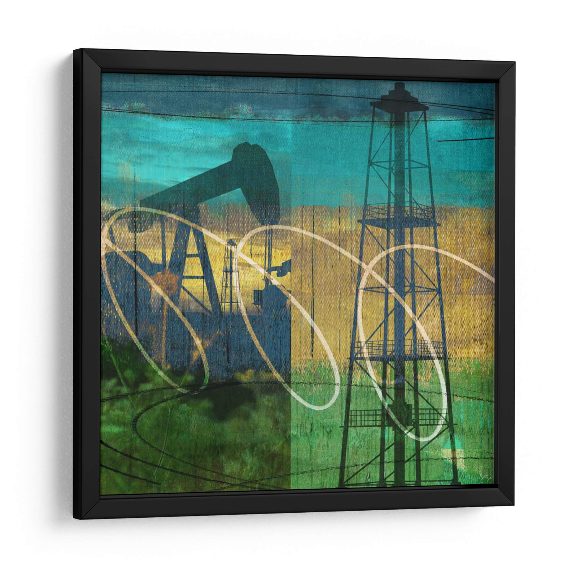 Sumérgete en el mundo industrial con este cautivador cuadro decorativo titulado "Plataforma Petrolera y Petróleo Poy Collage" del artista Sisa Jasper. Esta obra de arte evoca una atmósfera de fuerza y movimiento a través de su audaz paleta de colores, que combina profundos tonos azules, verdes vibrantes y toques de amarillo dorado. La composición presenta siluetas oscuras de plataformas petrolíferas y torres de perforación, contrastando con líneas fluidas y enérgicas que añaden una dimensión abstracta y dinámica. El estilo collage, con sus texturas superpuestas y cortes, le confiere una profundidad única y un aire contemporáneo. Ideal para espacios que buscan un toque de carácter industrial o para quienes aprecian el arte abstracto con una narrativa visual potente. Este cuadro decorativo es perfecto para oficinas, salas de estar o estudios que deseen incorporar una pieza de conversación que combine estética moderna y una temática fascinante.