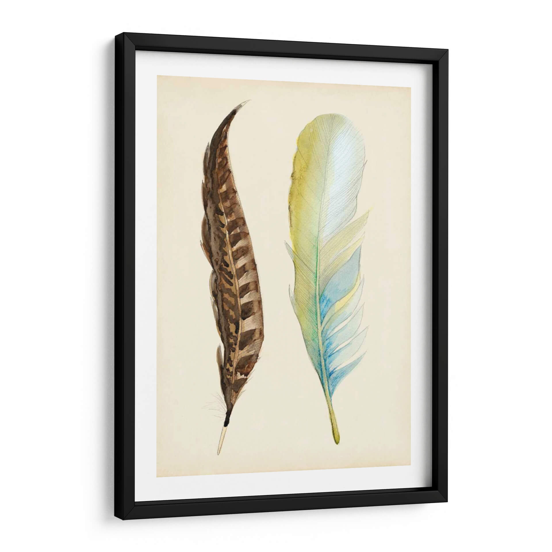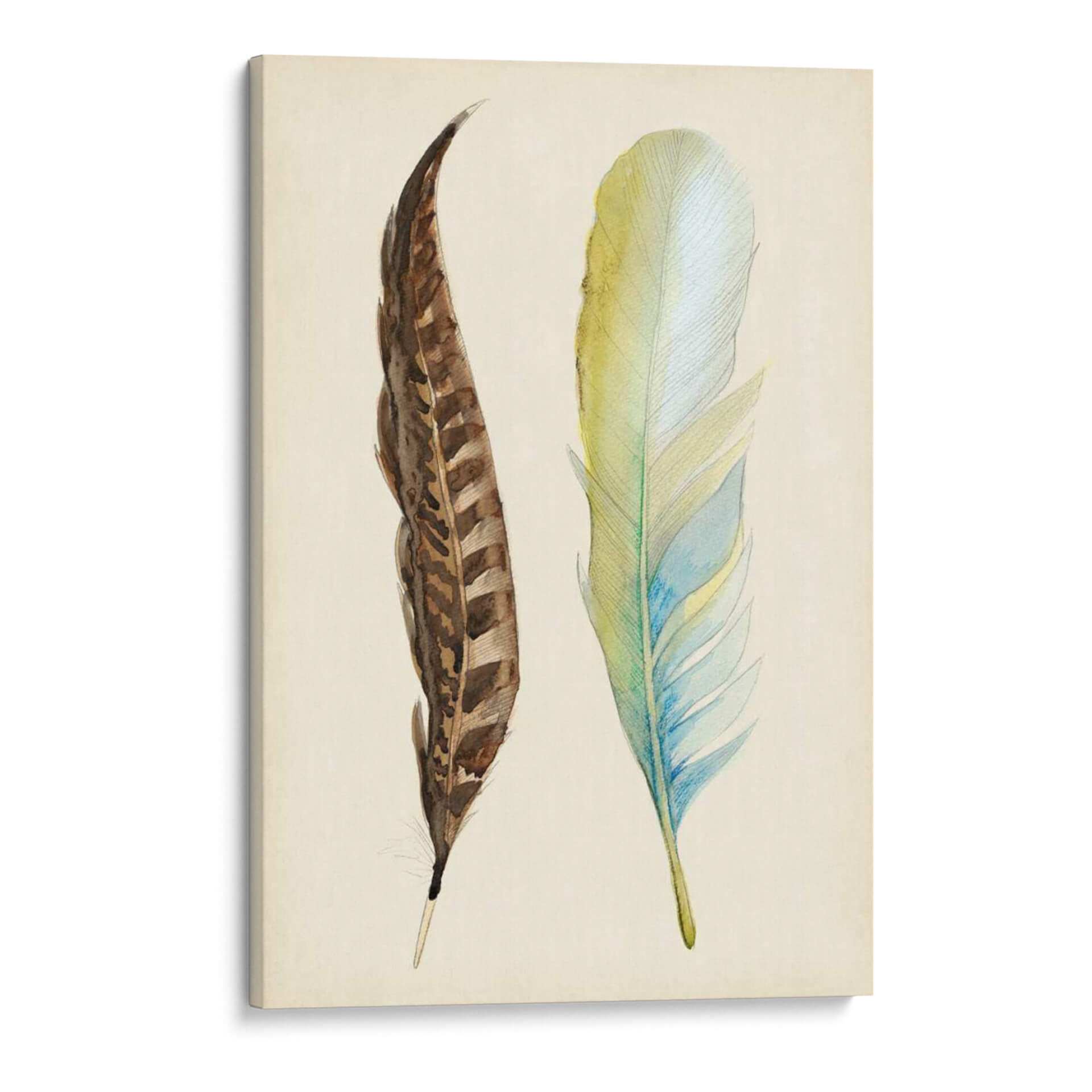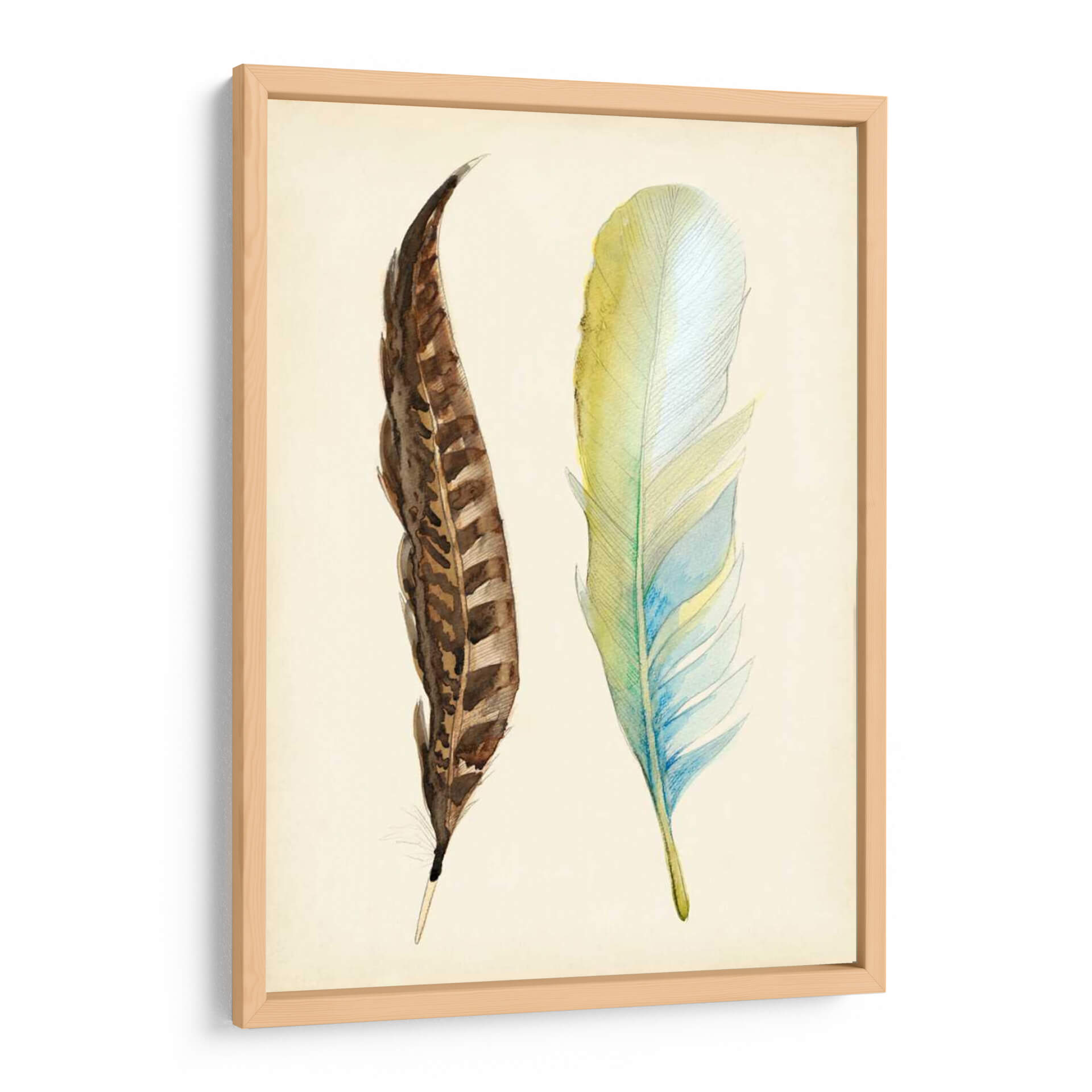 Aporta un toque de delicadeza y naturaleza a tu hogar con el cuadro decorativo "Plumaje II" de Alicia Ludwig. Esta obra de arte captura la etérea belleza de dos plumas, una en tonos terrosos y marrones intrincados, y la otra en una suave paleta de verdes, azules y amarillos pálidos. La técnica delicada y el estilo evocan una sensación de calma y serenidad, perfecta para crear un ambiente de paz en cualquier habitación. Ideal para aquellos que aprecian los detalles sutiles de la naturaleza y buscan una pieza de arte que complemente un estilo de decoración contemporáneo, escandinavo o bohemio. Las líneas finas y la composición centrada invitan a la contemplación, convirtiendo este cuadro decorativo en un punto focal suave pero cautivador. "Plumaje II" no solo embellece tus paredes, sino que también infunde una atmósfera de tranquilidad y elegancia natural en tu espacio vital, ya sea en la sala de estar, el dormitorio o un estudio.