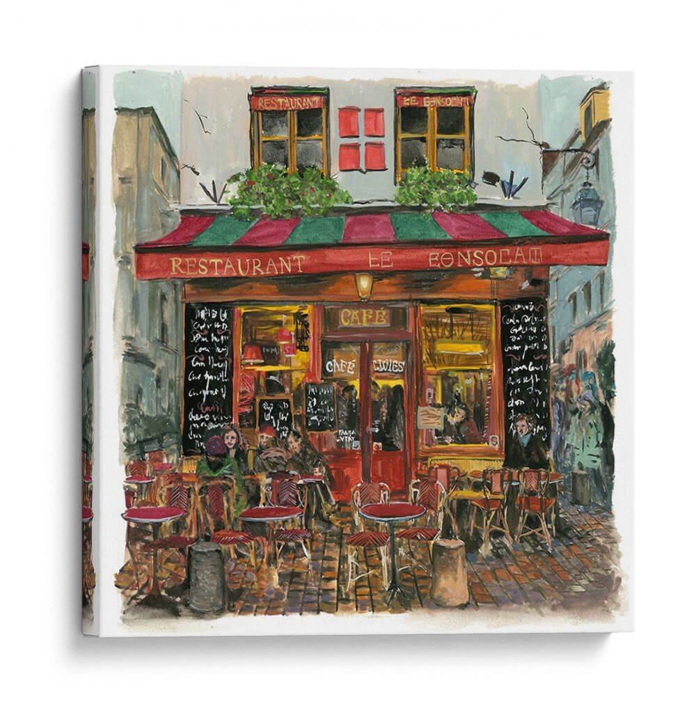 Sumérgete en la atmósfera encantadora de París con este cautivador cuadro decorativo, una obra de arte inspirada en un café tradicional francés. La pintura evoca la esencia de 'Punto Yo', capturando la vibrante vida de una calle parisina con detalles exquisitos. La fachada del restaurante, con su toldo a rayas rojas y verdes y las ventanas que revelan un interior acogedor, invita a la contemplación. Las mesas al aire libre, dispuestas con sillas de bistró, sugieren momentos de pausa y disfrute, mientras que las pizarras con menús escritos a mano añaden un toque de autenticidad bohemia. Los colores cálidos y la pincelada expresiva crean una escena llena de vida y carácter, perfecta para añadir un toque de sofisticación y nostalgia a tu hogar u oficina. Este cuadro decorativo es ideal para quienes buscan una pieza que cuente una historia y transporte a sus espectadores a un rincón europeo lleno de encanto y sabor. Su estilo artístico, con una mezcla de realismo y un toque impresionista, lo convierte en un punto focal ideal para cualquier espacio que desee evocar calidez y elegancia.
