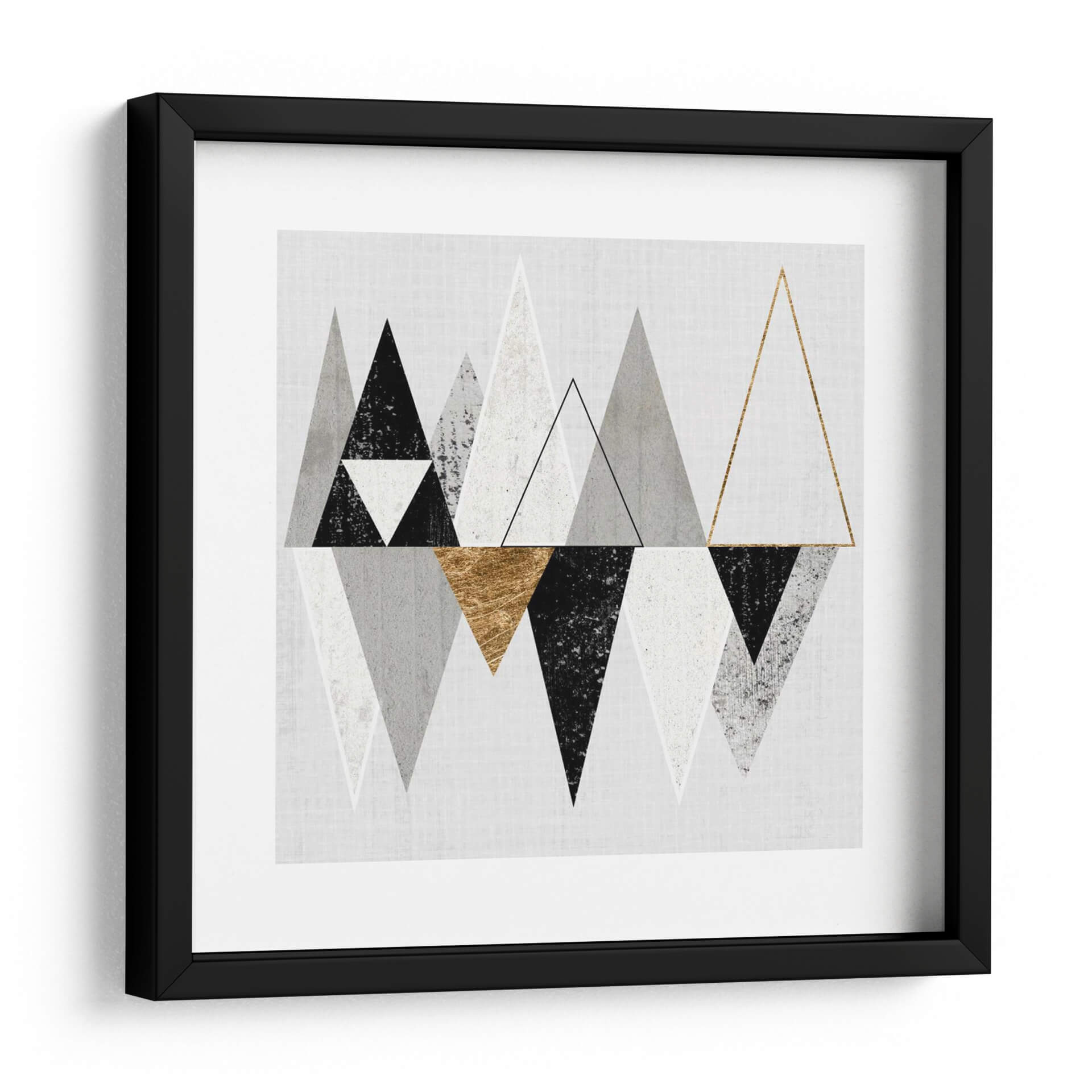 Transforma tu espacio con el impactante cuadro decorativo "Rango II" de Jarman Fagalde. Esta obra abstracta geometrica cautiva con su audaz composición de triángulos en diversas texturas y tonalidades. Predominan los grises, blancos y negros, salpicados por sutiles toques de dorado que añaden un punto de lujo y sofisticación. La pieza evoca una sensación de modernidad y minimalismo, ideal para complementar ambientes contemporáneos o para añadir un toque de interés visual a espacios más sobrios. Su reflejo simulado en la parte inferior crea una ilusión de profundidad, invitando a la contemplación. "Rango II" es perfecto para salones, oficinas o cualquier lugar donde busques una declaración artística elegante y con carácter. Su diseño abstracto lo hace versátil, integrándose sin esfuerzo en diferentes estilos de decoración, desde el escandinavo hasta el industrial. Añade una dosis de arte contemporáneo a tu hogar y deja que esta pieza se convierta en el centro de atención, inspirando conversaciones y admiración.