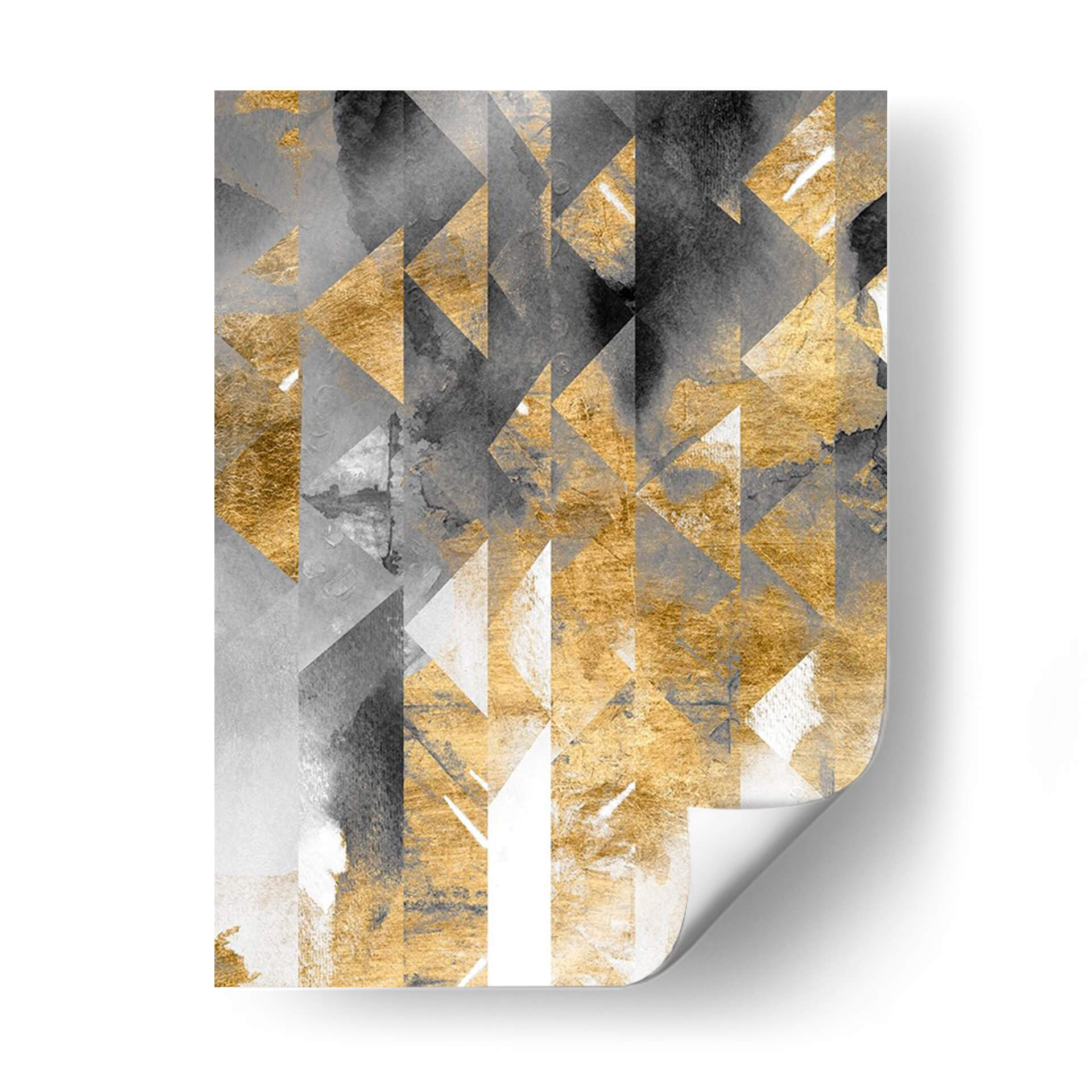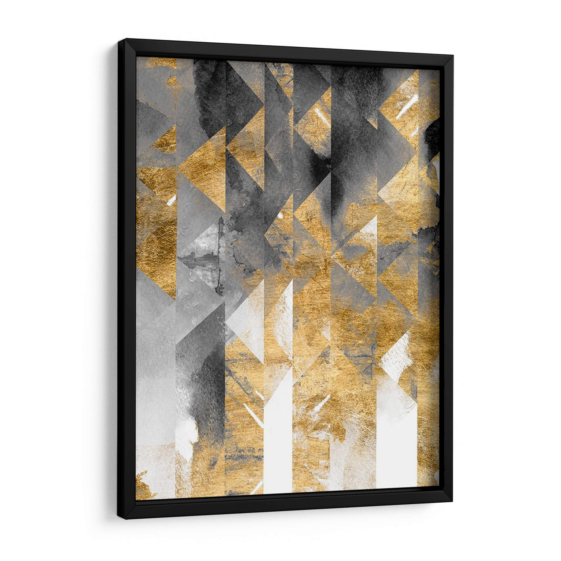Sumérgete en la sofisticación abstracta de 'Reflexiones Doradas II' de Chariklia Zarris, una obra de arte contemporáneo que fusiona texturas y tonos para crear un impacto visual inolvidable. Este cuadro decorativo se caracteriza por su audaz composición geométrica, donde triángulos y formas angulares se entrelazan en un juego dinámico de luces y sombras. La paleta de colores, dominada por profundos grises, blancos puros y un opulento dorado metálico, evoca una sensación de lujo moderno y elegancia atemporal. Las pinceladas, que sugieren una técnica de acuarela y texturas ricas, añaden profundidad y un toque orgánico a la estructura geométrica, resultando en una pieza que es a la vez organizada y fluidamente expresiva. 'Reflexiones Doradas II' es ideal para espacios que buscan un toque de distinción y una atmósfera de serena opulencia. Ya sea en una sala de estar contemporánea, una oficina ejecutiva o un comedor moderno, este cuadro decorativo se convertirá en un punto focal cautivador, inspirando conversaciones y añadiendo un aire de refinamiento artístico a cualquier ambiente. Transforma tu hogar o lugar de trabajo con esta pieza única que combina la fuerza de la geometría con la riqueza del color y la textura.