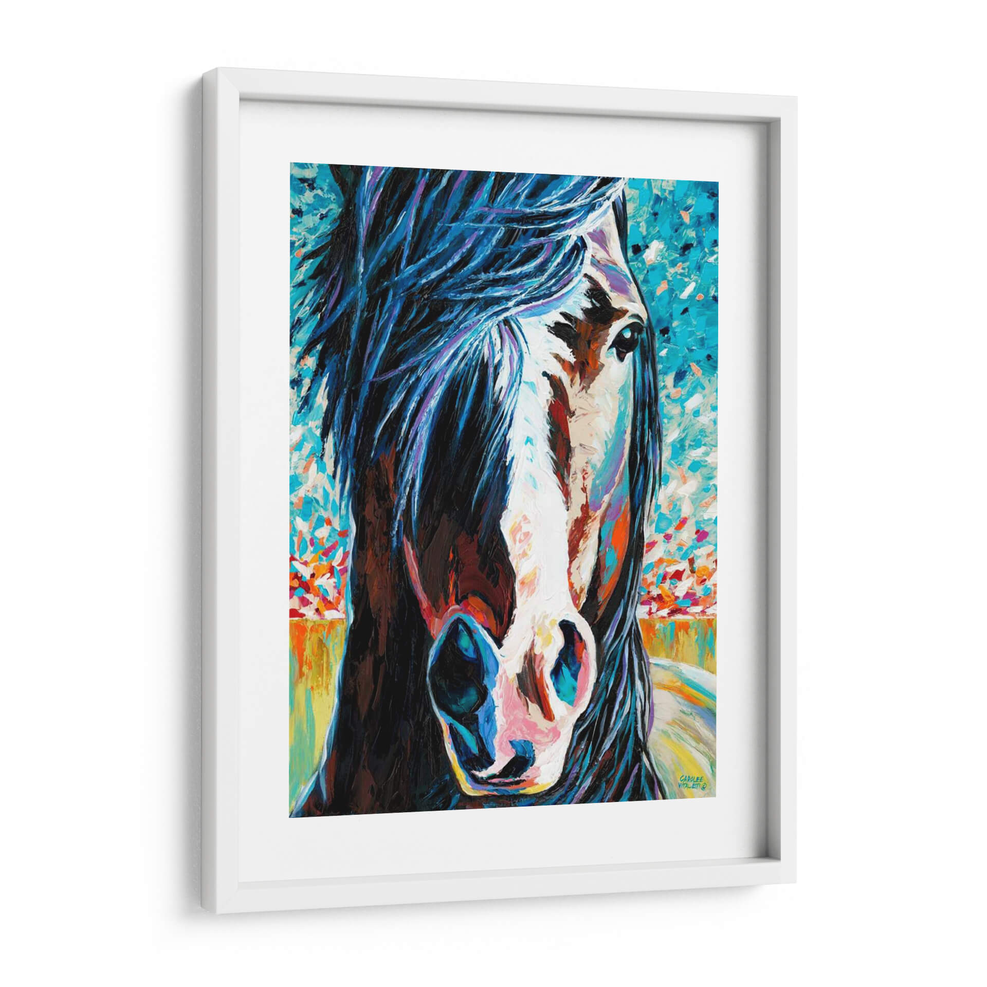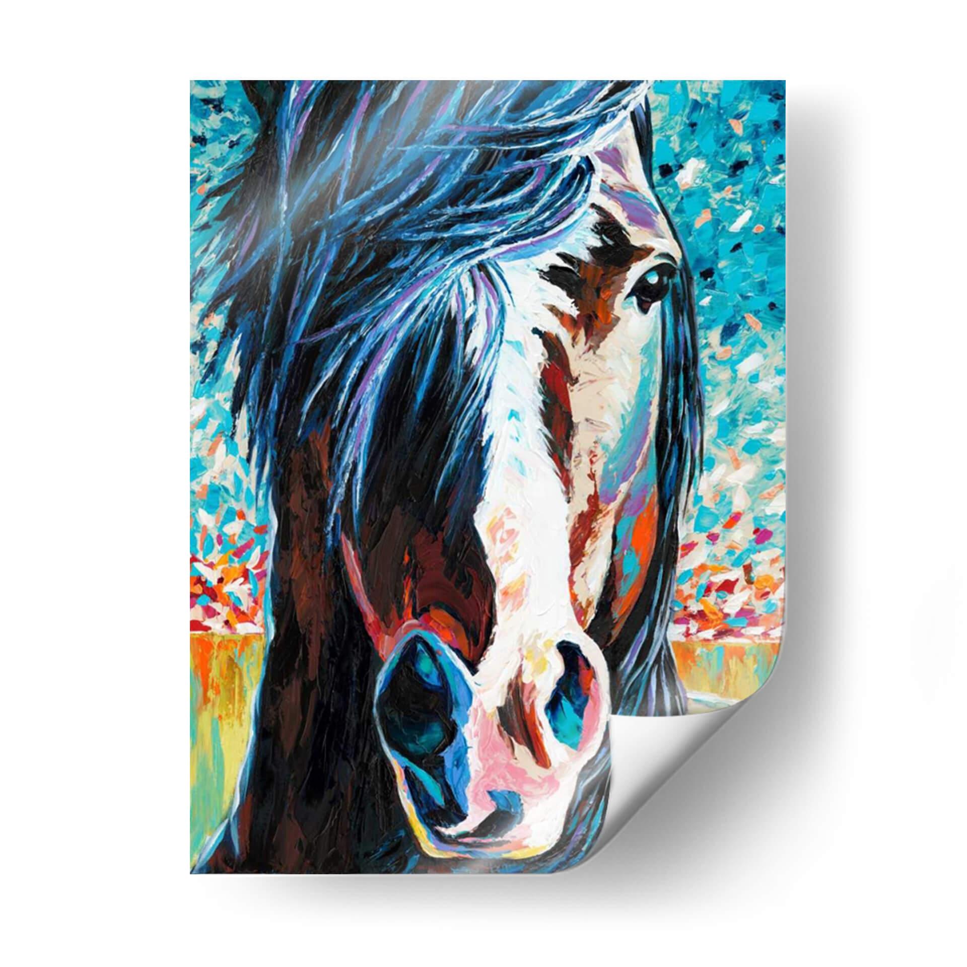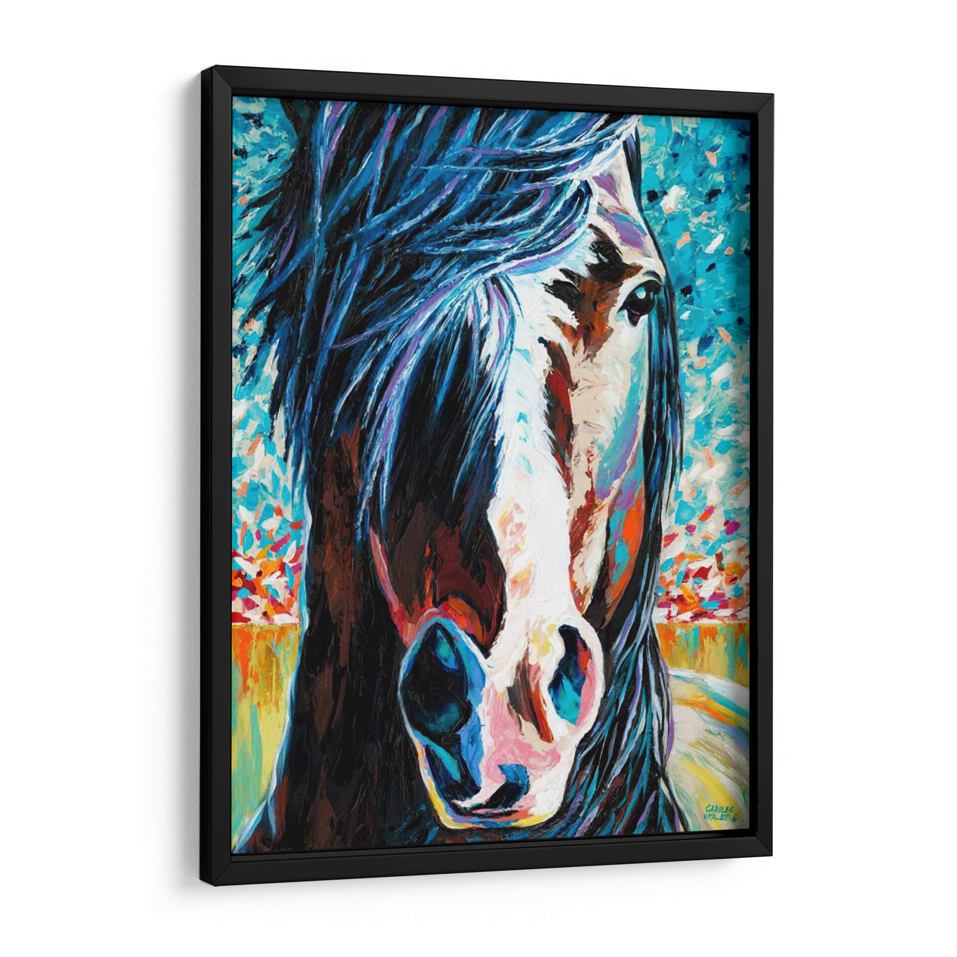 Sumérgete en la fuerza y el espíritu indomable de "Salvaje En El Corazón I", una obra de arte vibrante que captura la esencia de un caballo con una energía desbordante. Carolee Vitaletti presenta un retrato expresionista donde los colores audaces y las pinceladas enérgicas cobran vida, creando una pieza que irradia potencia y una belleza salvaje. El contraste entre el oscuro y melenudo pelaje del caballo y el fondo de tonos azules intensos salpicados de toques de colores vivos genera un dinamismo visual cautivador. La mirada penetrante del animal, aunque parcialmente oculta por su crin, transmite una profunda conexión con la naturaleza y una libertad inherente. Este cuadro decorativo es perfecto para aquellos que buscan infundir a sus espacios una dosis de carácter y vitalidad. Ideal como punto focal en una sala de estar moderna, un estudio o incluso una entrada, "Salvaje En El Corazón I" invita a la contemplación y evoca una sensación de poder sereno. Su estilo único y su impactante paleta de colores lo convierten en una adición excepcional para cualquier amante del arte contemporáneo que desee añadir un toque de audacia y sofisticación a su decoración. Transforma tu hogar u oficina con esta representación magistral de la fuerza animal.