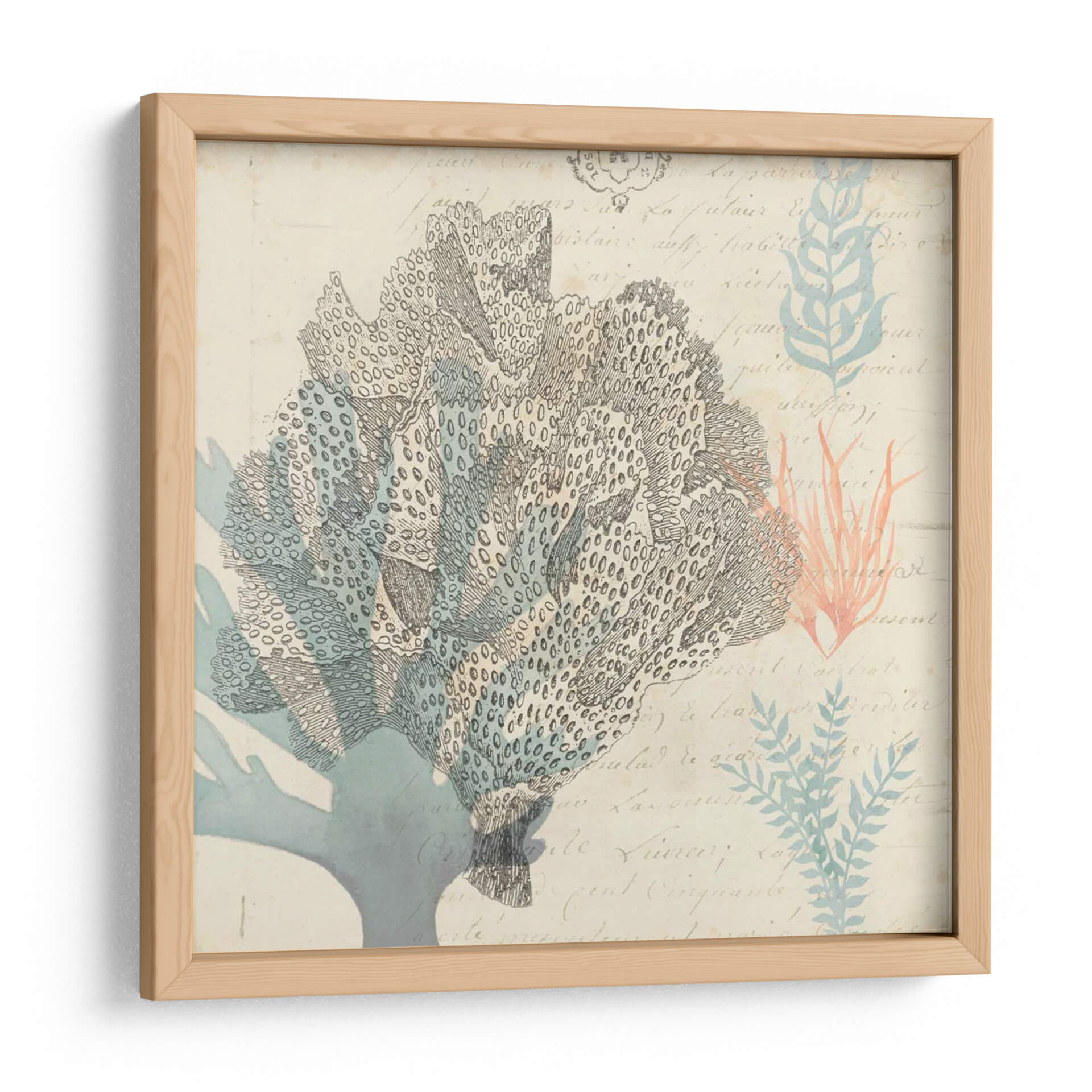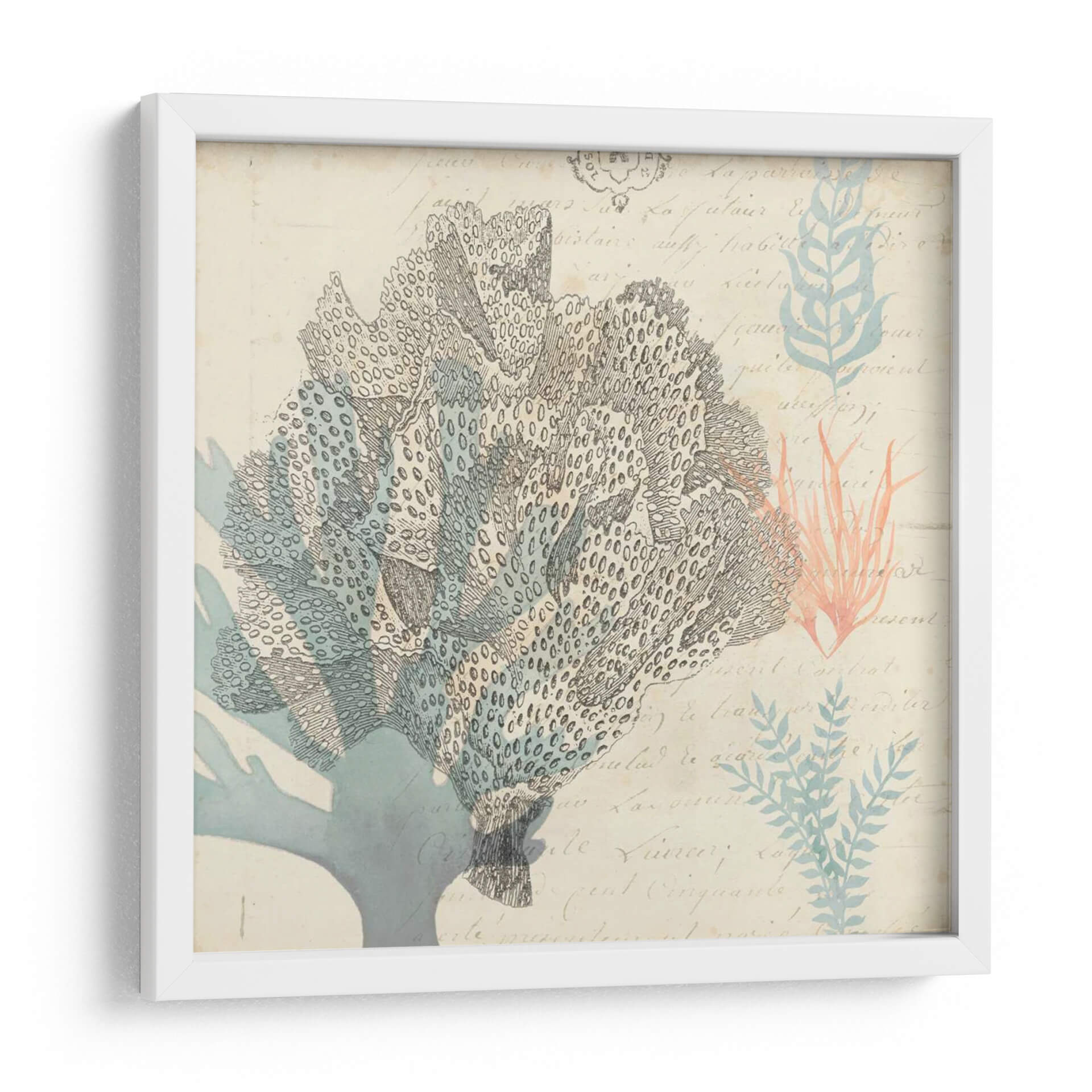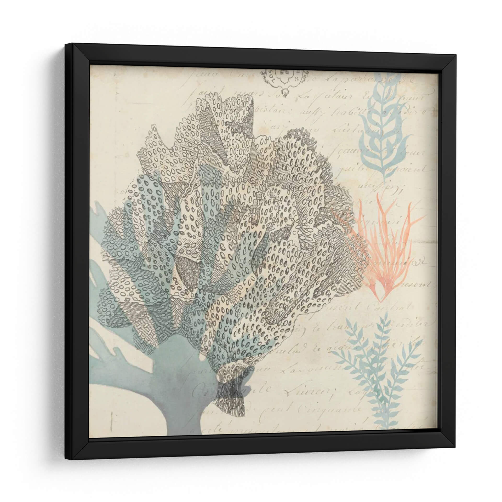 Sumérgete en las profundidades marinas con "Sea Ephemera III", una obra de arte de Grace Popp que captura la delicadeza y la intrincada belleza del océano. Este cuadro decorativo presenta un coral principal en tonos azulados y grises, renderizado con un detallado estilo de grabado que evoca las ilustraciones científicas clásicas. Rodeado por delicadas algas en tonos pastel y un sutil toque de coral anaranjado, la pieza se asienta sobre un fondo texturizado que simula páginas de manuscritos antiguos, añadiendo una capa de nostalgia y sofisticación. La paleta de colores suaves y etéreos, dominada por azules pálidos, grises, cremas y toques de coral, crea una atmósfera de calma y serenidad, ideal para espacios que buscan un refugio de tranquilidad. La composición, centrada en la majestuosidad del coral, se complementa con elementos botánicos marinos que equilibran la pieza, ofreciendo una sensación de armonía natural. "Sea Ephemera III" es una elección perfecta para decorar salones, dormitorios o estudios, aportando un aire de elegancia costera y un recordatorio constante de la maravilla del mundo submarino. Descubre la serenidad y el detalle exquisito de esta pieza que transformará cualquier ambiente en un oasis de paz y estilo.