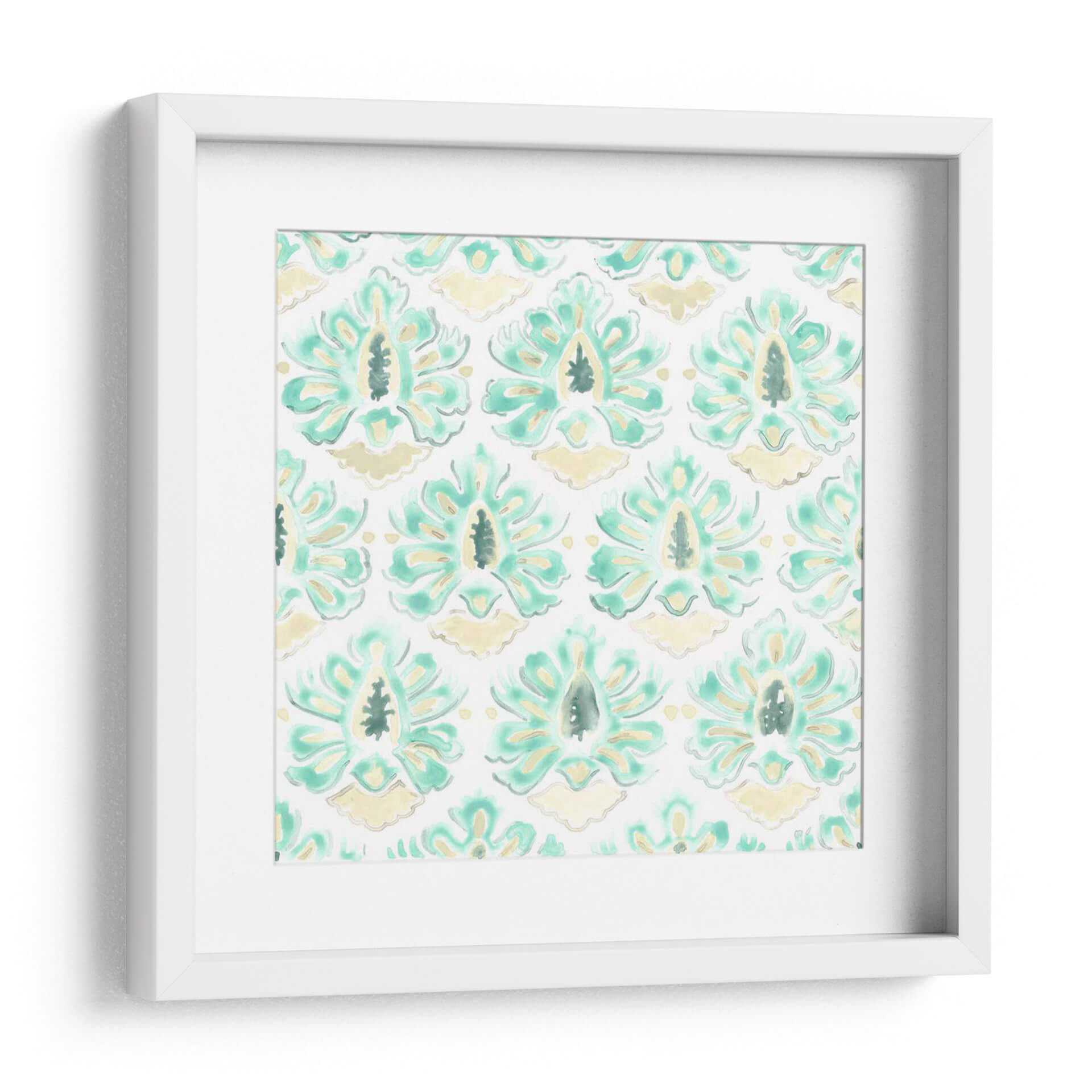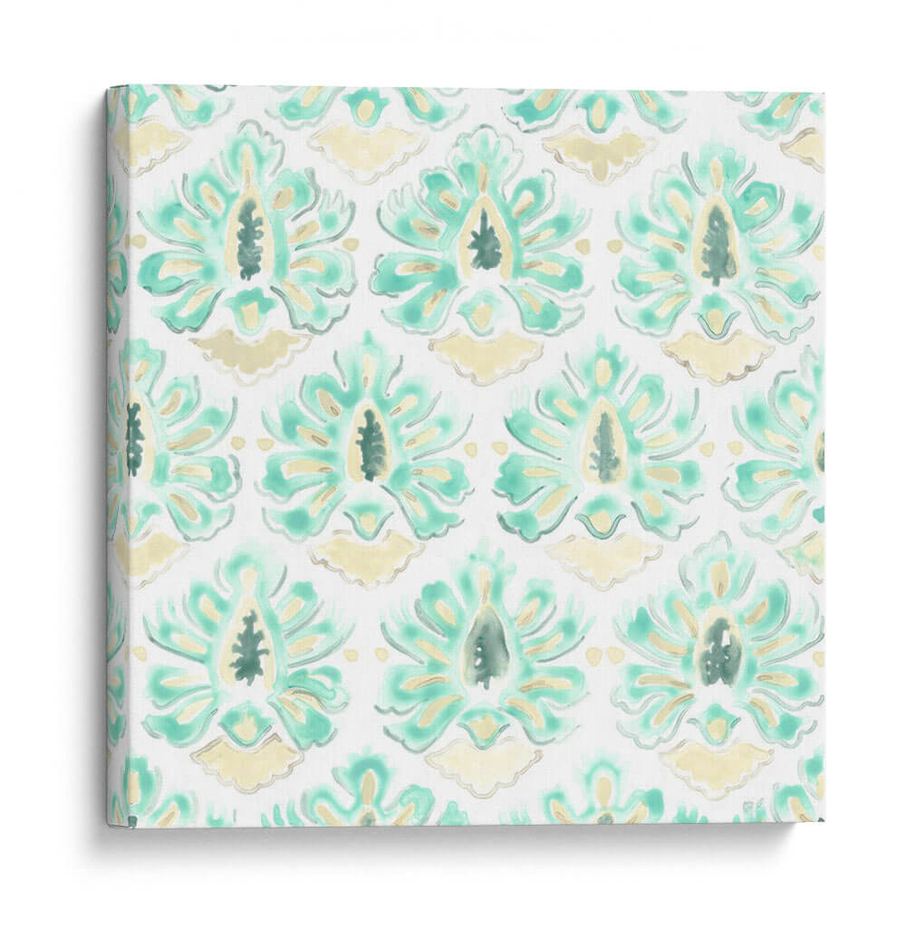 Embellece tu hogar con el cuadro decorativo 'Textil Bohemio Vi', una obra que evoca la serenidad y la belleza de los patrones botánicos estilizados. Con una paleta de colores suaves que combina tonos aguamarina y amarillos pálidos sobre un fondo blanco, esta pieza aporta una sensación de frescura y calma a cualquier espacio. Su diseño, inspirado en motivos textiles y florales, presenta una repetición rítmica de formas orgánicas que crean un efecto visual hipnótico y armonioso. El estilo acuarelado y la técnica delicada de June Erica Vess confieren a la obra una ligereza y una elegancia sutil, perfecta para complementar decoraciones de estilo bohemio, escandinavo o contemporáneo. Imagina este cuadro como un punto focal sereno en tu sala de estar, un toque de color y textura en tu dormitorio, o una adición inspiradora a tu oficina. 'Textil Bohemio Vi' no es solo una pieza de arte, es una invitación a la tranquilidad y al bienestar visual, diseñada para transformar tu ambiente y reflejar tu gusto por la estética refinada y la naturaleza.