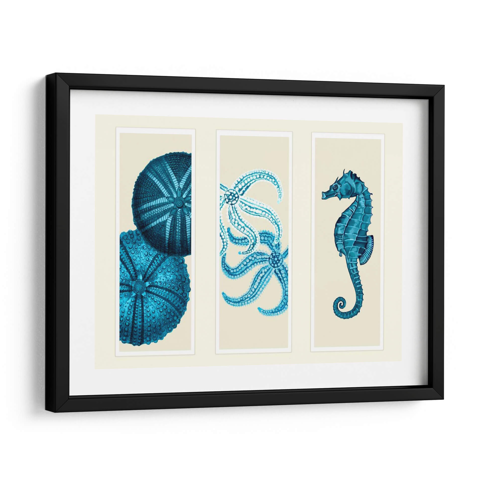 Tres Panel De Panel De Mar Eurchin De Mar Y Corte De Sea En Azul - Fab Funky