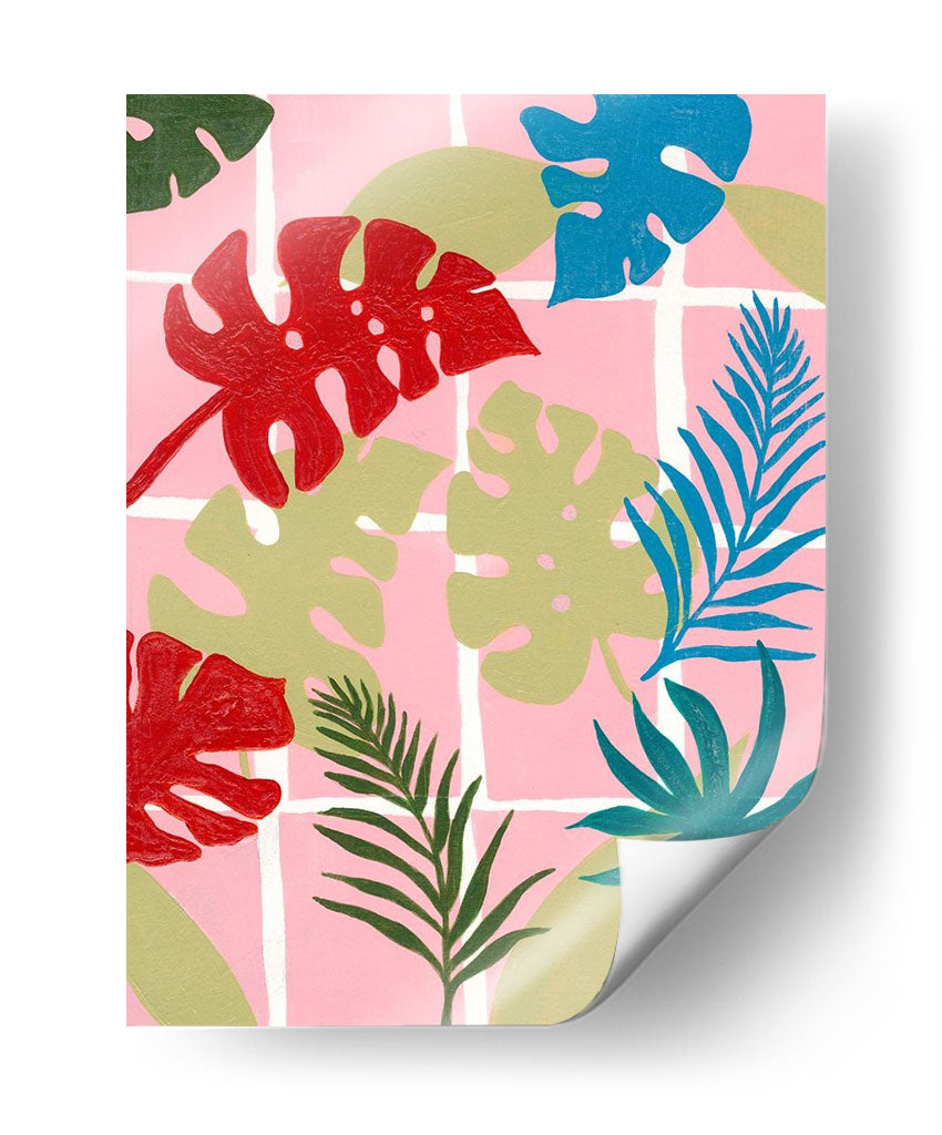 Sumérgete en la exuberancia tropical con "Trópicos Coloridos II", una obra de arte vibrante y moderna de Regina Moore. Este cuadro decorativo captura la esencia de la naturaleza con un toque contemporáneo, presentando un entramado de hojas exóticas en tonos intensos de rojo, azul, verde y un suave tono verde oliva, contrastando maravillosamente sobre un fondo rosa pálido cruzado por finas líneas blancas que sugieren un patrón cuadriculado sutil. La composición audaz y la paleta de colores enérgica crean una atmósfera alegre y refrescante, perfecta para añadir un punto focal lleno de vida a cualquier espacio. Ideal para salas de estar, comedores o incluso estudios, este cuadro es una invitación a soñar con climas cálidos y exuberantes. Su estilo abstracto y juguetón, inspirado en la flora tropical, aporta un aire de sofisticación desenfadada a la decoración. "Trópicos Coloridos II" no es solo una pieza decorativa, sino una ventana a un paraíso vibrante que transformará tu hogar u oficina en un oasis de color y estilo.