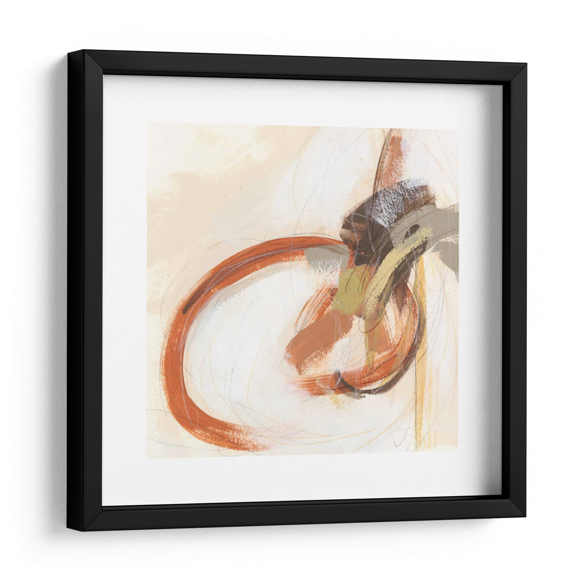 Sumérgete en la cautivadora obra de arte abstracta "Upstage III" de June Erica Vess, una pieza que combina la energía del color con la sutileza de la línea. Este cuadro decorativo presenta una composición dinámica donde pinceladas audaces en tonos terracota y ocres se entrelazan con trazos finos y etéreos en gris y amarillo pálido. El círculo prominente en un vibrante naranja quemado actúa como un punto focal cautivador, sugiriendo movimiento y vitalidad. El fondo neutro, en suaves tonos crema y beige, permite que los elementos centrales resalten, creando un equilibrio visual armonioso. "Upstage III" evoca una sensación de espontaneidad y expresión artística, ideal para añadir un toque contemporáneo y sofisticado a cualquier espacio. Ya sea en una sala de estar moderna, un estudio de arte o una oficina, este cuadro abstracto contemporáneo invita a la contemplación y añade profundidad a la decoración. Su versatilidad cromática y su diseño intrigante lo convierten en una elección perfecta para quienes buscan una pieza de arte mural que sea a la vez llamativa y elegante, transformando cualquier pared en una declaración de estilo y personalidad. Descubre la belleza del arte abstracto con "Upstage III".