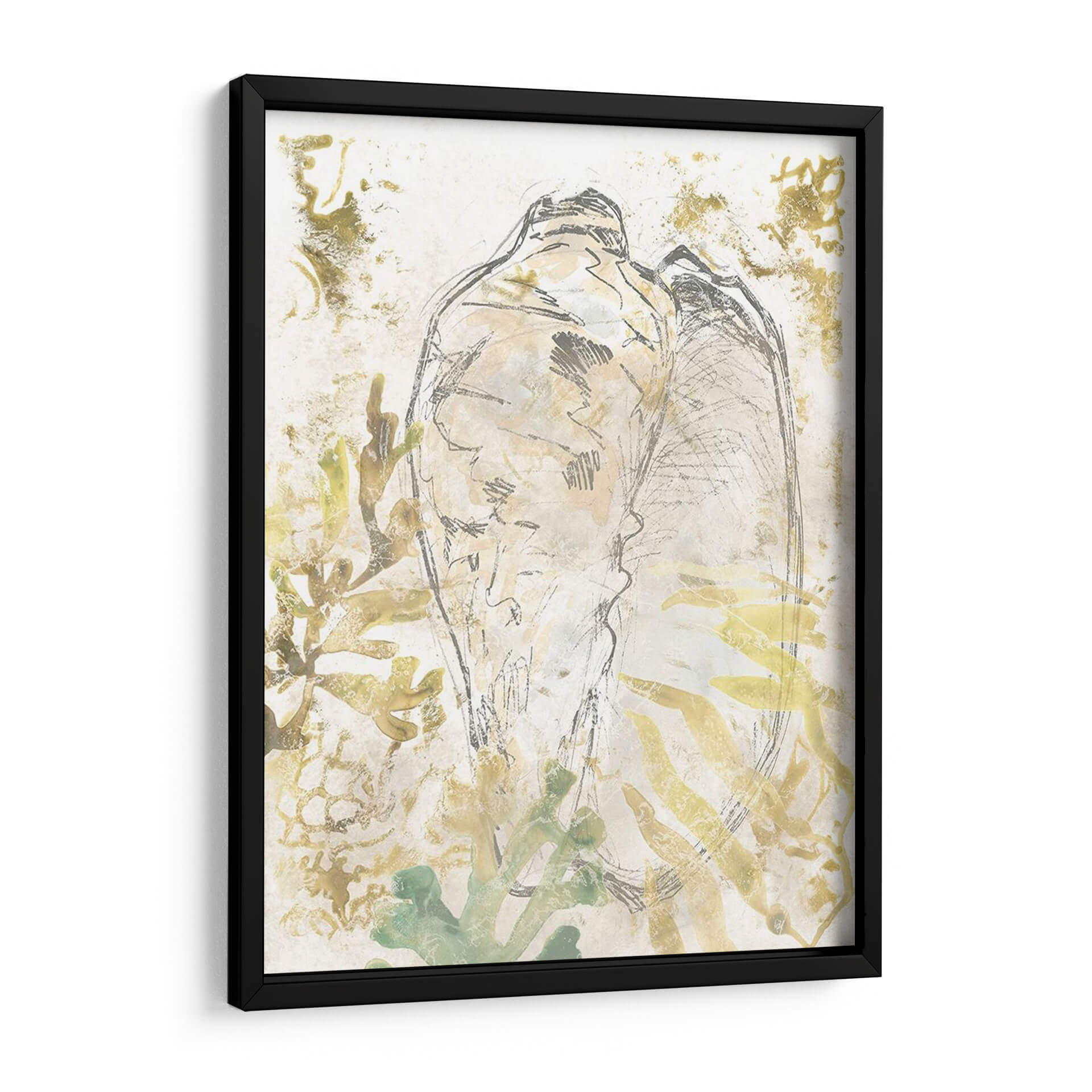 Sumérgete en la serenidad orgánica de "Verdant Shell Fresco Iv", una obra de arte contemporáneo que captura la delicadeza de las formas marinas con una técnica evocadora. La pieza presenta un boceto lineal de lo que parece ser una concha o una forma natural, delineado con trazos de carboncillo sobre un fondo texturizado en tonos neutros y terrosos. La paleta de colores, dominada por el blanco roto, beiges, ocres y sutiles toques de verde y dorado, crea una atmósfera de calma y sofisticación natural. Las manchas de acuarela o tinta, dispersas con un estilo gestual, añaden profundidad y movimiento, evocando la sensación de algas flotando o la textura de la arena. Este cuadro decorativo es una invitación a la contemplación, perfecto para añadir un toque de elegancia orgánica a tu sala de estar, dormitorio o estudio. Su diseño abstracto y orgánico lo convierte en una pieza versátil, capaz de complementar tanto decoraciones minimalistas como espacios con una estética más bohemia o costera. "Verdant Shell Fresco Iv" no es solo una imagen, sino una ventana a la belleza sutil de la naturaleza, diseñada para infundir tranquilidad y estilo en cualquier hogar u oficina, convirtiéndose en un punto focal que inspira paz y conexión con el entorno natural.