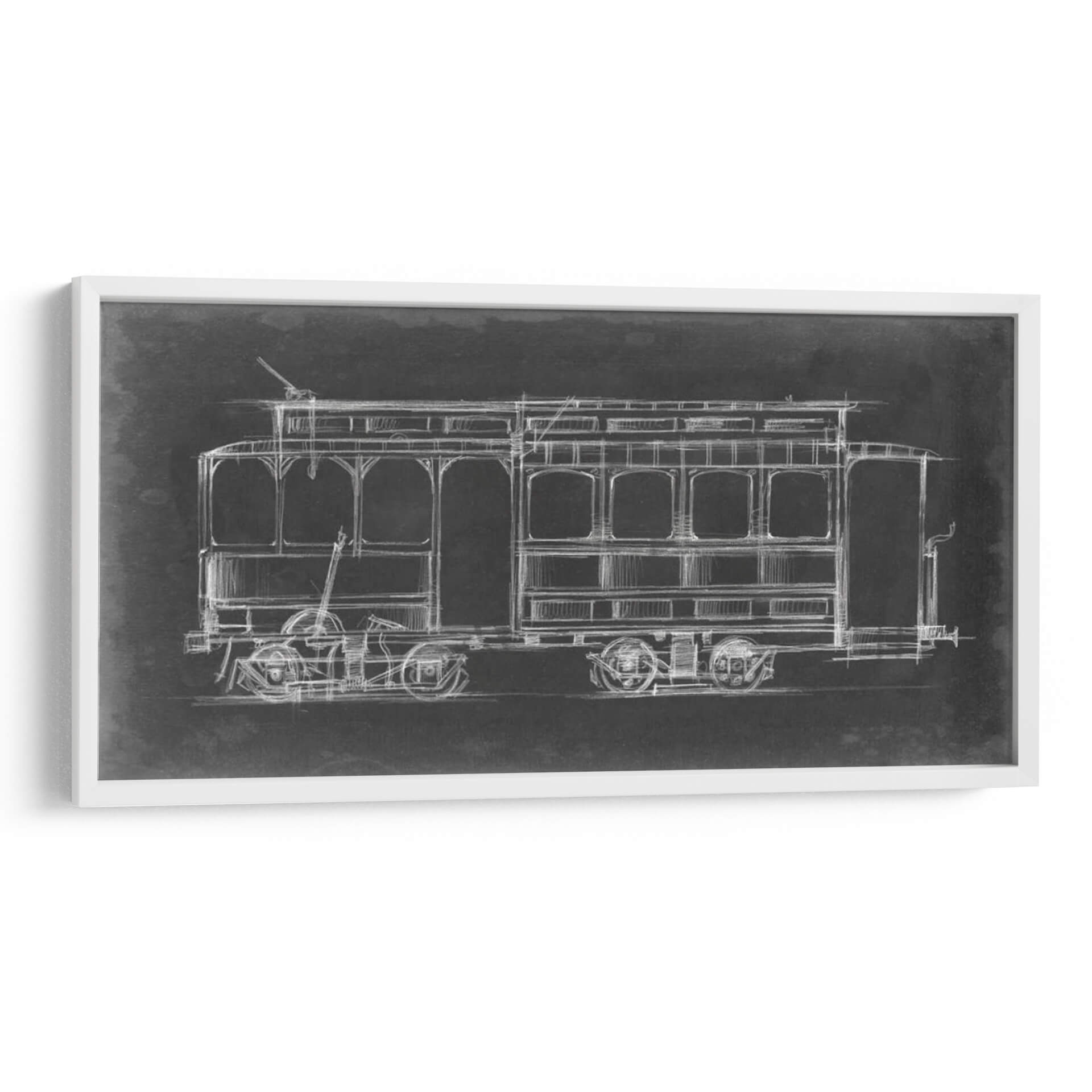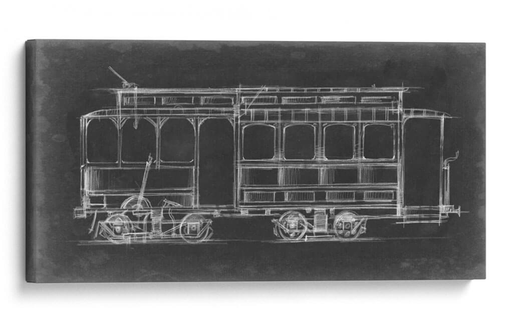 Este cuadro decorativo "Vintage Tranvía IV" de Ethan Harper es una evocadora representación lineal de un icónico vehículo de transporte histórico. La obra se distingue por su estilo de boceto detallado, donde las líneas blancas nítidas contrastan sobre un fondo oscuro y texturizado, creando un efecto visual que recuerda a un dibujo a tiza o carbón. El tranvía, capturado en su totalidad, muestra la intrincada ingeniería de sus ruedas, ventanas y estructura superior, invitando a una contemplación minuciosa de su diseño. La paleta monocromática, dominada por el blanco y negro, aporta una elegancia atemporal y una versatilidad que permite integrar esta pieza en una amplia gama de estilos decorativos, desde el moderno hasta el industrial o incluso el vintage. La atmósfera que transmite es de nostalgia y aprecio por la historia, con un toque de sofisticación artística. Es ideal para añadir un elemento de interés visual y un guiño al pasado en salones, estudios u oficinas, complementando espacios que buscan un acento de carácter y singularidad. Este cuadro decorativo no es solo una imagen, sino una ventana a otra época, diseñada para inspirar conversación y admiración.