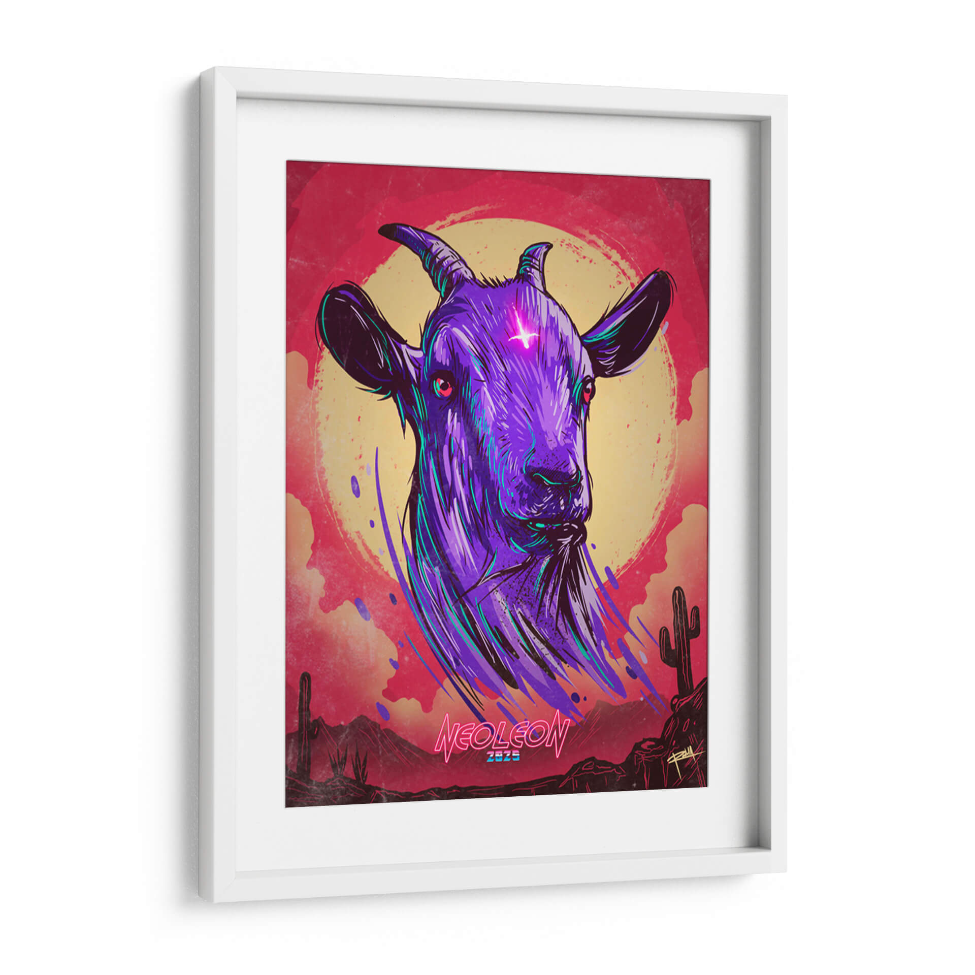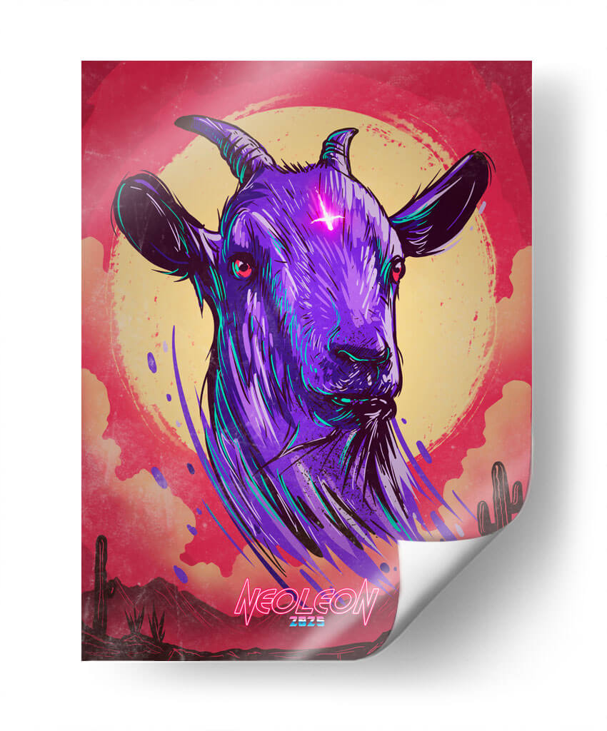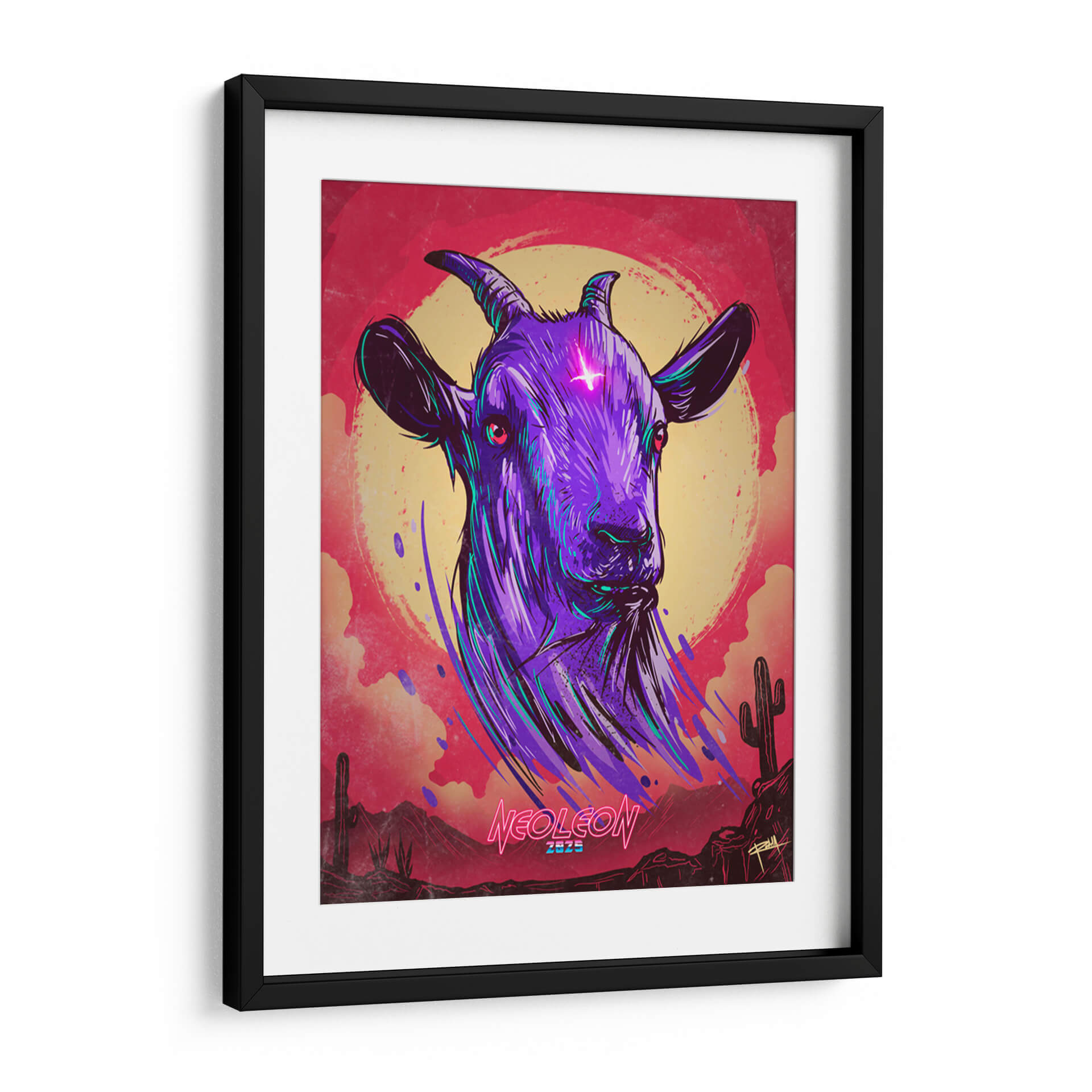 Sumérgete en la vibrante y enigmática obra de Gerardo Rodela, "CABRITO", una pieza que redefine el arte contemporáneo con su audaz uso del color y su impactante composición. Este cuadro decorativo presenta un primer plano de una cabra con intensos tonos púrpuras y detalles en azul neón, creando un contraste electrizante contra un fondo rojizo con un gran sol o luna amarilla. La atmósfera es potente y audaz, evocando una sensación de fuerza y misticismo, con pinceladas dinámicas que sugieren movimiento y energía. El estilo distintivo de Rodela, que fusiona elementos realistas con una estética gráfica y casi surrealista, convierte a "CABRITO" en un punto focal inolvidable. Los cactus estilizados y el paisaje desértico en la parte inferior añaden un toque de carácter y contexto, sugiriendo resiliencia y singularidad. Ideal para espacios que buscan una declaración de estilo audaz y contemporáneo, este cuadro decorativo es perfecto para salas de estar modernas, estudios creativos u oficinas que deseen inspirar conversación y reflejar una personalidad audaz. Añade un toque de arte urbano y vanguardista a tu decoración, con una pieza que no dejará indiferente a nadie y que captura la esencia de lo salvaje y lo moderno.