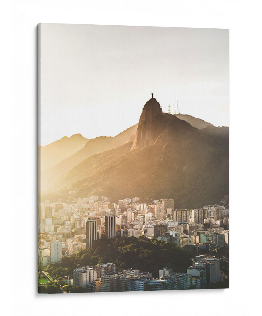 Captura la majestuosidad y el espíritu de Río de Janeiro con este impresionante lienzo del Cristo Redentor. La obra presenta una vista panorámica de la icónica estatua coronando el Corcovado, bañada por la cálida luz dorada del atardecer. La paleta de colores, dominada por tonos cálidos y dorados que emanan del sol poniente, crea una atmósfera de serenidad y asombro. Las montañas brumosas y el perfil urbano de la ciudad se desvanecen en la distancia, añadiendo profundidad y un toque etéreo a la composición. El estilo de la fotografía, que podría clasificarse como paisajismo contemporáneo o realismo atmosférico, resalta la escala monumental de la estatua y su entorno natural. Esta pieza es ideal para evocar un sentimiento de paz, inspiración y conexión con un lugar emblemático. Perfecta para añadir un toque de sofisticación y un punto focal vibrante a salas de estar, comedores u oficinas, esta obra de arte transformará cualquier espacio en un refugio de belleza y contemplación, trayendo la energía cautivadora de Brasil a tu hogar.