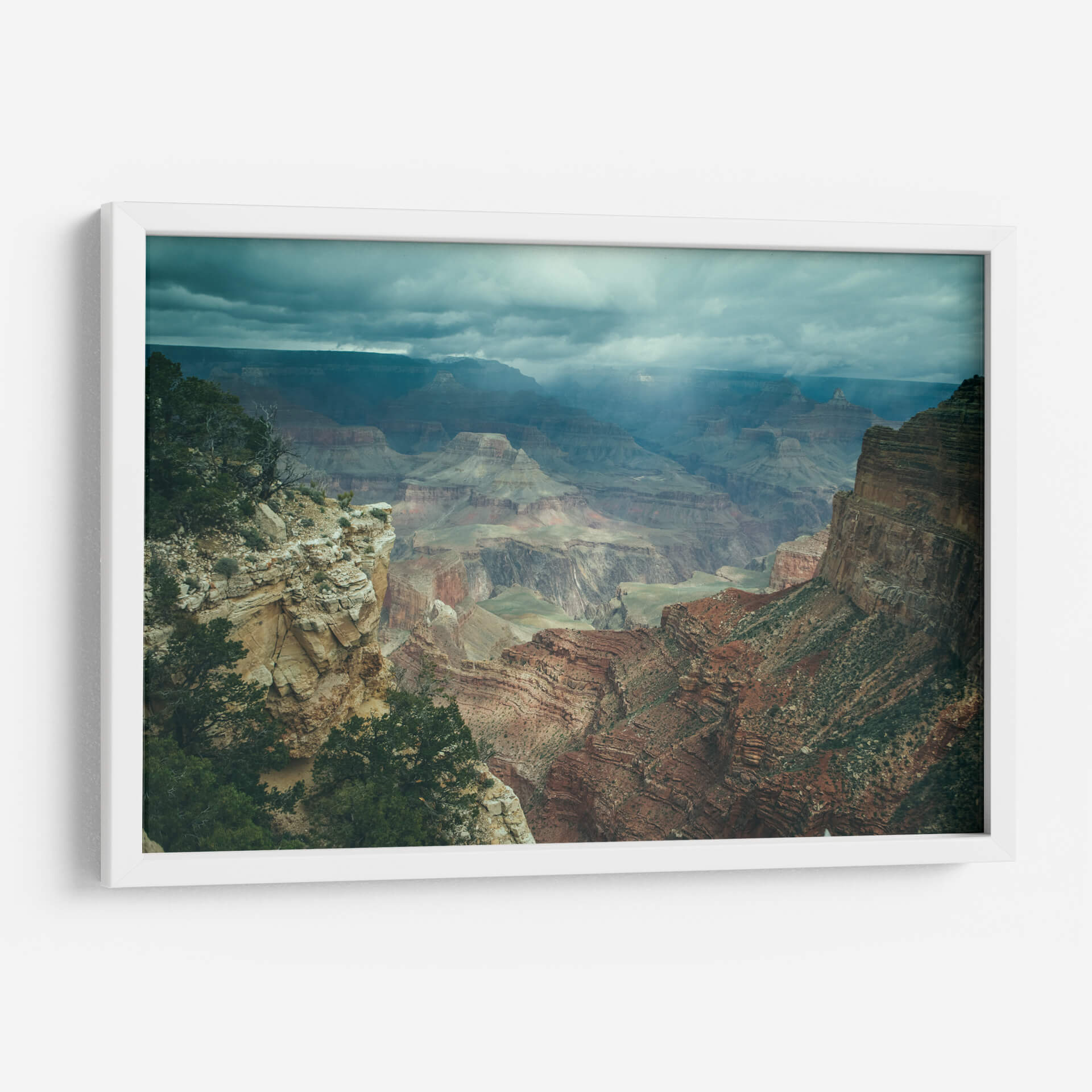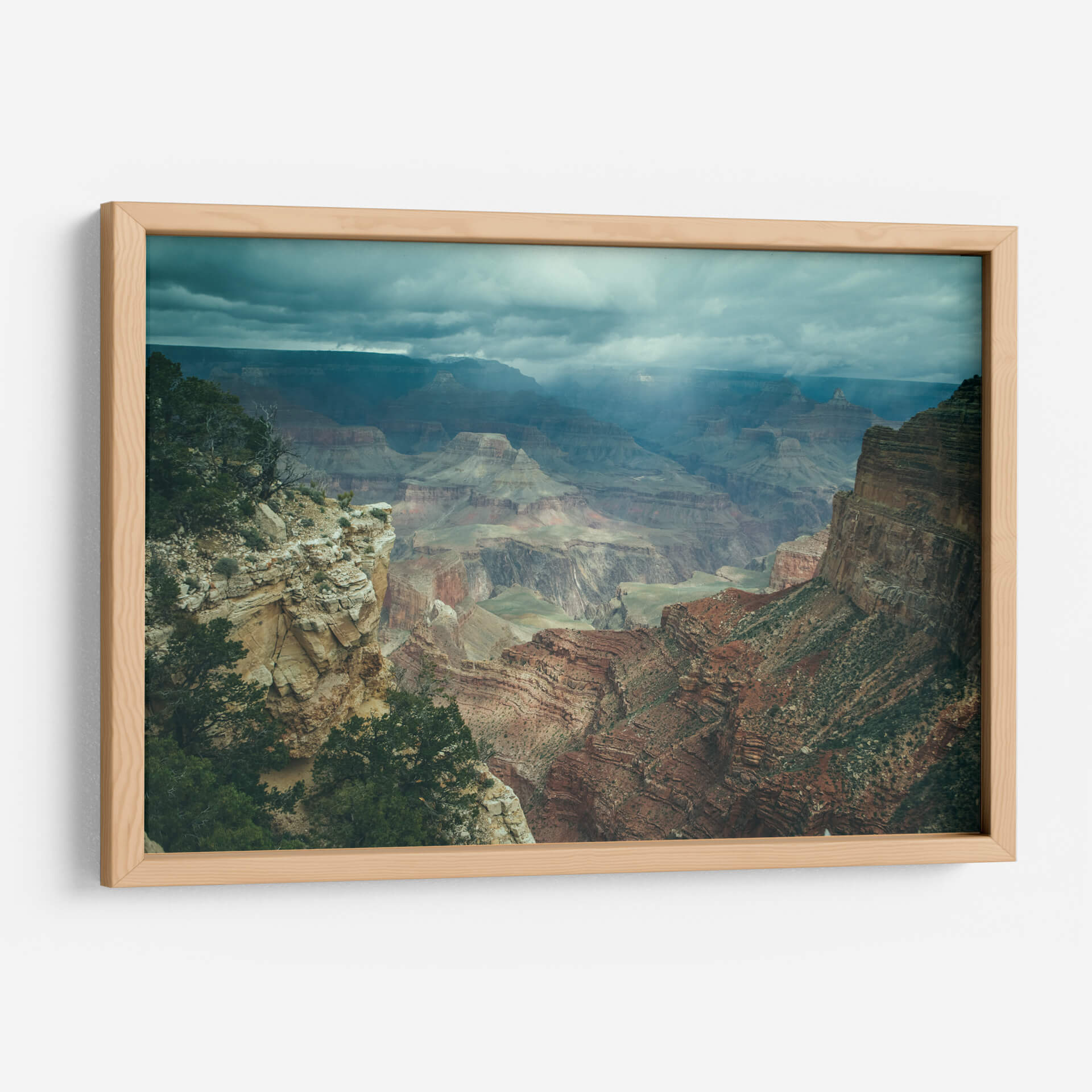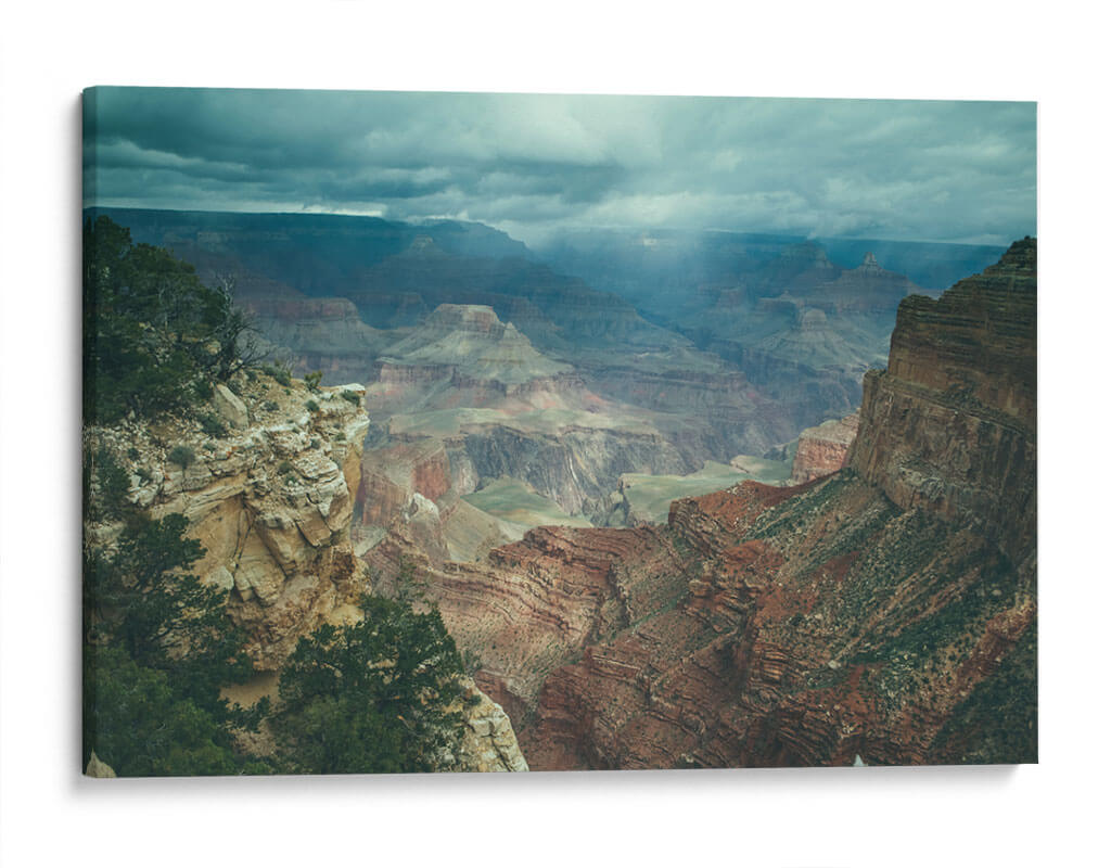 Sumérgete en la majestuosidad de "El eco de la montaña", un cuadro decorativo que captura la inmensidad y el poder de la naturaleza. Esta obra de arte evoca la sensación de estar al borde de un vasto cañón, con capas geológicas que se despliegan en una sinfonía de tonos tierra y verdes profundos. Las nubes dramáticas y los haces de luz que atraviesan el cielo añaden un toque de misterio y serenidad, creando una atmósfera contemplativa. Los detalles de la vegetación en primer plano contrastan con las formaciones rocosas a lo lejos, aportando profundidad y realismo a la composición. Ideal para quienes buscan infundir a sus espacios una sensación de grandeza y conexión con el mundo natural, este cuadro decorativo es perfecto para salones, oficinas o cualquier lugar donde se desee un punto focal que inspire calma y asombro. Transforma tu hogar en un santuario de paz y belleza natural con esta impresionante pieza de arte de pared.