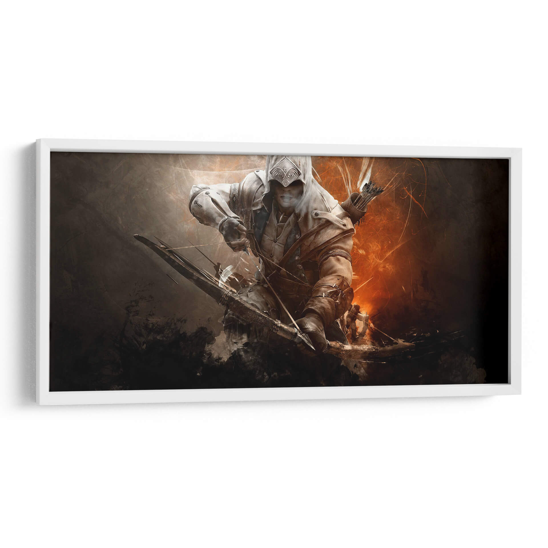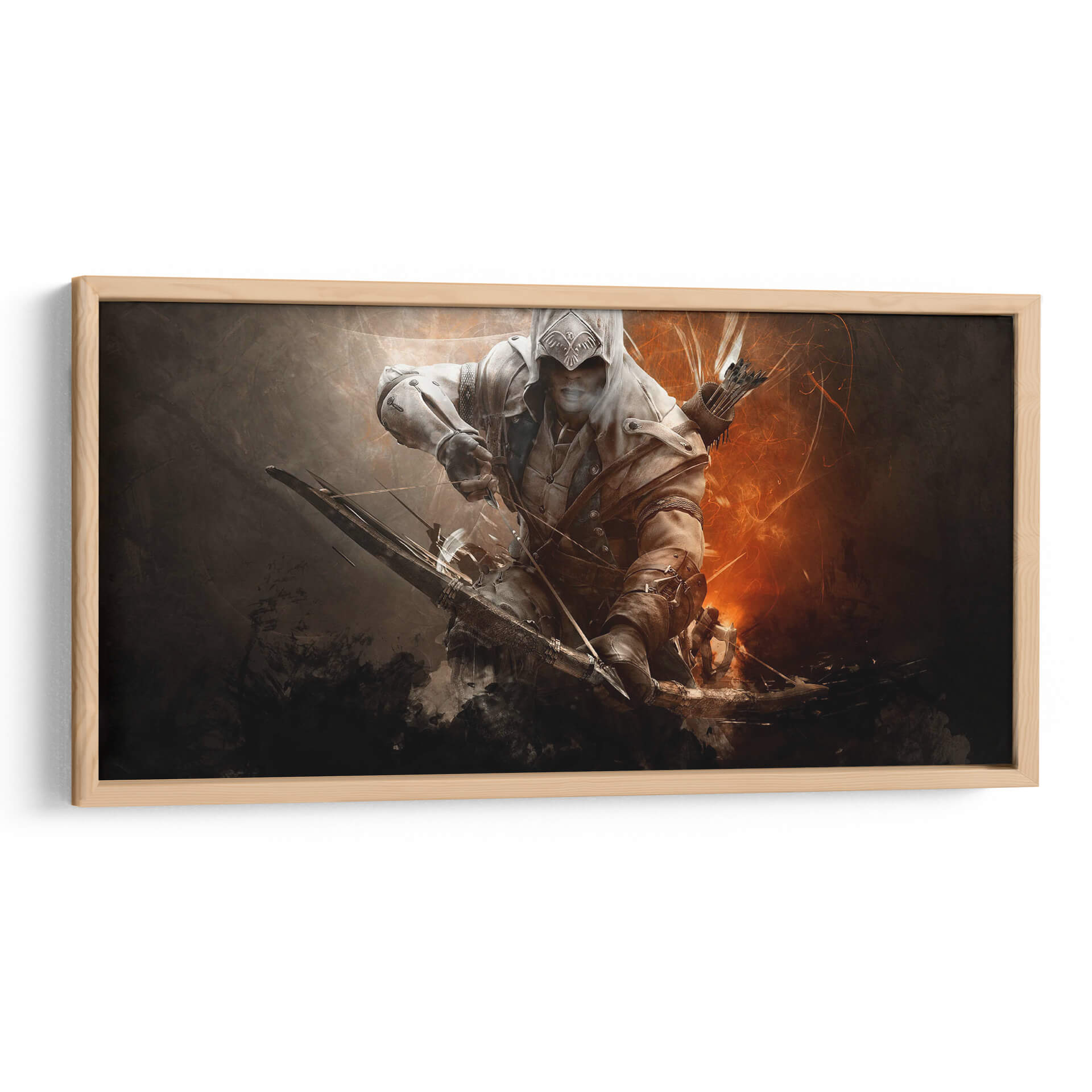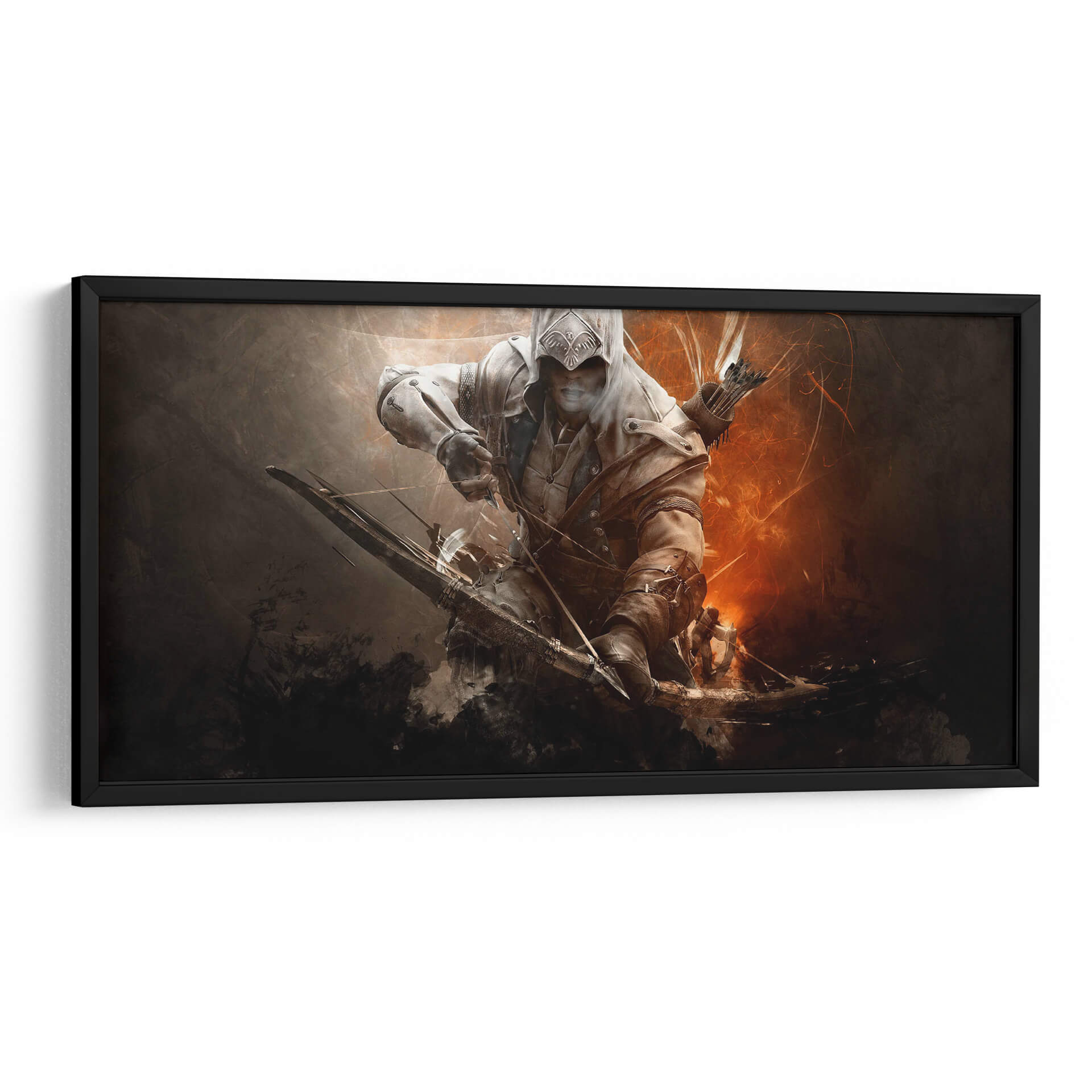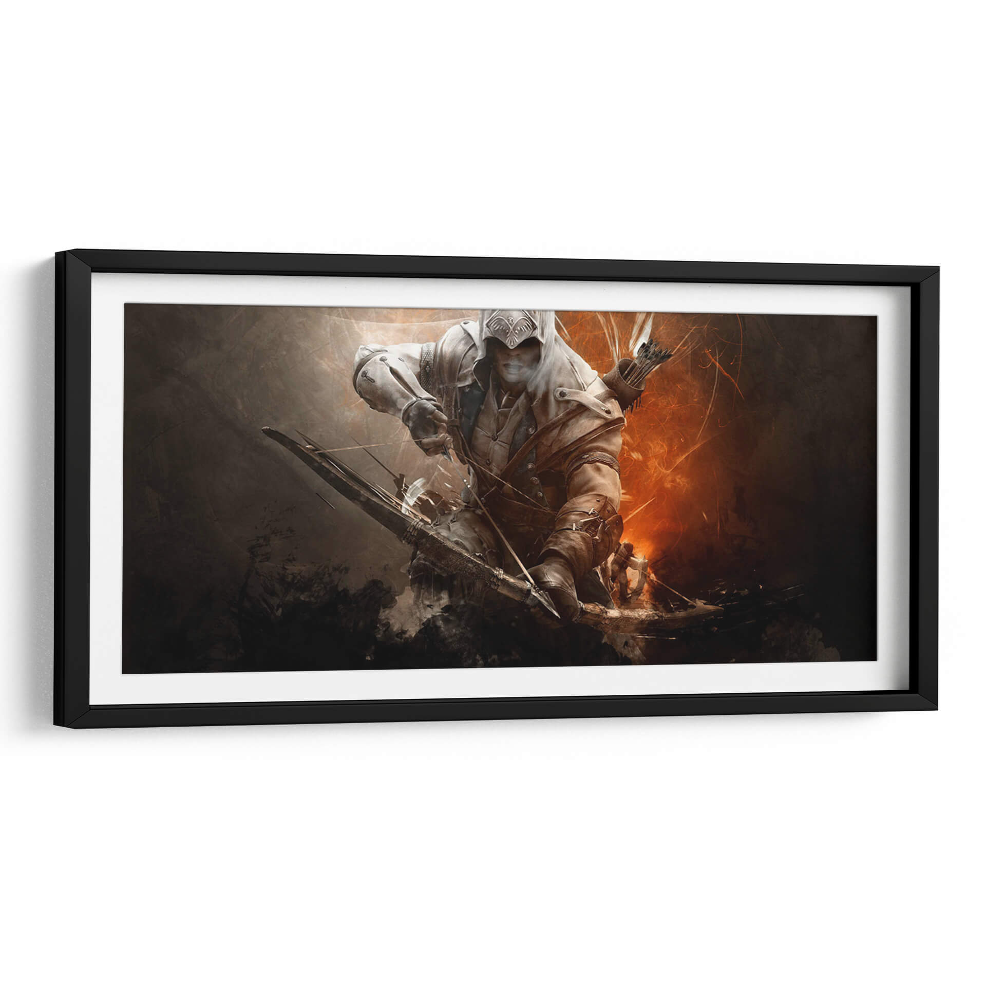 Sumérgete en la intensidad de la acción con este cautivador cuadro decorativo que representa a un guerrero con arco y flechas en plena misión. La obra se caracteriza por su atmósfera oscura y dramática, acentuada por vibrantes explosiones de luz anaranjada que contrastan con las sombras profundas. La figura central, con su vestimenta detallada y pose decidida, irradia fuerza y determinación. Su mirada, aunque parcialmente oculta, transmite concentración y un aura de misterio. La composición dinámica, con el arco tenso y las flechas listas, captura un momento de máxima tensión, invitando al espectador a imaginar la historia detrás del personaje. Este cuadro es ideal para quienes buscan añadir un toque de carácter y energía a sus espacios, siendo una pieza perfecta para salas de estar, estudios o incluso oficinas que necesiten un elemento visual impactante y lleno de narrativa. Su estilo épico y su paleta de colores cálidos y sombríos lo convierten en una adición memorable a cualquier decoración contemporánea o temática.