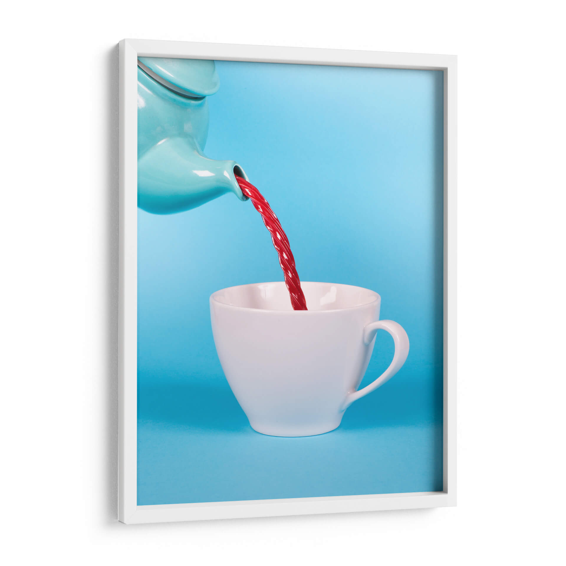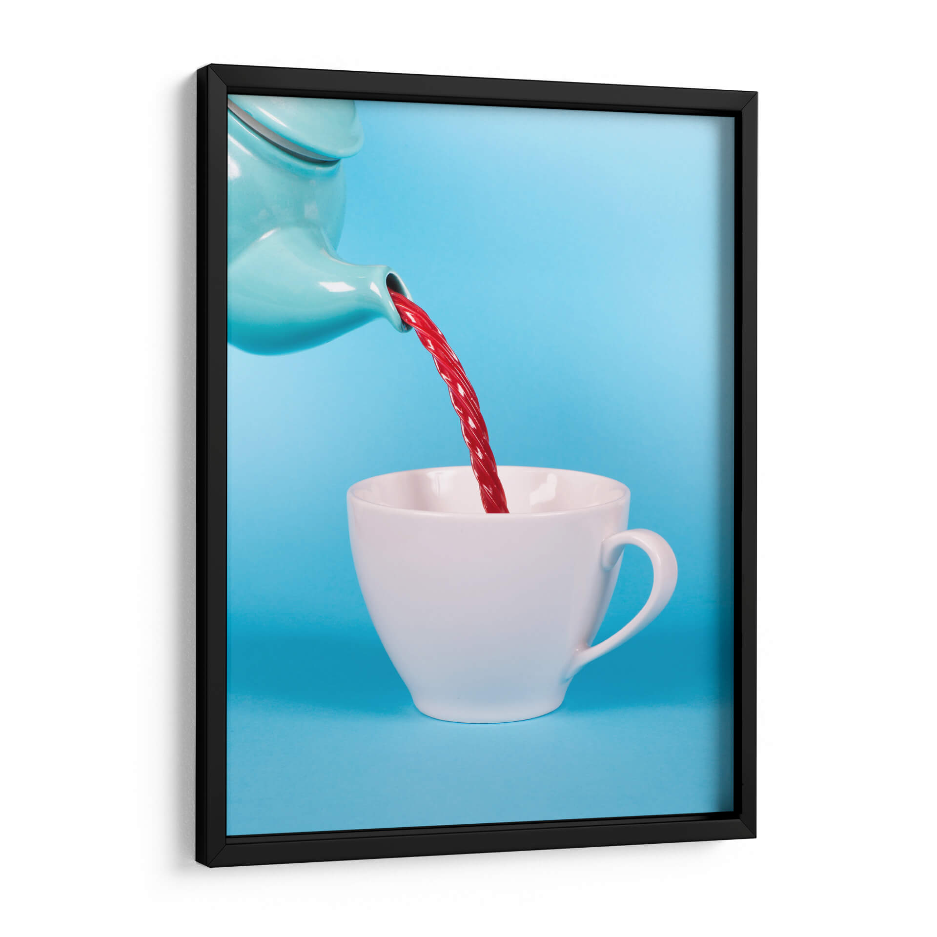 Sumérgete en la dulzura visual de "Hora del Regaliz", una obra de arte contemporánea que captura un momento lúdico y surrealista. Esta pieza presenta una tetera turquesa vertiendo un vibrante y retorcido hilo de regaliz rojo en una taza blanca minimalista. El fondo, de un azul cielo sereno, contrasta maravillosamente con los elementos principales, creando una composición audaz y llamativa. La técnica fotográfica, con su enfoque nítido y colores saturados, resalta la textura del regaliz y la simplicidad de la cerámica, invitando a una contemplación sobre los placeres cotidianos y la transformación de lo ordinario en extraordinario. "Hora del Regaliz" es ideal para añadir un toque de color y originalidad a cocinas, comedores o cualquier espacio que necesite un toque de fantasía y alegría. Su estilo pop art moderno la convierte en una pieza versátil, perfecta para interiores contemporáneos, minimalistas o eclécticos, generando conversación y sonrisas.
