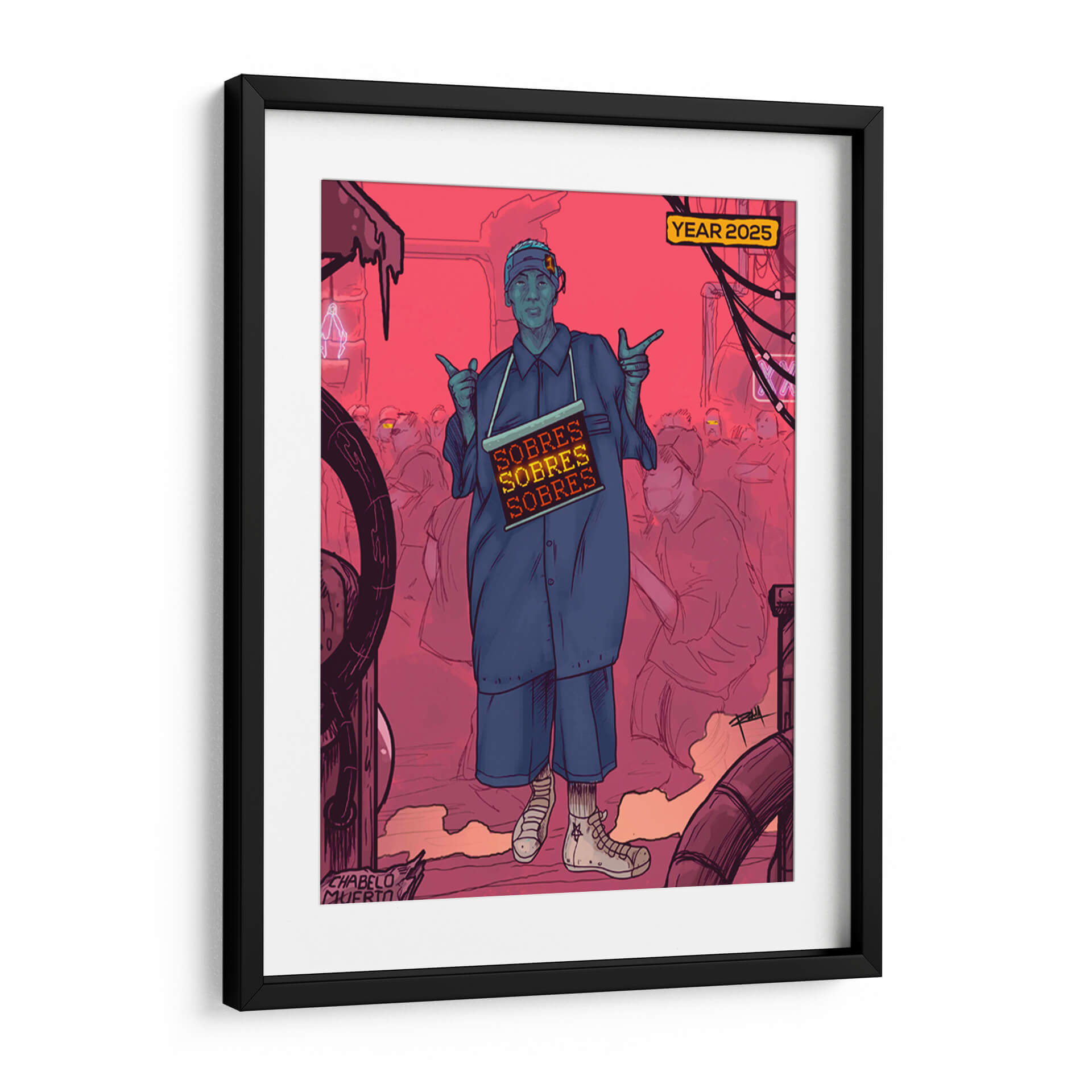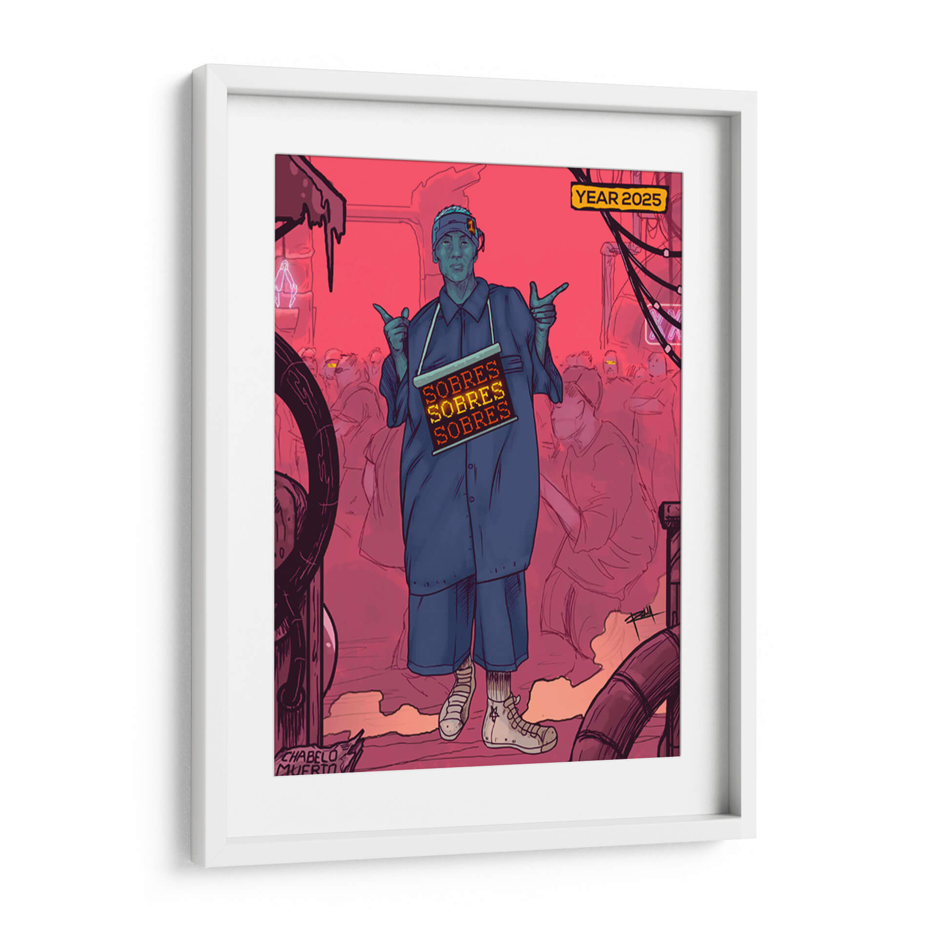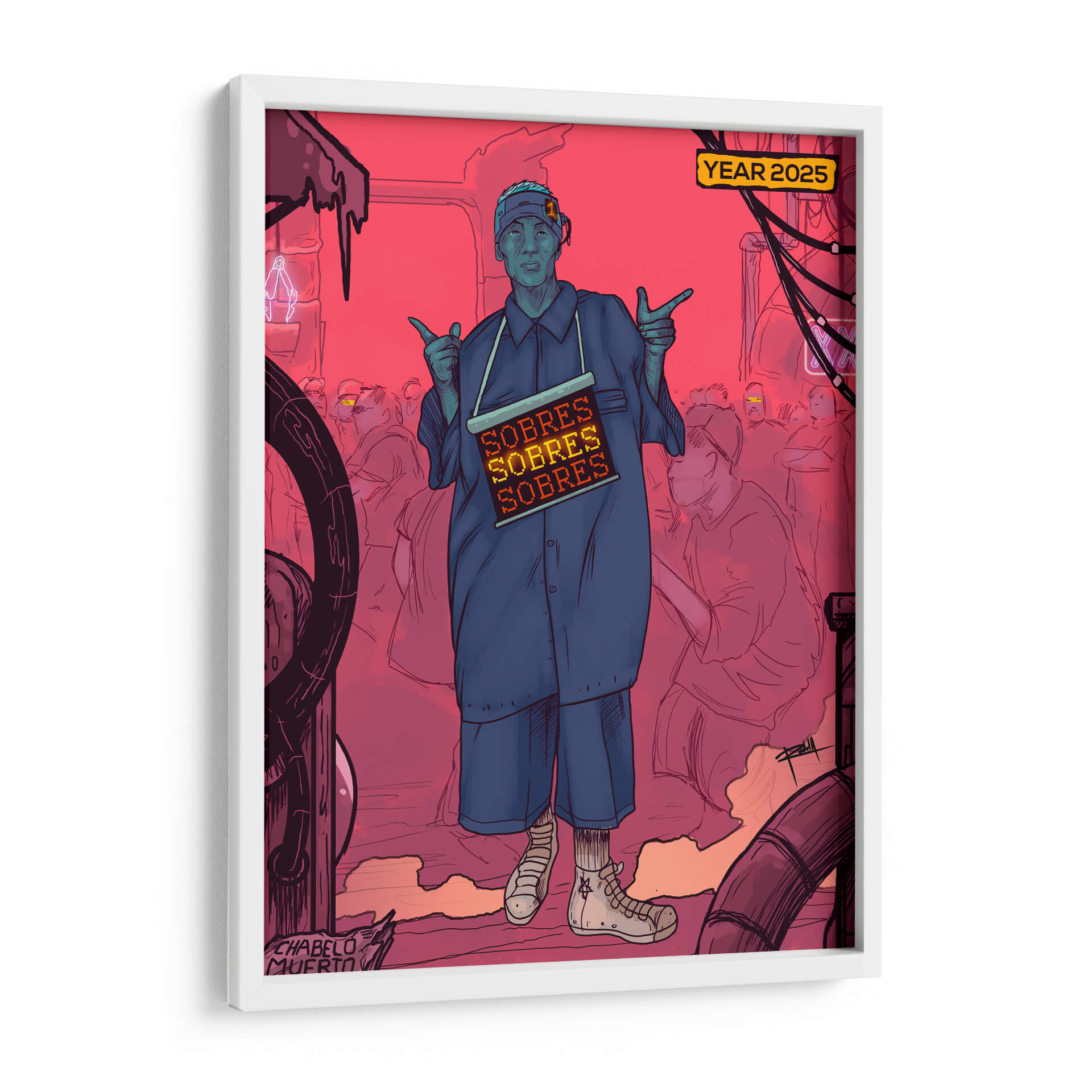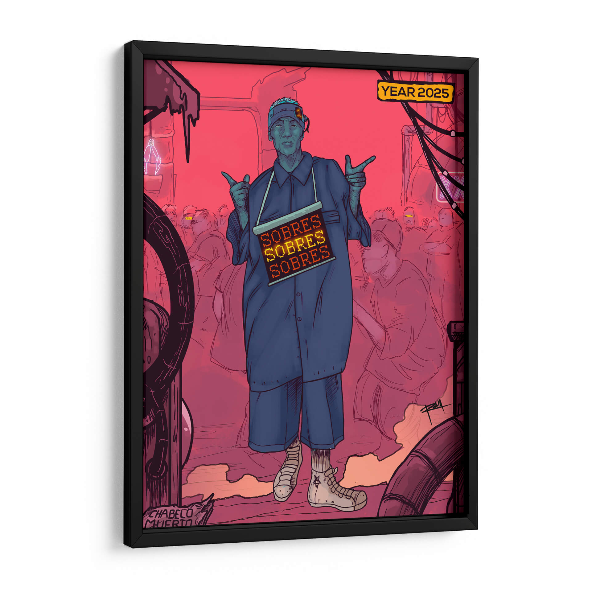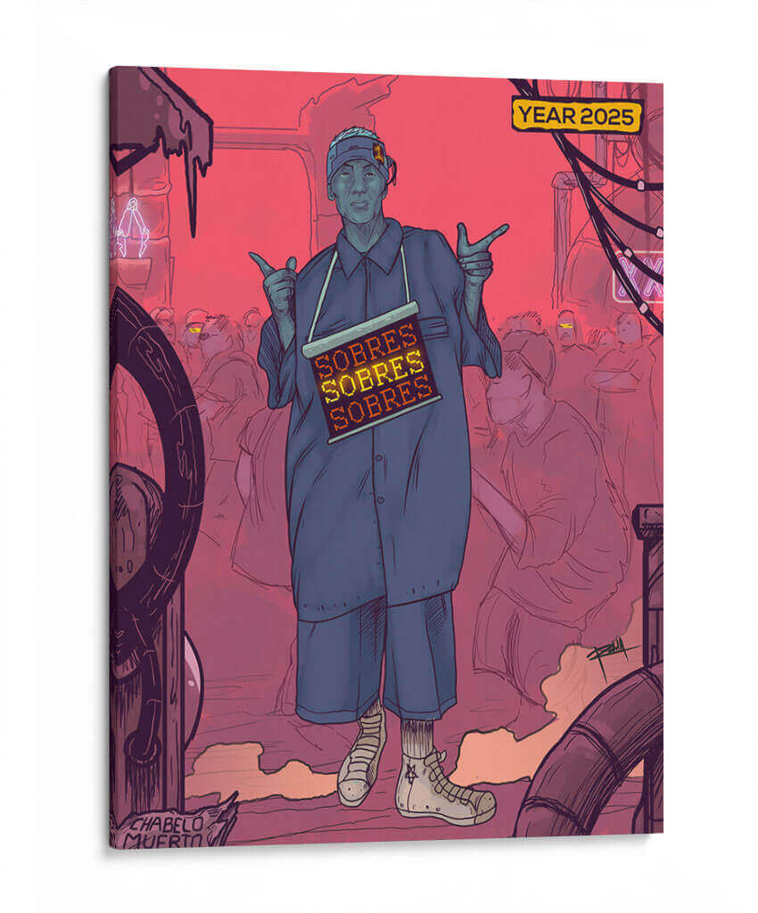 Sumérgete en la atmósfera distópica y vibrante de 'NEOLEON', una obra de arte contemporáneo que cautiva por su estilo único y su potente mensaje visual. El cuadro presenta una figura central en un entorno urbano sombrío, teñido por una paleta de rojos intensos y azules contrastantes, evocando una sensación de urgencia y misterio. La composición, con sus líneas audaces y figuras esquemáticas en el fondo, crea un impacto dinámico que atrae la mirada y provoca la reflexión. "NEOLEON" es ideal para espacios que buscan un toque de vanguardia y carácter, como salas de estar modernas, estudios o incluso oficinas creativas. Su estética audaz y su posible interpretación social lo convierten en un punto focal fascinante, perfecto para iniciar conversaciones y añadir profundidad a la decoración. Esta pieza es una invitación a explorar la intersección entre la cultura urbana, la tecnología y la condición humana en un futuro cercano, todo capturado con la maestría del artista Gerardo Rodela. Añade esta obra maestra a tu colección y transforma cualquier ambiente en una declaración de estilo y pensamiento.