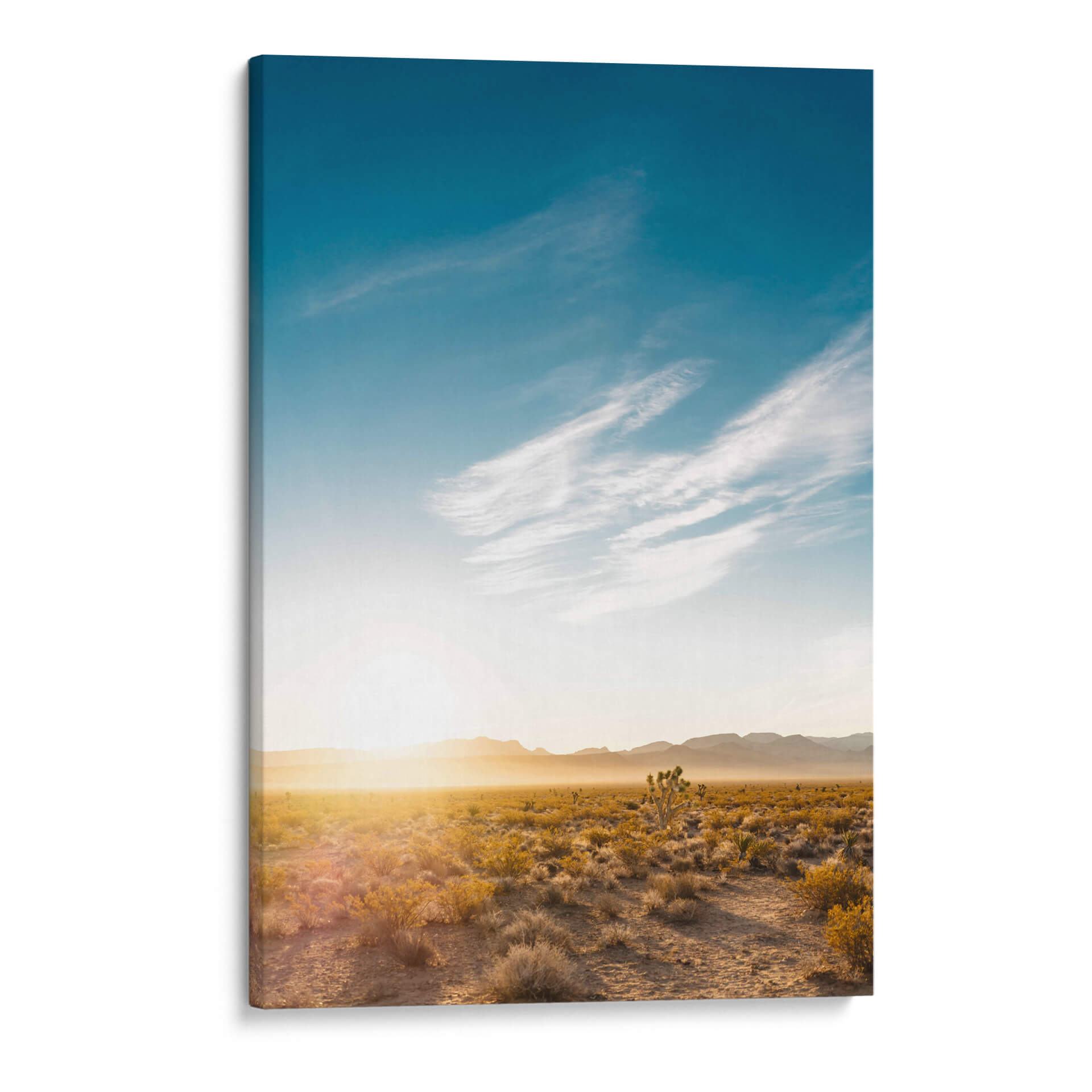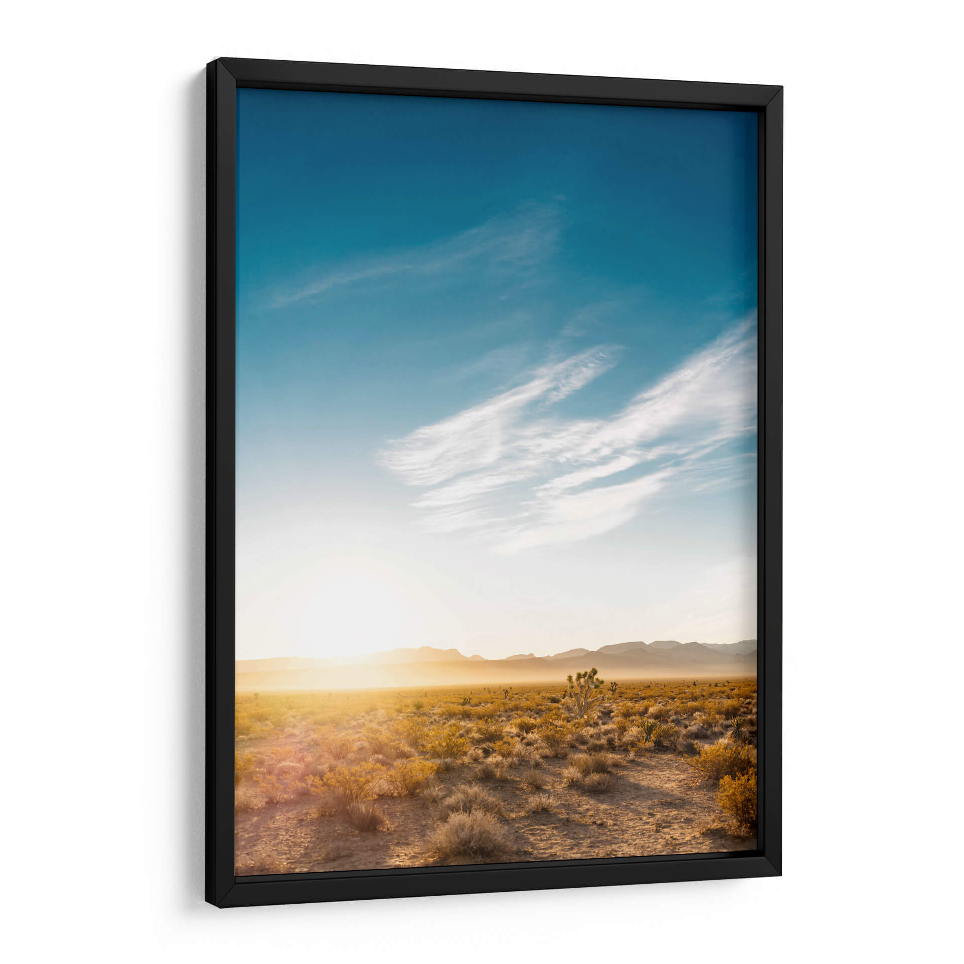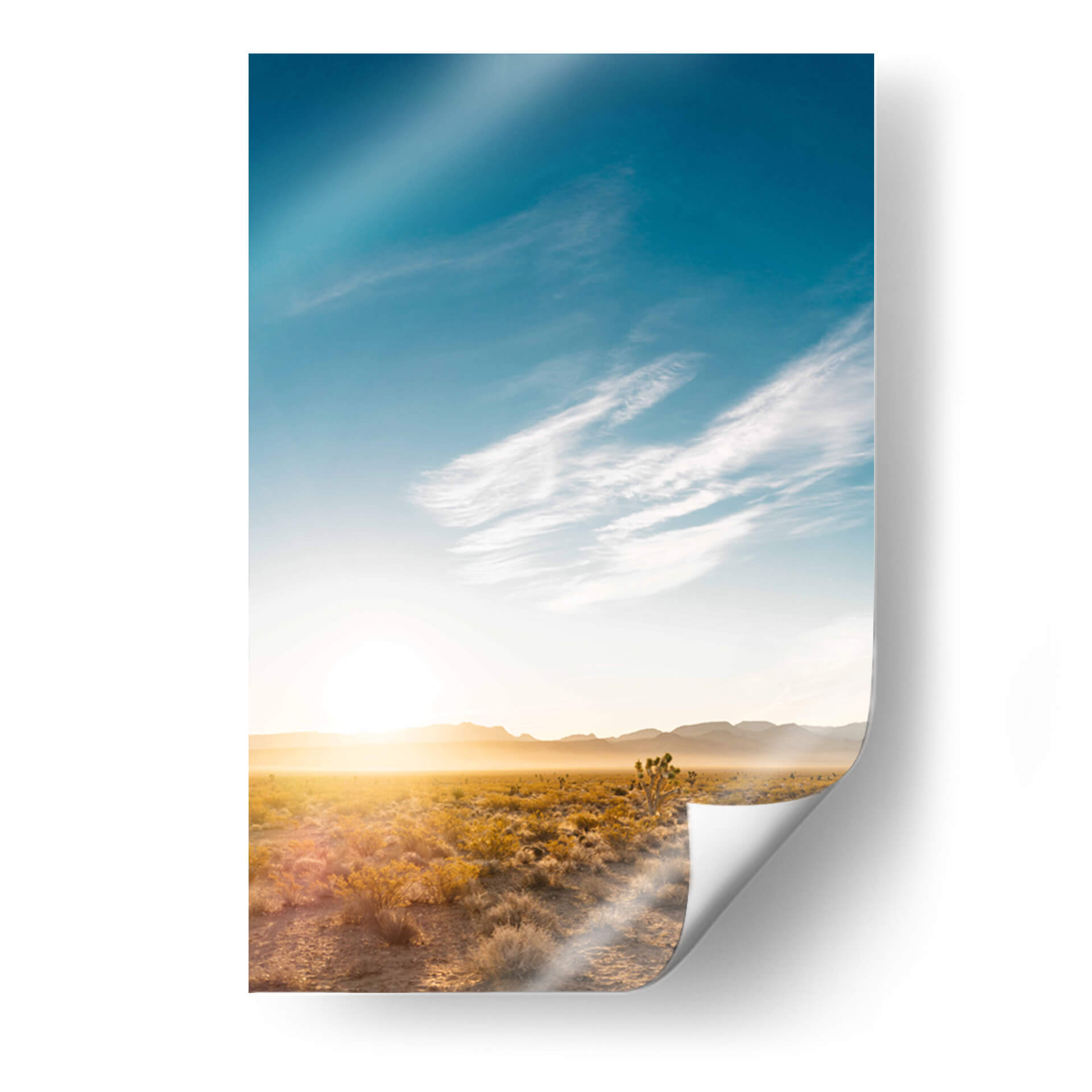 Captura la majestuosidad serena del "Amanecer en el desierto de Nevada" con este evocador cuadro decorativo. La obra de Bethany Young transporta al espectador a un paisaje vasto y tranquilo, donde el cielo azul profundo se encuentra con la tierra dorada y árida. La luz del amanecer se filtra suavemente, bañando la escena en tonos cálidos y etéreos, creando una atmósfera de paz y contemplación. Observa la silueta de las montañas distantes y la vegetación desértica, dominada por la icónica forma de un árbol de Joshua, que añade un toque de carácter único a la composición. Este paisaje fotográfico, con su paleta de colores naturales y su composición equilibrada, es ideal para añadir una sensación de amplitud y calma a cualquier espacio. Perfecto para salas de estar, dormitorios u oficinas que buscan una conexión con la naturaleza y una dosis de serenidad. Convierte tu hogar en un santuario de paz con este impresionante cuadro decorativo que captura la belleza inmutable de un amanecer en el desierto.