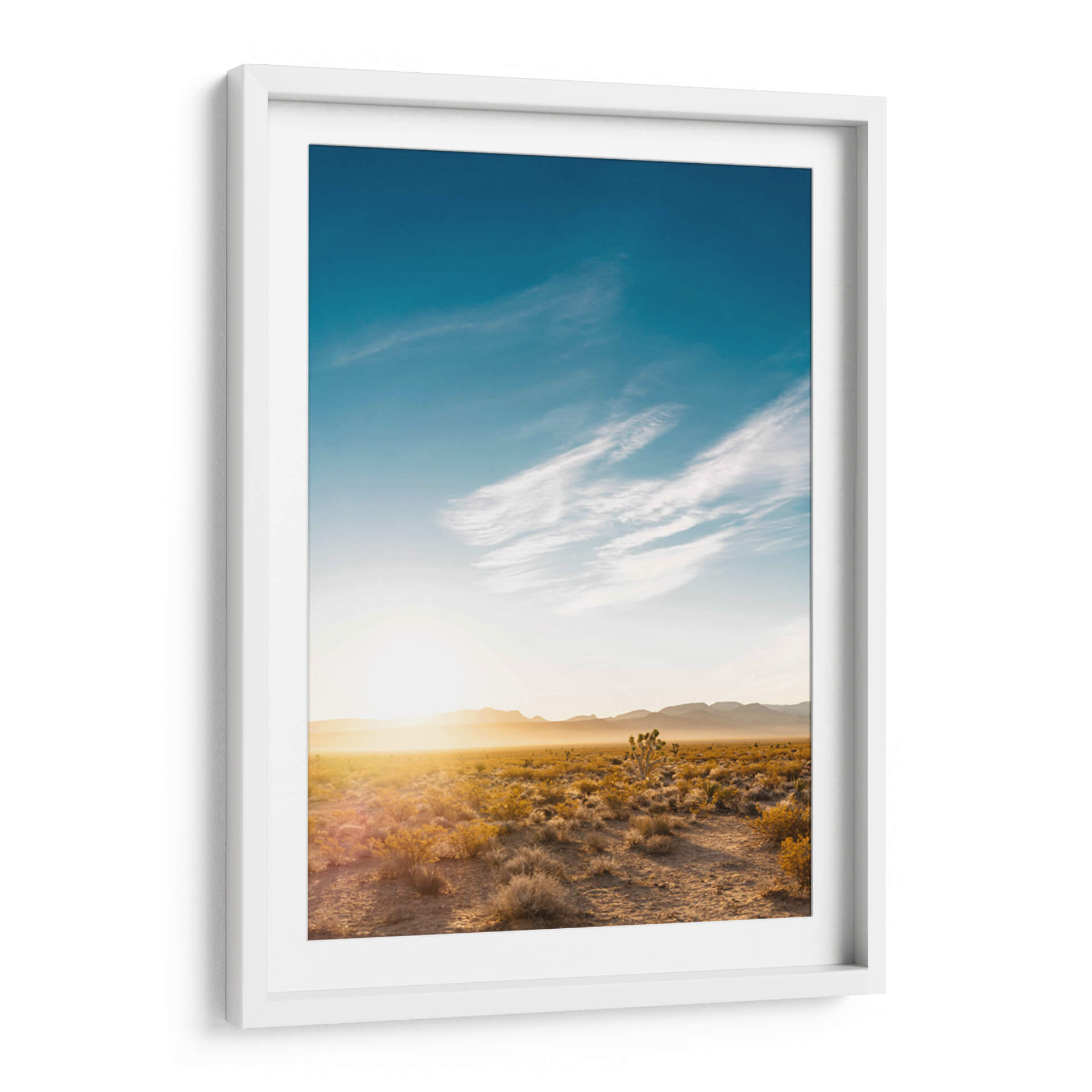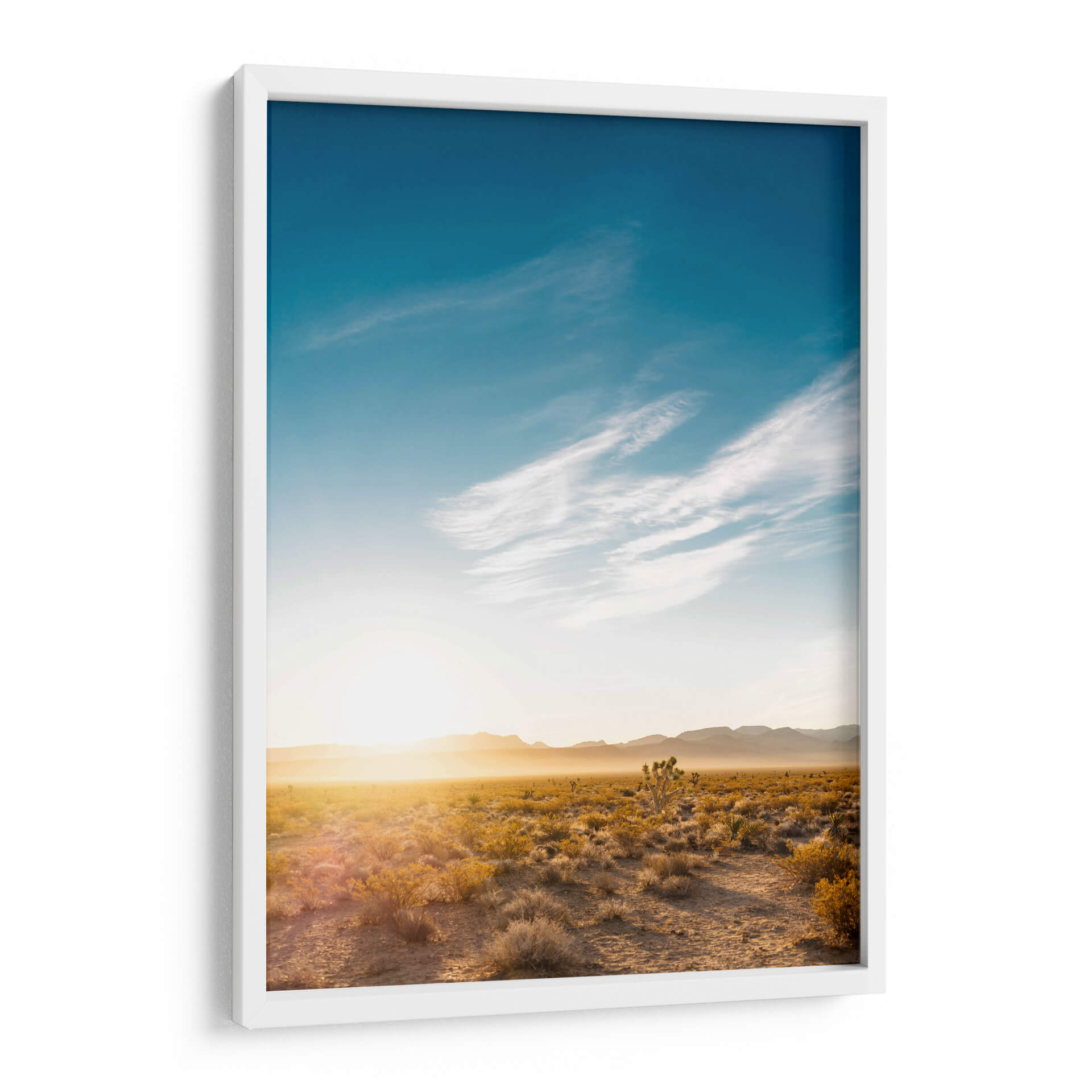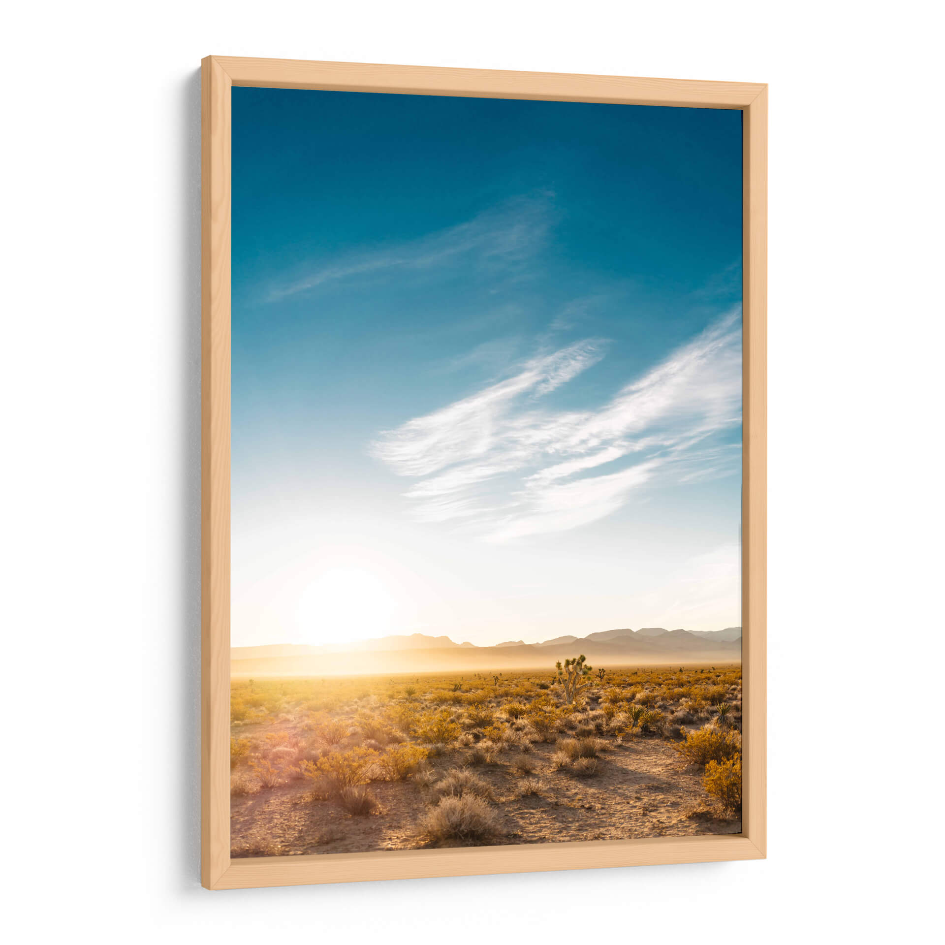Captura la majestuosidad serena del "Amanecer en el desierto de Nevada" con este evocador cuadro decorativo. La obra de Bethany Young transporta al espectador a un paisaje vasto y tranquilo, donde el cielo azul profundo se encuentra con la tierra dorada y árida. La luz del amanecer se filtra suavemente, bañando la escena en tonos cálidos y etéreos, creando una atmósfera de paz y contemplación. Observa la silueta de las montañas distantes y la vegetación desértica, dominada por la icónica forma de un árbol de Joshua, que añade un toque de carácter único a la composición. Este paisaje fotográfico, con su paleta de colores naturales y su composición equilibrada, es ideal para añadir una sensación de amplitud y calma a cualquier espacio. Perfecto para salas de estar, dormitorios u oficinas que buscan una conexión con la naturaleza y una dosis de serenidad. Convierte tu hogar en un santuario de paz con este impresionante cuadro decorativo que captura la belleza inmutable de un amanecer en el desierto.