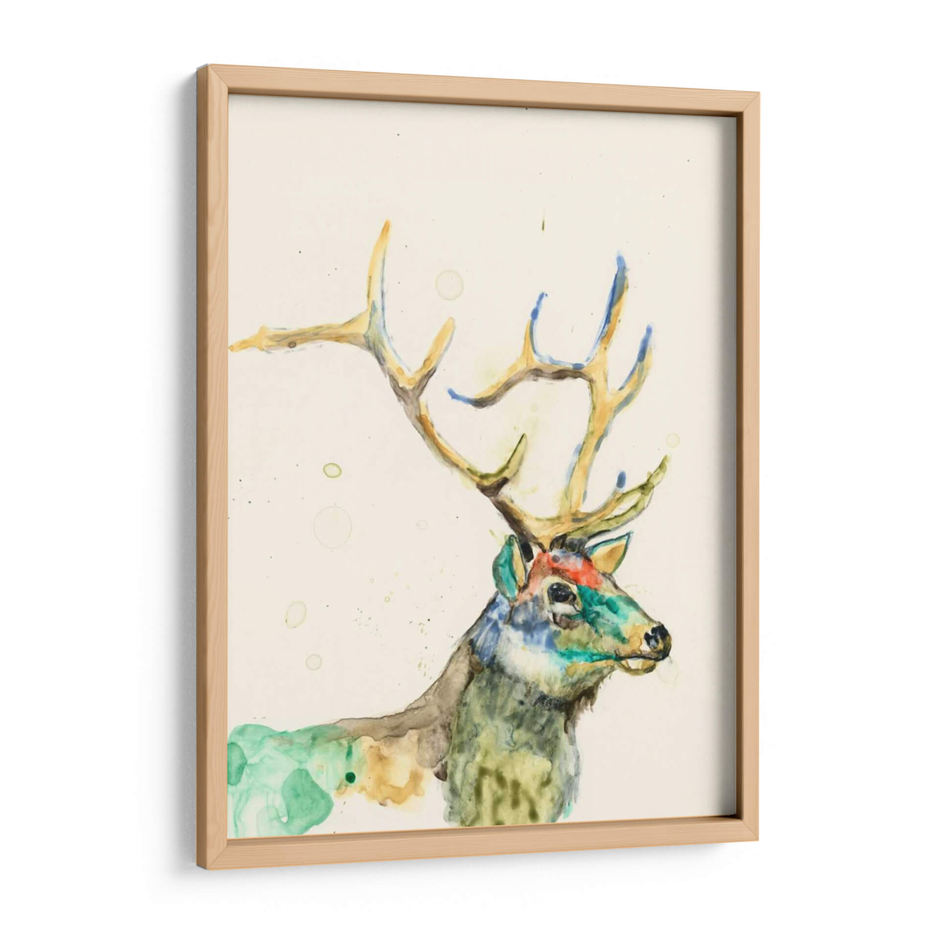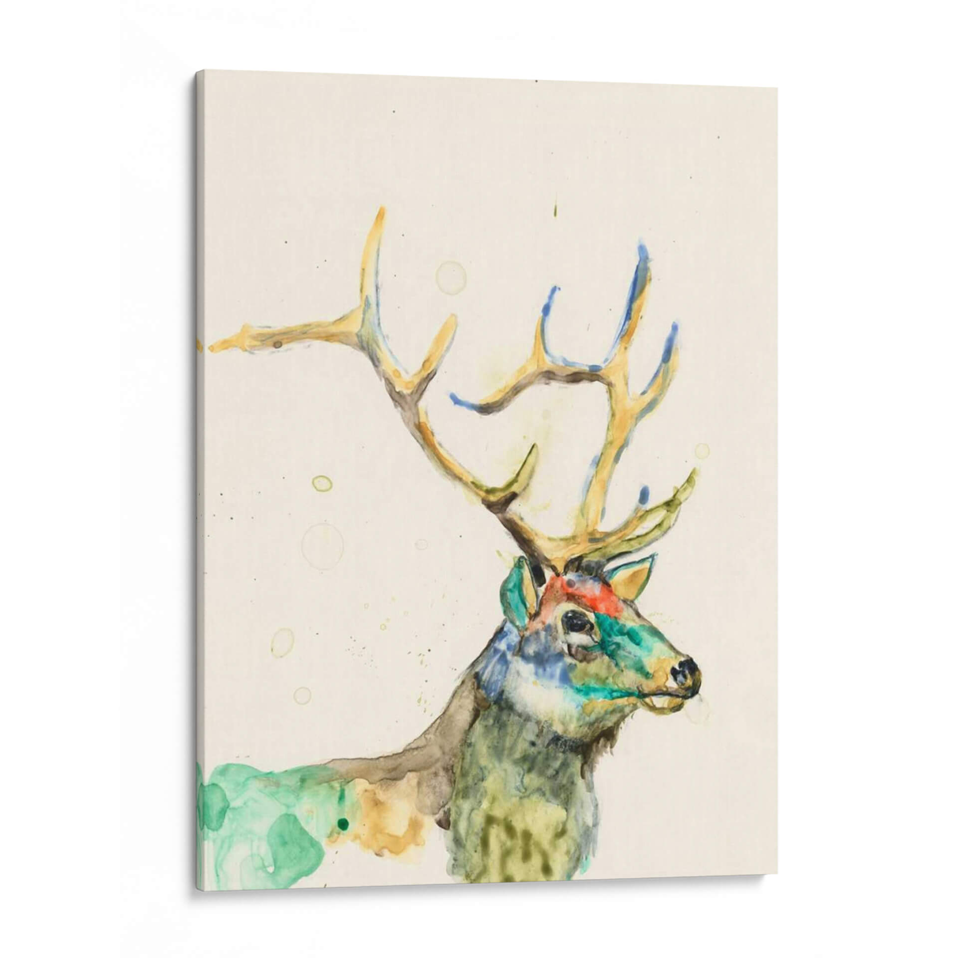 Embárcate en un viaje visual con "Bienvenido De Primavera I", una cautivadora obra de arte de Jennifer Goldberger que celebra la majestuosidad de la naturaleza con un toque contemporáneo. Esta pieza captura la esencia de un ciervo en un estilo de acuarela fluido y expresivo, donde las pinceladas sueltas y la delicadeza de la técnica se unen para crear una imagen llena de vida y movimiento. La paleta de colores, dominada por tonos tierra cálidos, verdes vibrantes y toques de azul y naranja, evoca una sensación de renovación y la frescura de la primavera, tal como su título sugiere. La composición se centra en el perfil del animal, con sus imponentes astas destacándose sobre un fondo neutro que permite que la obra respire y el sujeto principal brille. Las manchas y salpicaduras de acuarela añaden textura y profundidad, otorgando a la pieza un carácter único y un aire de espontaneidad artística. Este cuadro decorativo es perfecto para infundir serenidad y un toque de la belleza salvaje en cualquier estancia, ya sea un salón acogedor, un estudio tranquilo o un dormitorio que busque inspiración natural. "Bienvenido De Primavera I" no es solo una imagen, sino una invitación a conectar con la naturaleza y la expresión artística más pura, transformando tu hogar en un refugio de estilo y armonía.