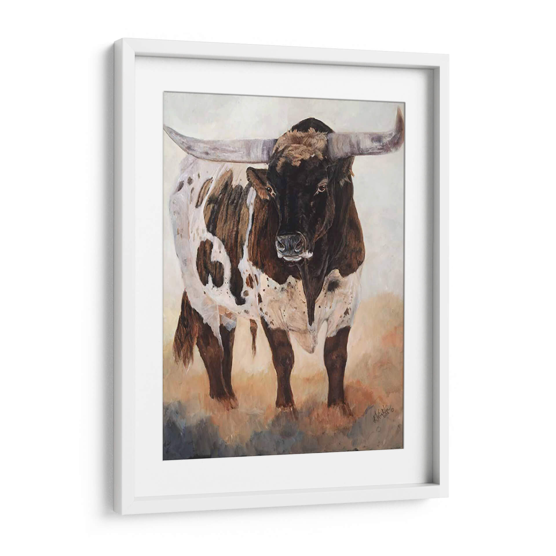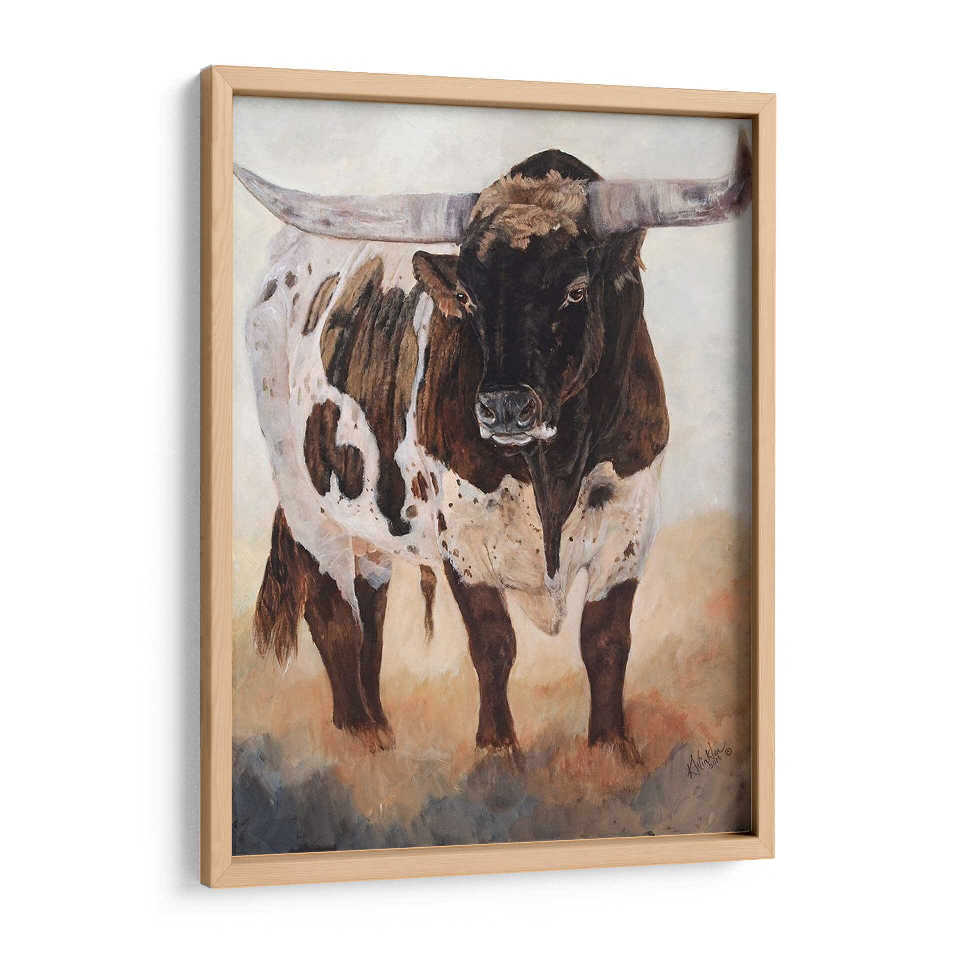 Sumérgete en la majestuosidad y la fuerza indomable con "Big Daddy II", una obra de arte excepcional de Kathy Winkler que captura la esencia de un poderoso toro. Esta pieza, realizada con una técnica que evoca la pintura tradicional, presenta un detallado retrato de un bovino de gran tamaño con cuernos imponentes y un pelaje moteado en tonos marrones y blancos. La paleta de colores, dominada por terrosos, ocres y contrastes oscuros, crea una atmósfera de fuerza y presencia, ideal para espacios que buscan un toque de carácter y autenticidad. La composición centra la atención en el animal, transmitiendo una sensación de poder tranquilo y serenidad animal. "Big Daddy II" es más que un cuadro decorativo; es una declaración de intenciones, perfecta para añadir un punto focal rústico y sofisticado a tu sala de estar, estudio u oficina. Su estilo realista con toques expresivos la convierte en una adición memorable a cualquier colección de arte de pared, evocando la belleza salvaje y la resistencia de la naturaleza. Transforma tu hogar en un santuario de estilo con esta impresionante representación artística.