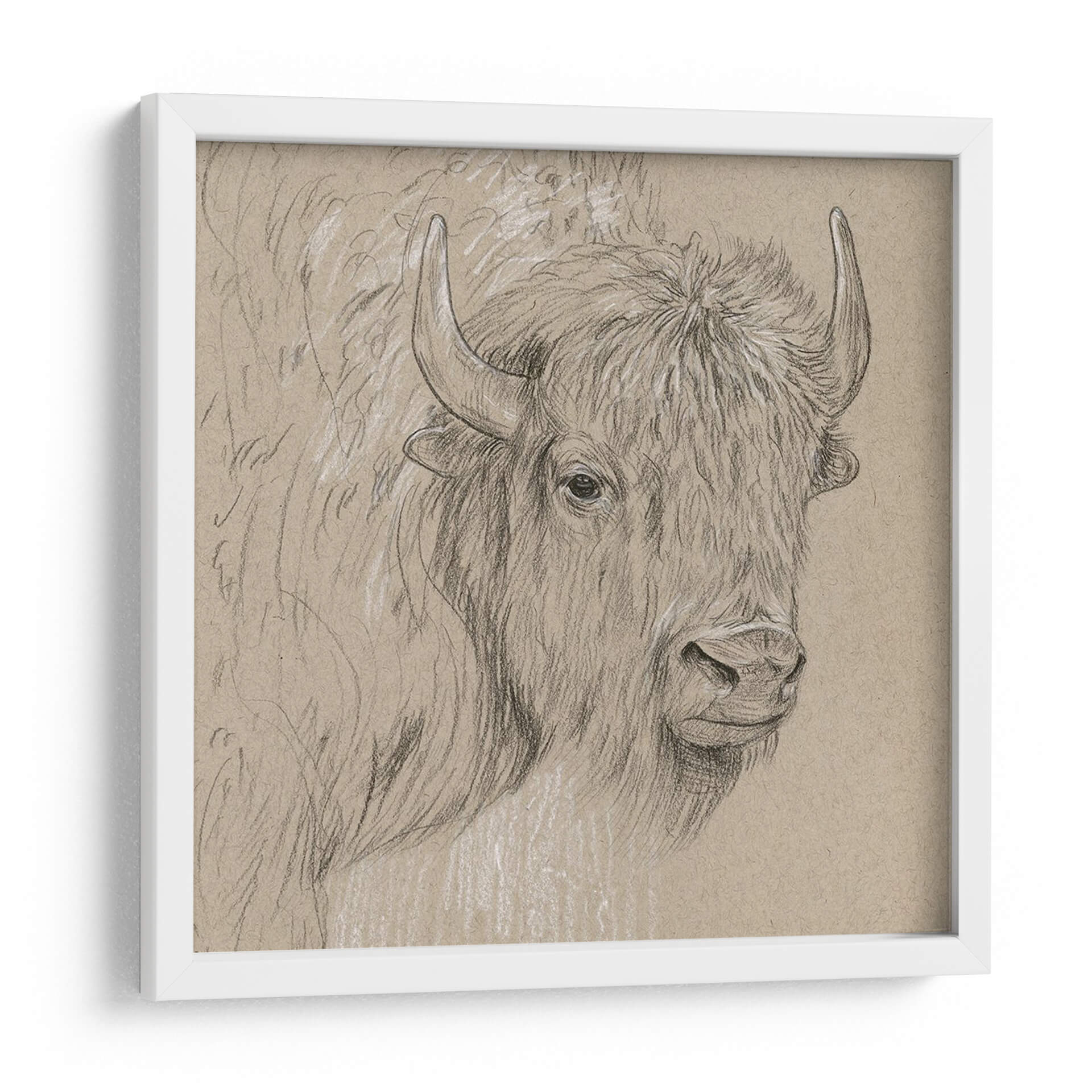 Captura la fuerza y la majestuosidad de la naturaleza con "Bisonte Boceto I", una obra de arte de Melissa Wang que evoca la imponencia del rey de las praderas. Este cuadro decorativo presenta un detallado boceto a lápiz de un bisonte, destacando la textura de su pelaje y la expresividad de su mirada. La paleta de colores, basada en tonos tierra y grises sutiles, aporta una sensación de autenticidad y conexión con lo salvaje. El estilo realista pero con toques de boceto le confiere un aire de intimidad y espontaneidad, como si hubieras capturado un momento fugaz en la naturaleza. La composición centrada en el rostro del animal crea un punto focal poderoso, invitando a la contemplación de su carácter indomable. Este cuadro es ideal para aquellos que buscan añadir un toque de carácter rústico o un guiño a la fauna americana en su hogar u oficina. Perfecto para salones, estudios o incluso dormitorios, "Bisonte Boceto I" es más que una simple decoración; es una pieza que inspira respeto por el mundo natural y añade una dimensión atemporal a cualquier espacio.