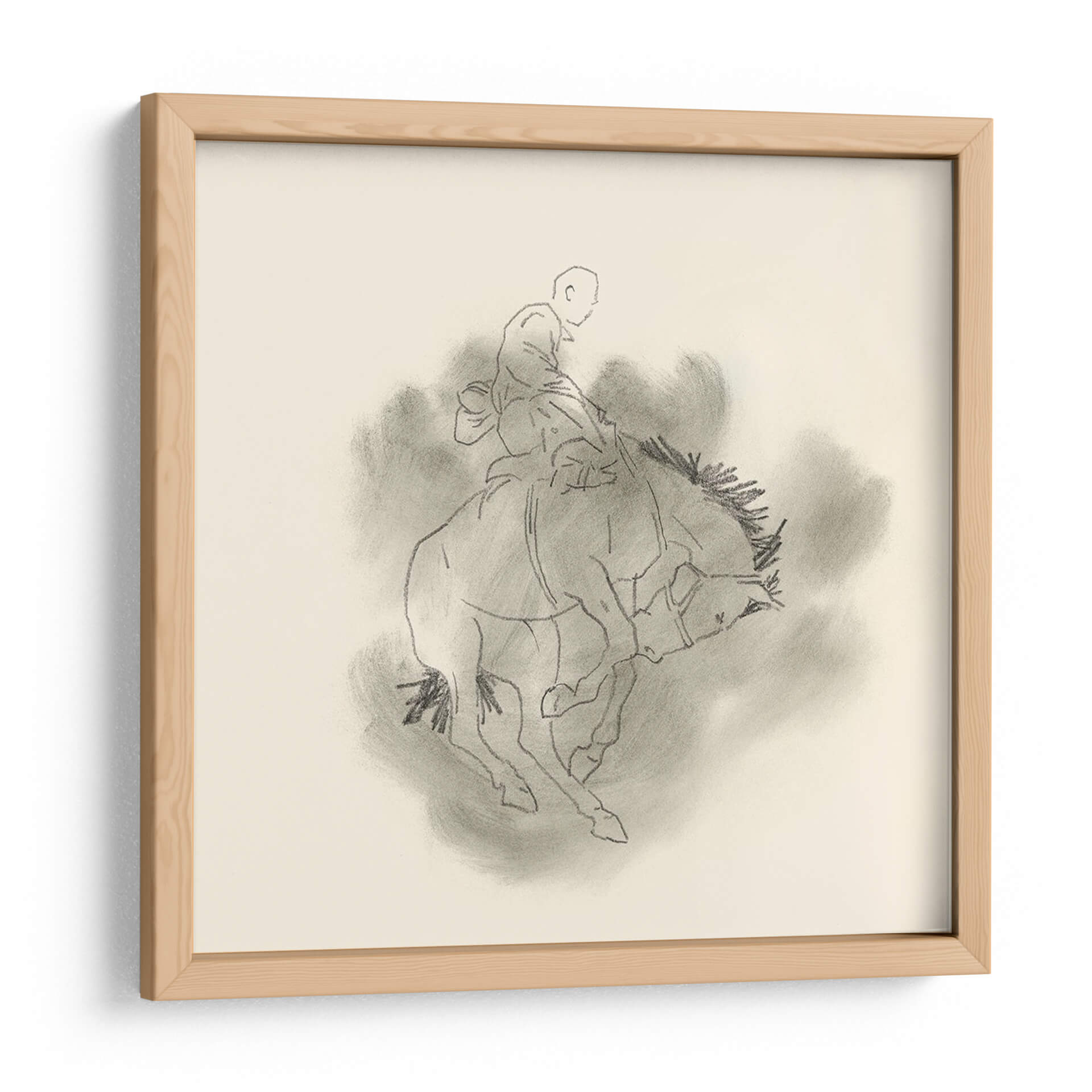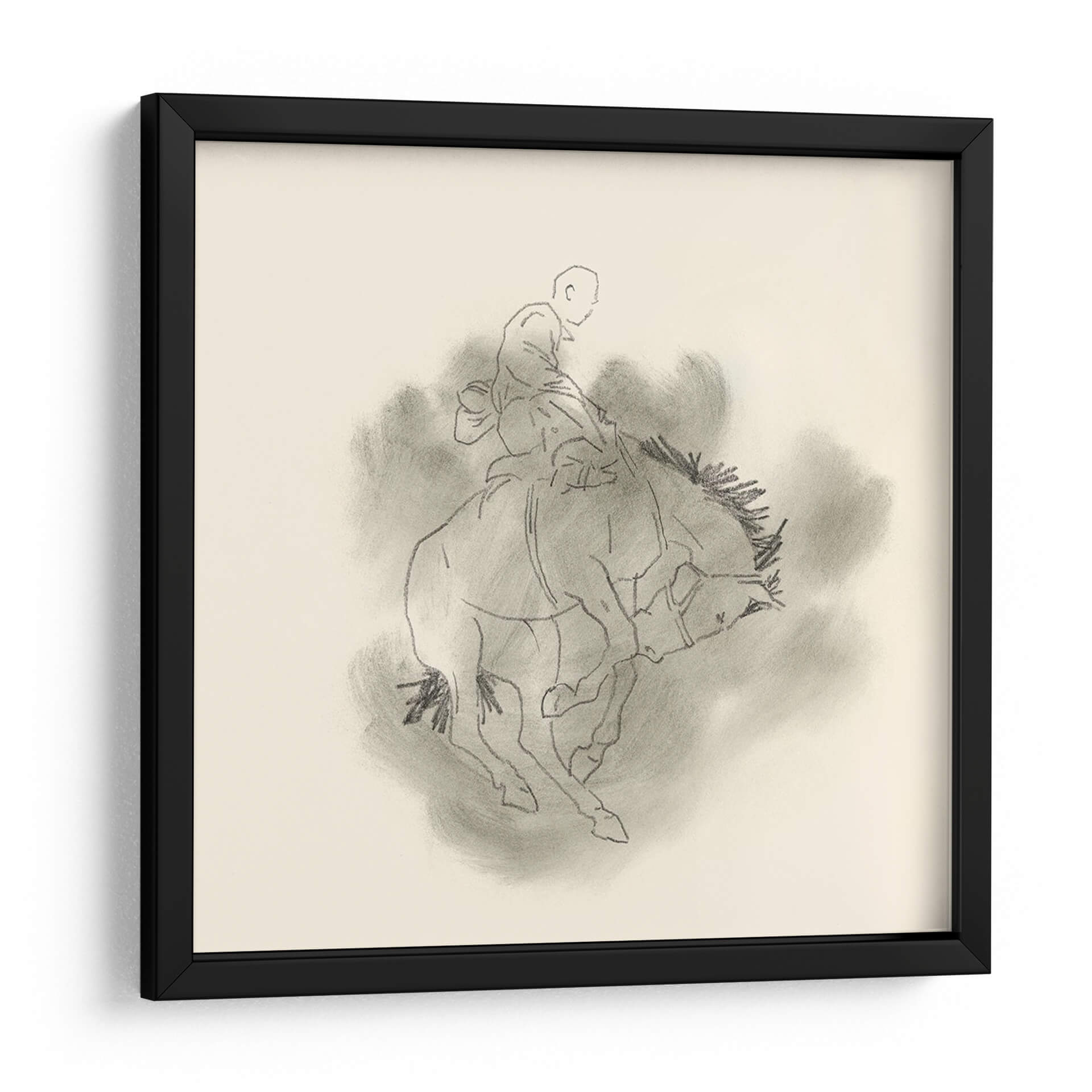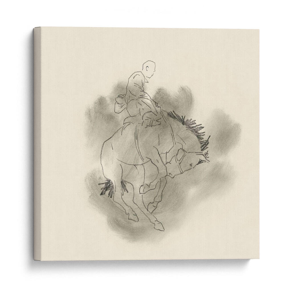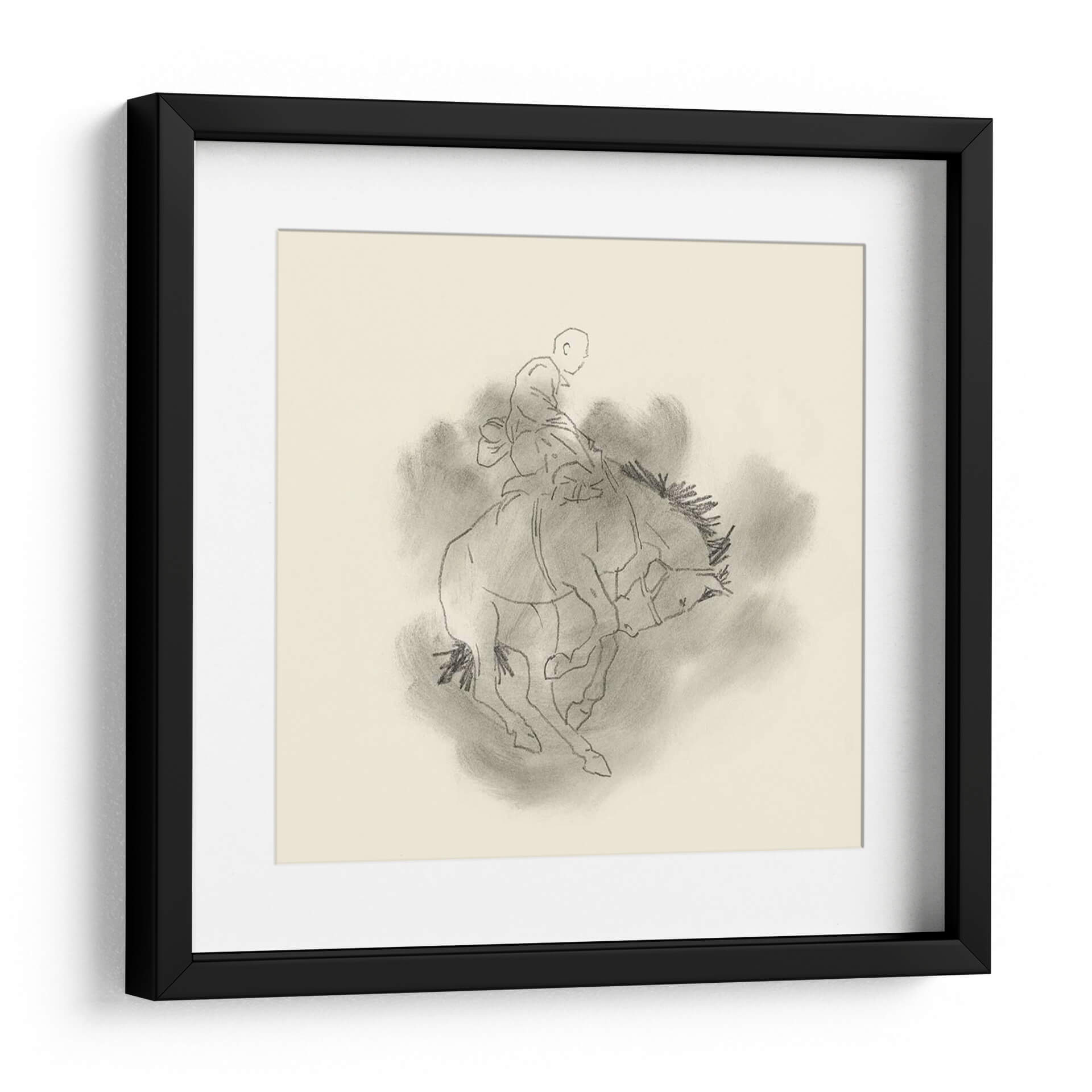 Sumérgete en la emoción cruda y la energía desbordante de "Broc Buster I", una cautivadora obra de arte del artista W. Rutledge. Esta pieza, ejecutada con una maestría que evoca la espontaneidad del boceto a lápiz, captura el instante dramático de un jinete desafiando a un caballo salvaje en plena acción. La paleta de colores es sutil y se centra en tonos neutros y grises difuminados, creando una atmósfera etérea que resalta el movimiento dinámico y la tensión palpable de la escena. El estilo artístico, que roza lo expresionista con toques de realismo gestual, se enfoca en la esencia del momento, transmitiendo una sensación de valentía, destreza y la indomable fuerza de la naturaleza. Las líneas fluidas y la composición dinámica invitan al espectador a sentir la adrenalina del rodeo. "Broc Buster I" es más que un simple cuadro decorativo; es una declaración de espíritu indomable, ideal para espacios que buscan un toque de carácter audaz y una conexión con la tradición ecuestre. Transforma tu sala de estar, estudio u oficina en un lienzo de historias potentes y decoración con significado, donde cada mirada evoca la fuerza y la pasión del oeste.