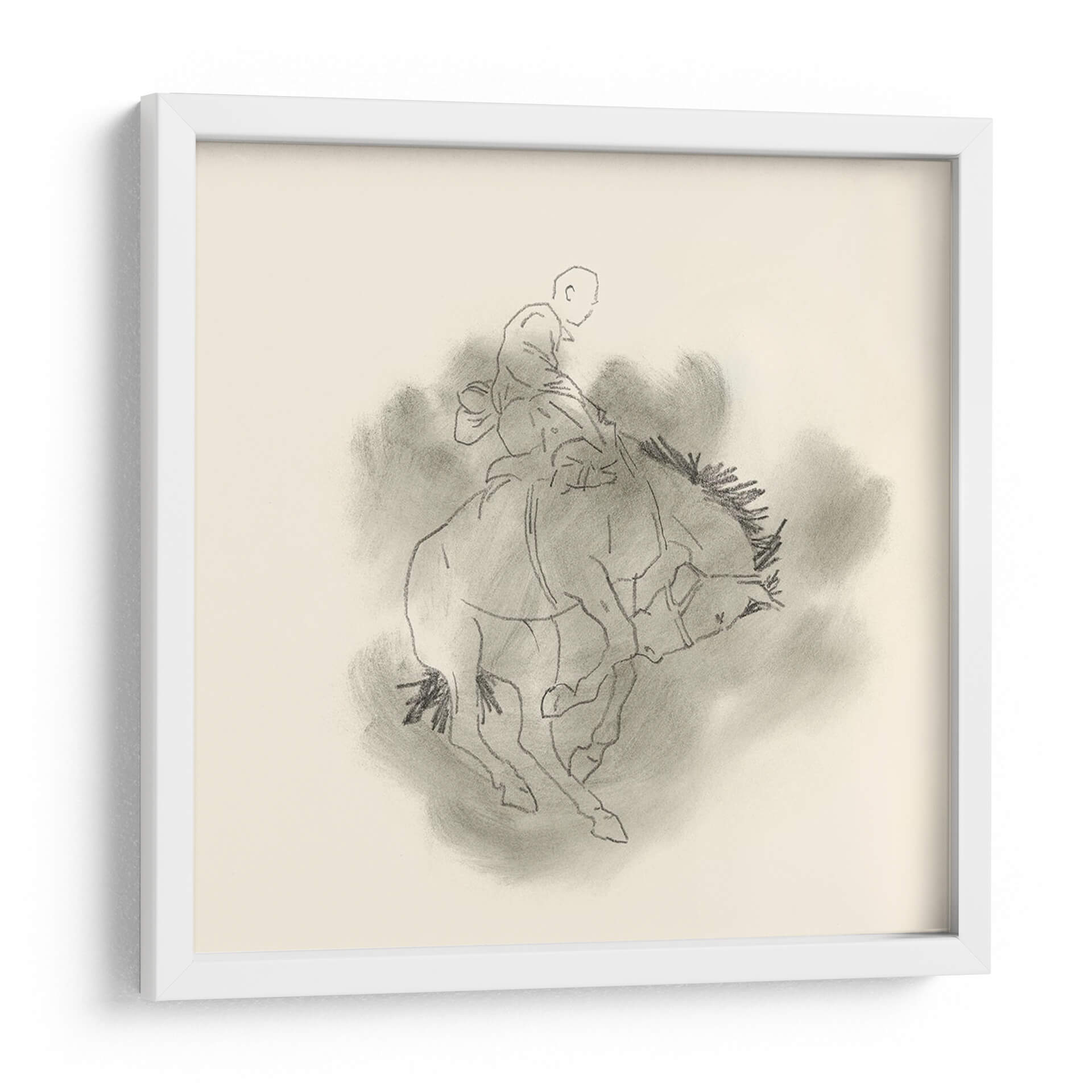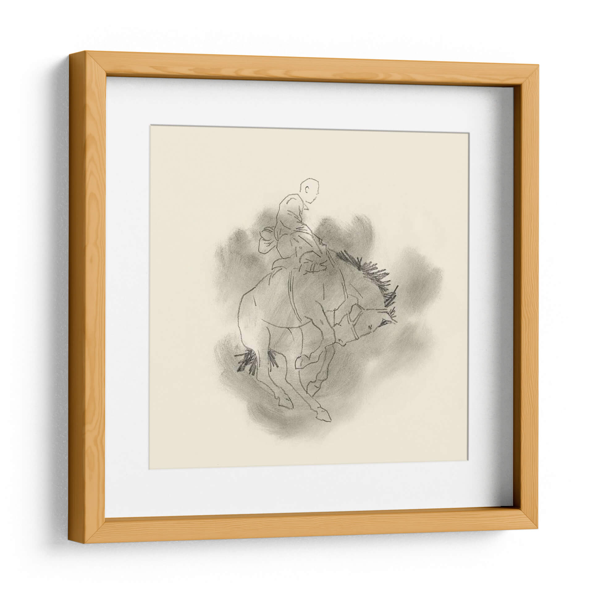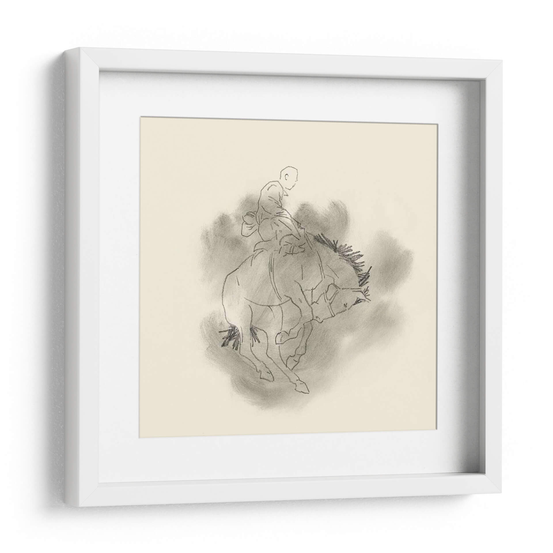 Sumérgete en la emoción cruda y la energía desbordante de "Broc Buster I", una cautivadora obra de arte del artista W. Rutledge. Esta pieza, ejecutada con una maestría que evoca la espontaneidad del boceto a lápiz, captura el instante dramático de un jinete desafiando a un caballo salvaje en plena acción. La paleta de colores es sutil y se centra en tonos neutros y grises difuminados, creando una atmósfera etérea que resalta el movimiento dinámico y la tensión palpable de la escena. El estilo artístico, que roza lo expresionista con toques de realismo gestual, se enfoca en la esencia del momento, transmitiendo una sensación de valentía, destreza y la indomable fuerza de la naturaleza. Las líneas fluidas y la composición dinámica invitan al espectador a sentir la adrenalina del rodeo. "Broc Buster I" es más que un simple cuadro decorativo; es una declaración de espíritu indomable, ideal para espacios que buscan un toque de carácter audaz y una conexión con la tradición ecuestre. Transforma tu sala de estar, estudio u oficina en un lienzo de historias potentes y decoración con significado, donde cada mirada evoca la fuerza y la pasión del oeste.