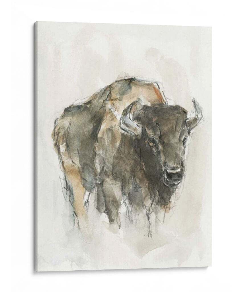 Captura la fuerza indomable de la naturaleza con "Buffalo Americano I", una obra de arte de Ethan Harper que evoca la majestuosidad del bisonte. Este cuadro decorativo, ejecutado con una técnica que combina trazos de carboncillo y acuarelas sutiles, presenta al imponente animal en una pose serena pero poderosa. La paleta de colores, dominada por tonos tierra, grises suaves y toques de ocre, crea una atmósfera de calma y conexión con lo salvaje. La composición, centrada en la figura del bisonte, resalta su textura y forma de manera expresiva, con un fondo difuminado que permite que la obra respire y el sujeto principal destaque. Es la pieza perfecta para infundir carácter y elegancia rústica en cualquier espacio, ya sea una sala de estar moderna, un estudio acogedor o un recibidor que busque dejar una impresión duradera. "Buffalo Americano I" no es solo una decoración de pared; es una ventana a la grandeza del espíritu americano, ideal para amantes de la fauna y el arte contemporáneo con un toque orgánico. Añade esta pieza a tu colección y trae la esencia de la pradera a tu hogar.