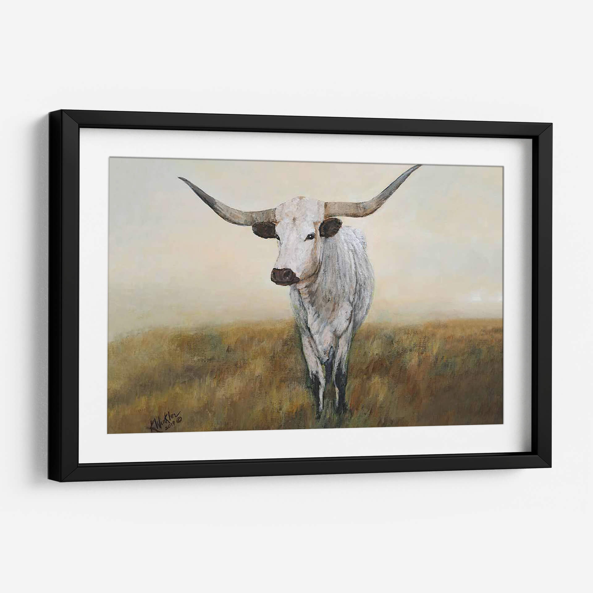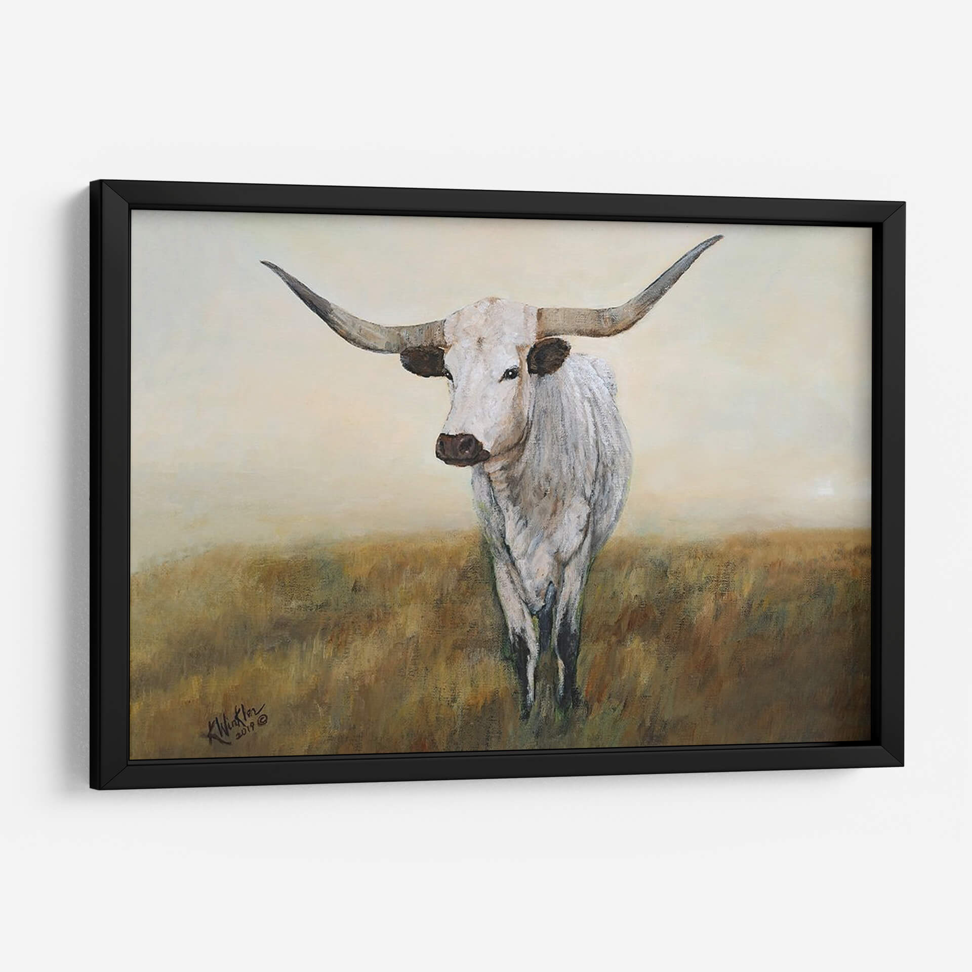Embellece tu espacio con el majestuoso cuadro decorativo 'Caballero En Blanco Satinado II', una obra cautivadora de Kathy Winkler. Esta pieza captura la imponente presencia de un toro de cuernos largos en un entorno pastoral, con una paleta de colores suaves y terrosos que irradian calma y serenidad. La detallada pincelada del artista da vida a la textura del pelaje blanco satinado del animal y al pasto dorado que lo rodea, creando una atmósfera de paz rural. La composición, centrada en la figura del toro, invita a la contemplación y aporta un punto focal distintivo a cualquier habitación. Ideal para salones, estudios o entradas que buscan un toque de elegancia rústica y una conexión con la naturaleza. Este cuadro decorativo no solo realza la estética de tu hogar u oficina, sino que también evoca un sentimiento de fuerza tranquila y belleza natural, convirtiéndose en una adición memorable a tu colección de arte mural.