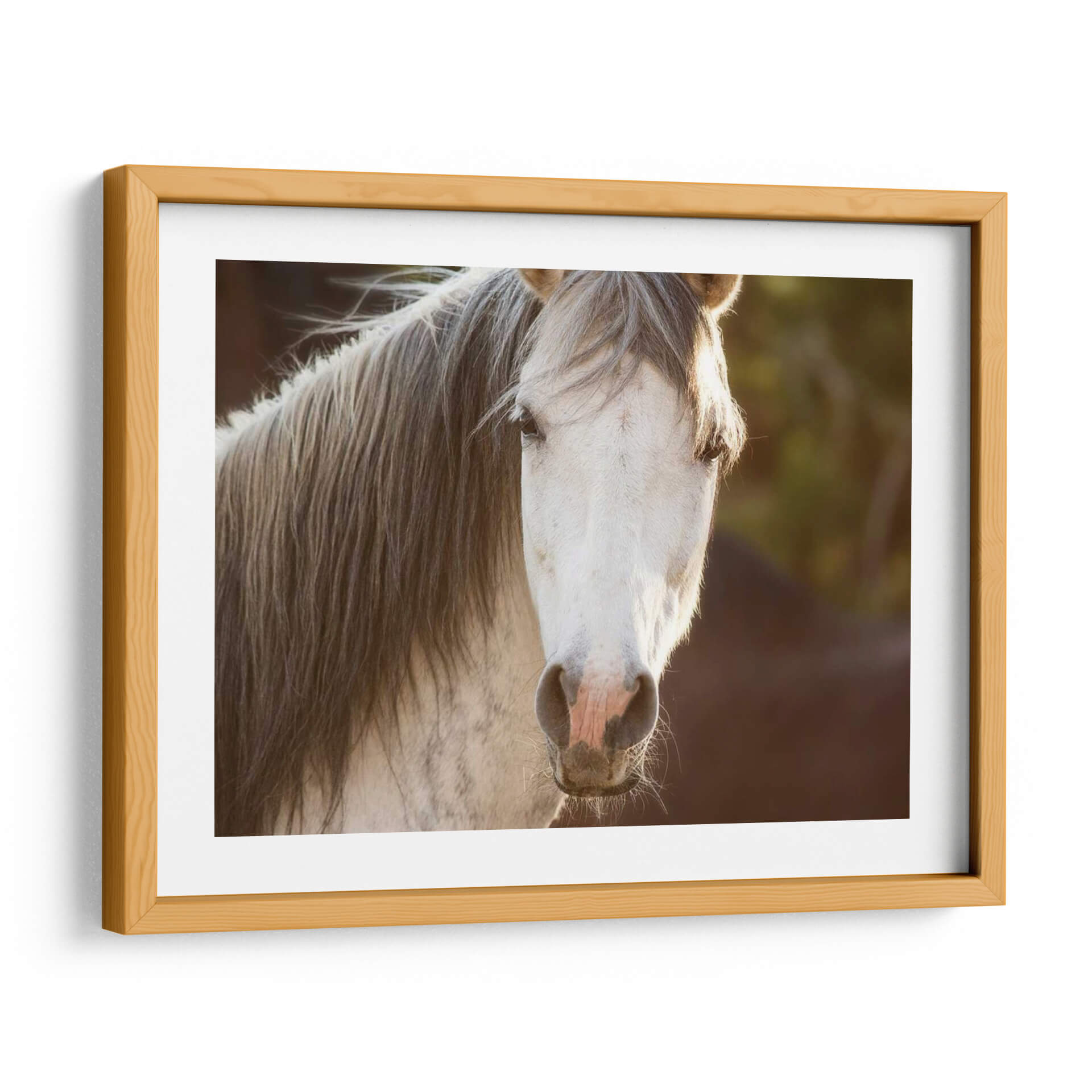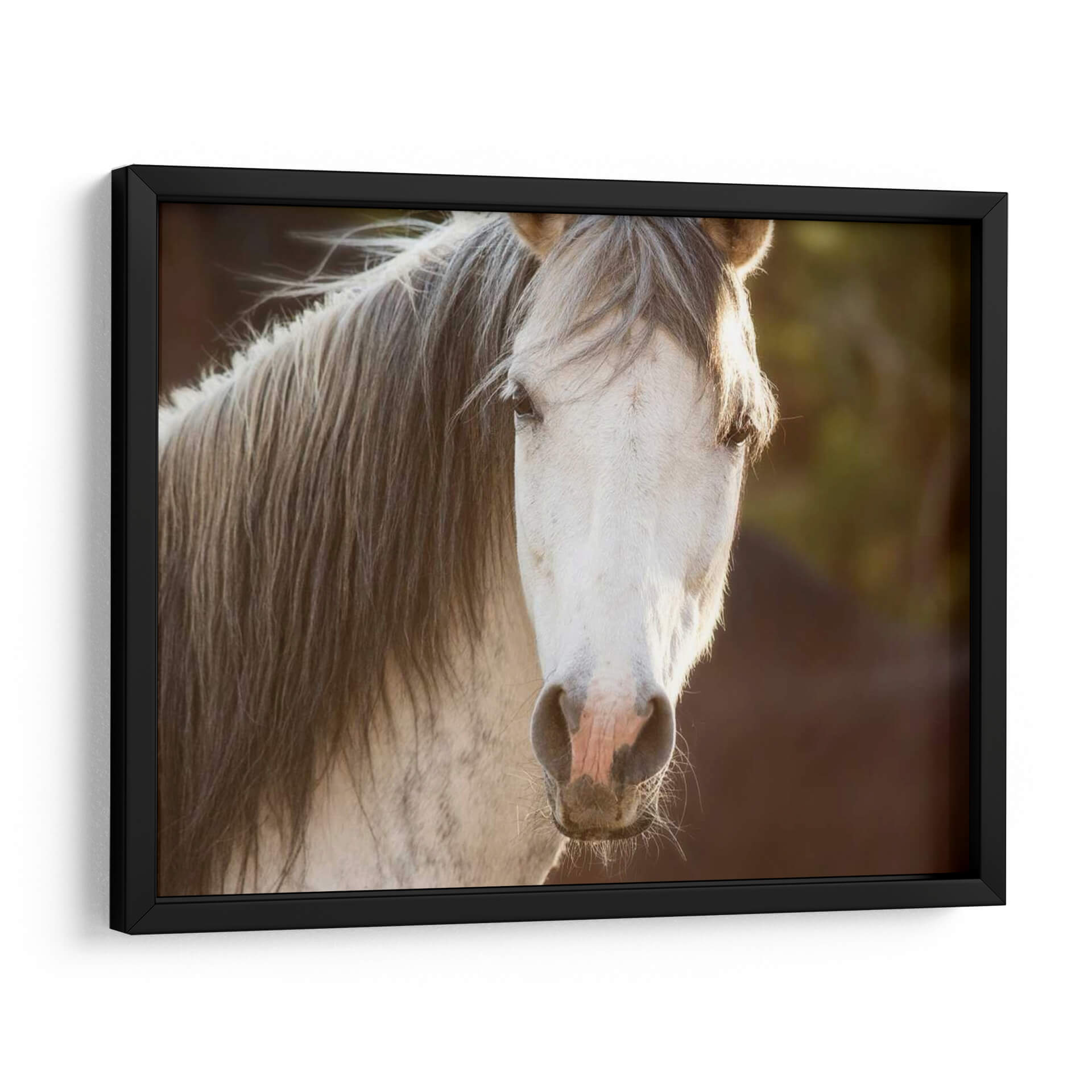 Captura la majestuosidad y la serenidad de la naturaleza con este impresionante cuadro decorativo "Caballo en el Campo Iv" de Ozana Sturgeon. La obra presenta un primer plano íntimo de un caballo de pelaje blanco y crin larga y sedosa, bañado por una luz cálida y dorada que resalta la textura de su pelaje y la suavidad de su rostro. El fondo, sutilmente desenfocado en tonos terrosos y verdosos, añade profundidad y un aire de paz campestre. Este retrato ecuestre transmite una sensación de calma, nobleza y conexión con el mundo natural, convirtiéndolo en una pieza ideal para añadir un toque de elegancia rústica a cualquier estancia. Su composición detallada y la atmósfera evocadora lo hacen perfecto para salones, dormitorios o estudios que busquen un punto focal inspirador y sereno. La calidad artística de Ozana Sturgeon se manifiesta en cada detalle, invitando a la contemplación y al aprecio por la belleza animal. Este cuadro es más que una decoración; es una ventana a la tranquilidad del campo y la fuerza serena de un noble corcel.