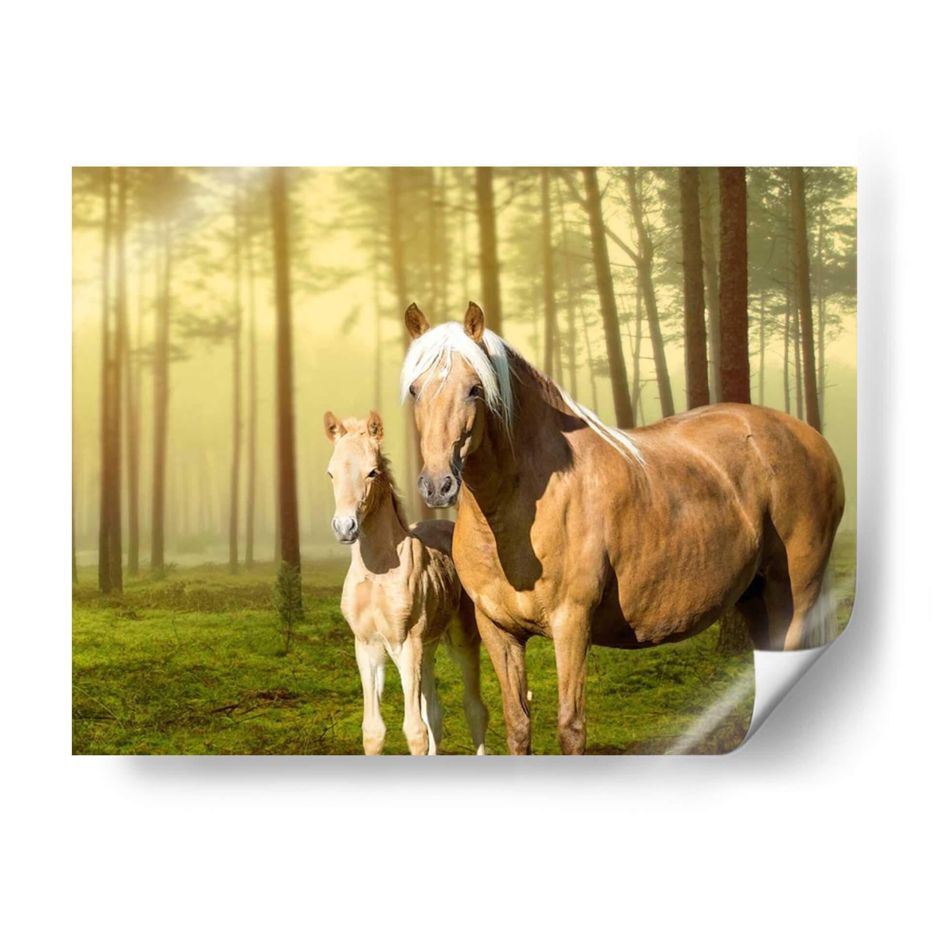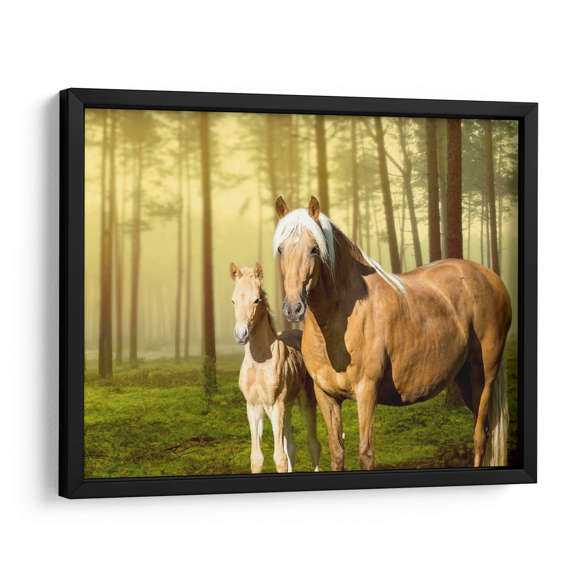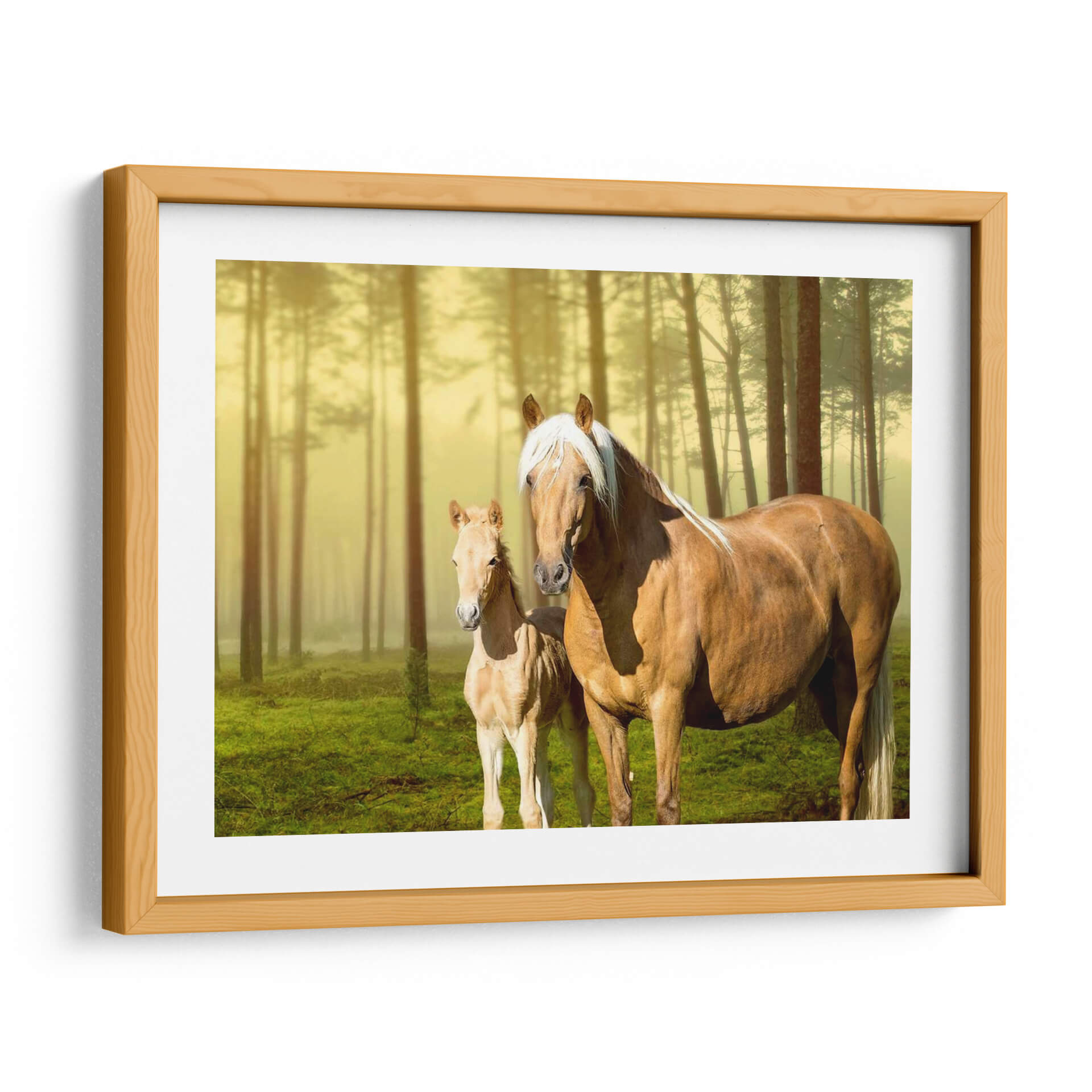 Captura la majestuosidad y la conexión familiar con este evocador cuadro decorativo de caballos en un campo idílico. La obra, titulada 'Caballos En El Campo Ii' del artista Ozana Sturgeon, transporta al espectador a un bosque sereno bañado por una luz dorada y difusa. Se aprecian dos caballos de tonalidad dorada, un adulto y su cría, destacando la ternura del vínculo materno y la elegancia natural de estos magníficos animales. El entorno natural, con árboles esbeltos y un manto de hierba verde vibrante, crea una atmósfera de paz y tranquilidad. La paleta de colores, dominada por tonos tierra, verdes y dorados cálidos, aporta una sensación de calidez y armonía, ideal para cualquier espacio que busque un toque de serenidad y conexión con la naturaleza. Este cuadro decorativo es una pieza que invita a la contemplación, perfecta para añadir un punto focal natural y emotivo a tu sala de estar, dormitorio o cualquier estancia donde desees transmitir calma y belleza. Su estilo realista con toques etéreos lo convierte en una adición versátil para decoraciones rústicas, modernas o bohemias.