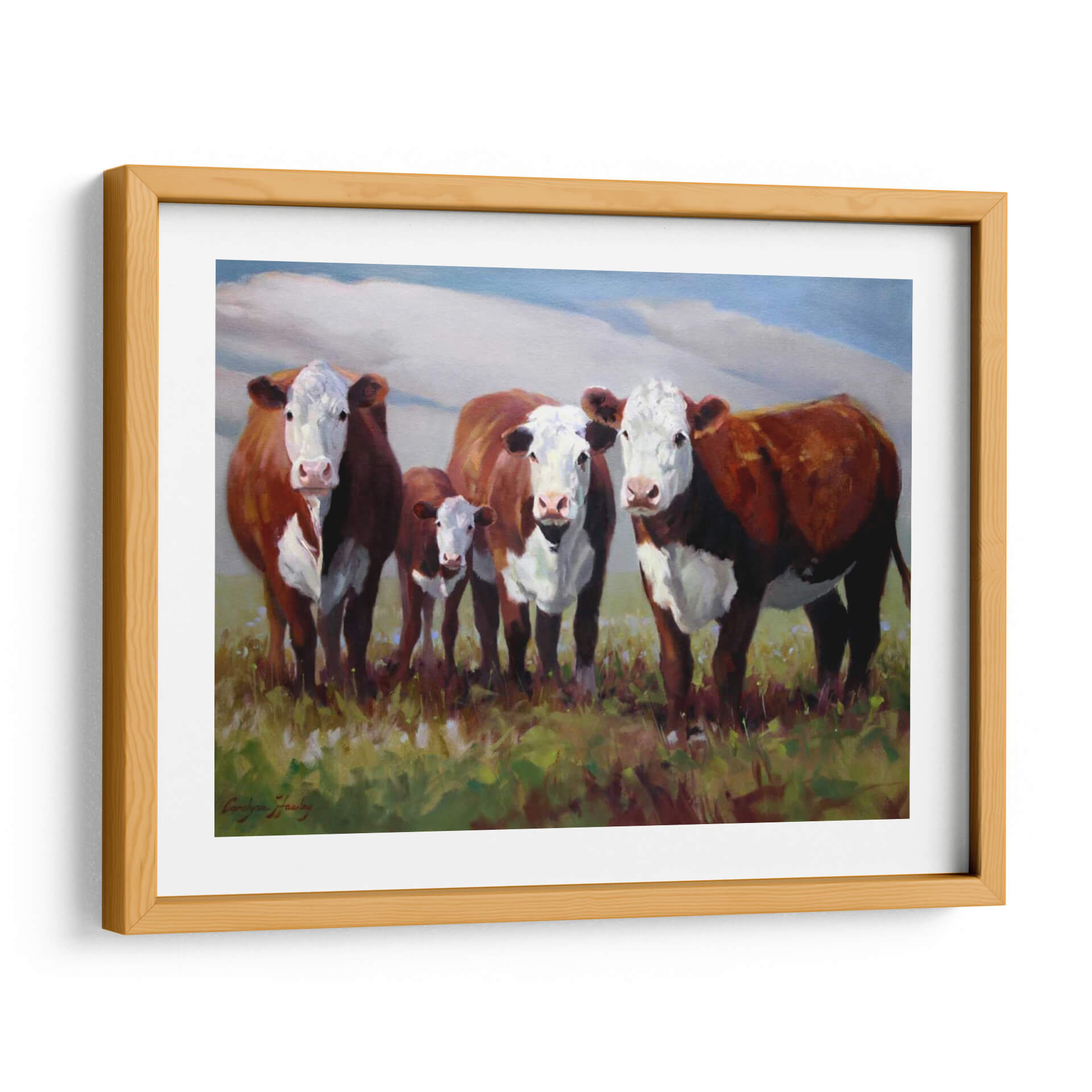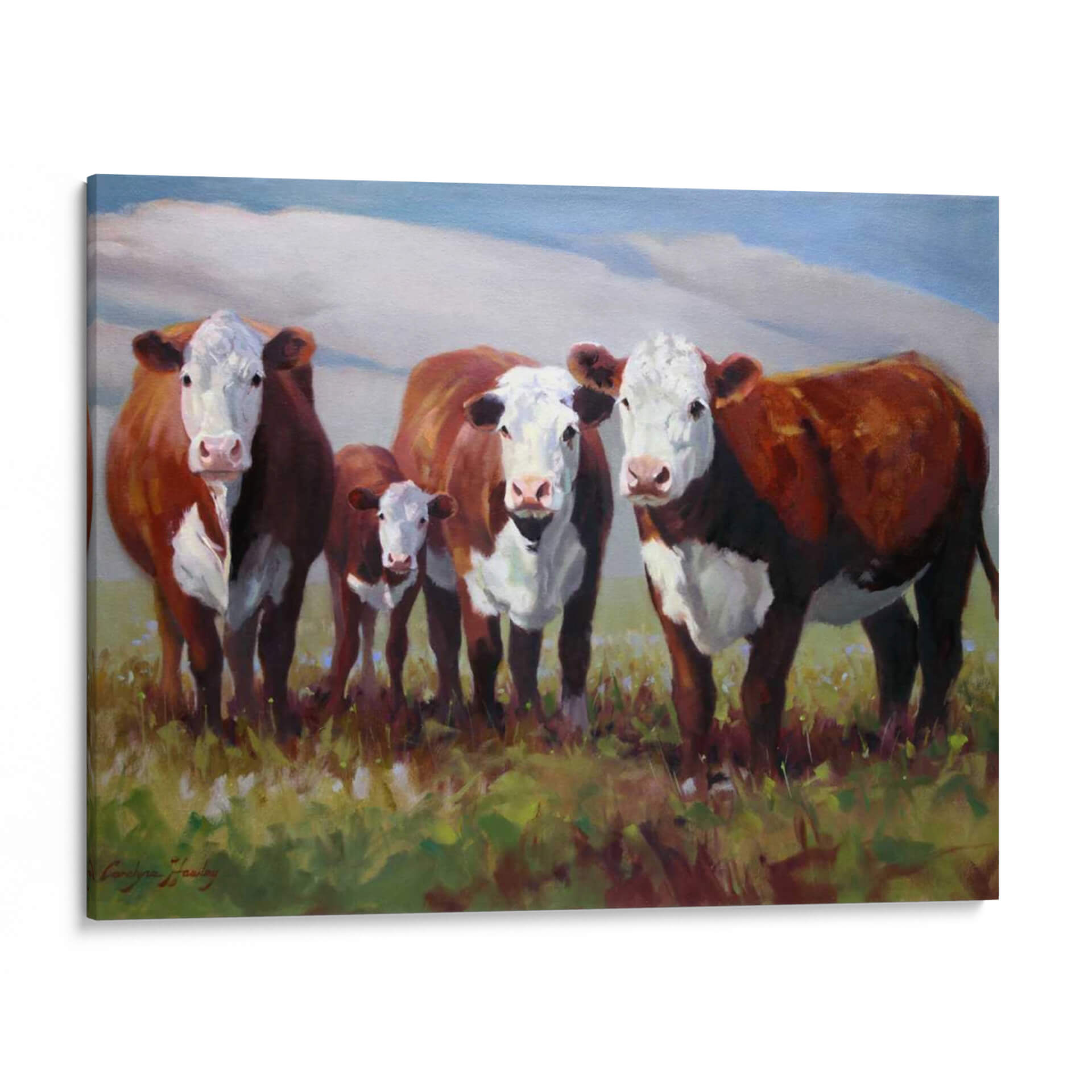 Sumérgete en la serenidad del campo con "Casa A La Vista", una cautivadora obra de arte de Carolyne Hawley que captura la esencia de la vida rural. Este cuadro decorativo presenta un grupo de vacas, incluyendo un ternero juguetón, pastando en un prado exuberante bajo un cielo azul con nubes esponjosas. La paleta de colores se centra en tonos tierra cálidos de marrón y blanco, contrastando maravillosamente con el verde vibrante de la hierba y los delicados toques de color azul y blanco en el cielo. El estilo impresionista de Hawley da vida a la escena con pinceladas sueltas y expresivas, transmitiendo una atmósfera de paz y simplicidad campestre. La composición, que sitúa a los animales mirando directamente al espectador, crea una conexión íntima y acogedora. Esta pieza es perfecta para añadir un toque de calidez rústica y tranquilidad a cualquier espacio, ya sea una sala de estar, un comedor o incluso un estudio. "Casa A La Vista" no es solo una imagen, sino una ventana a un momento de serena belleza natural que invita a la contemplación y al disfrute de la vida sencilla. Un cuadro decorativo que evoca la armonía del campo y la dulzura de la naturaleza.