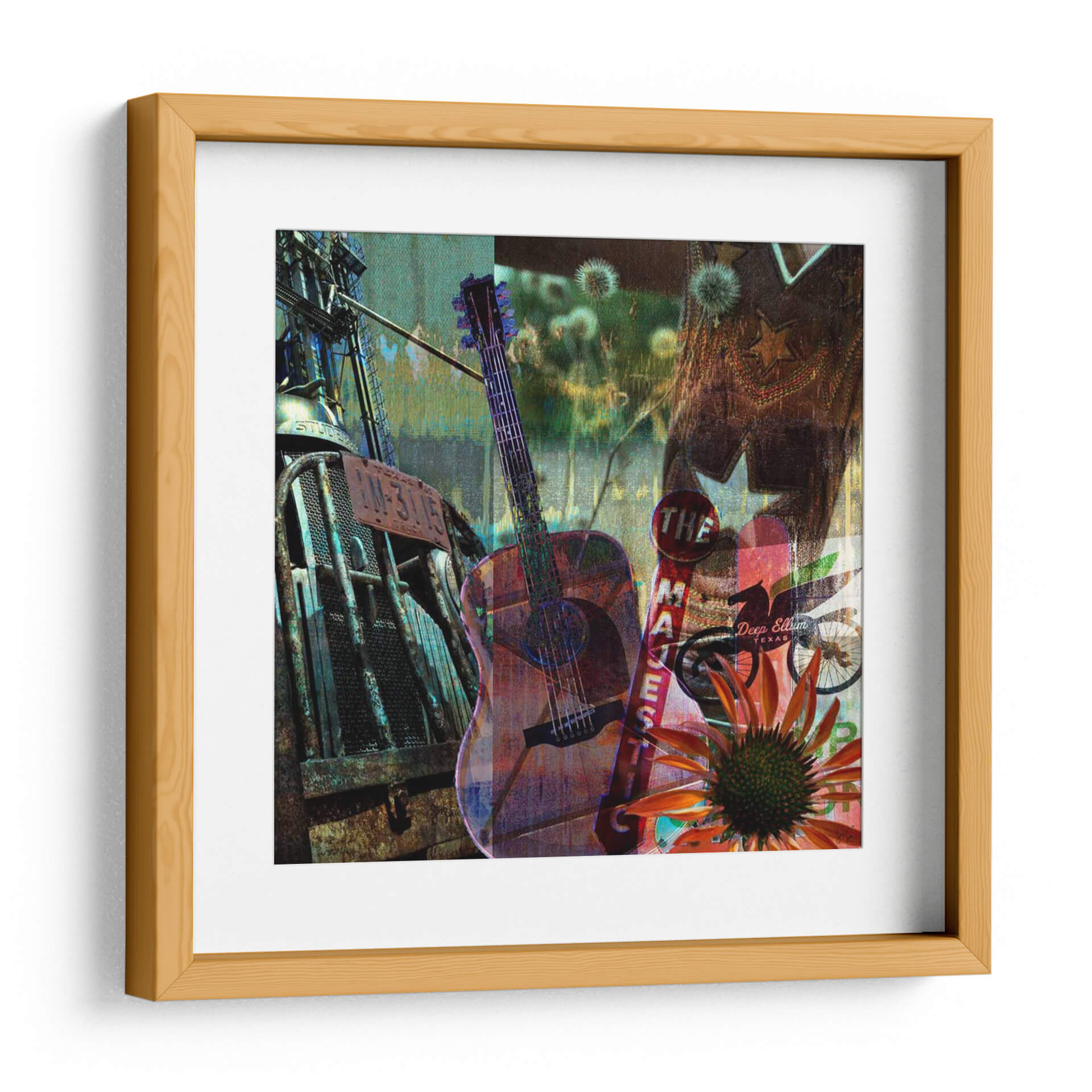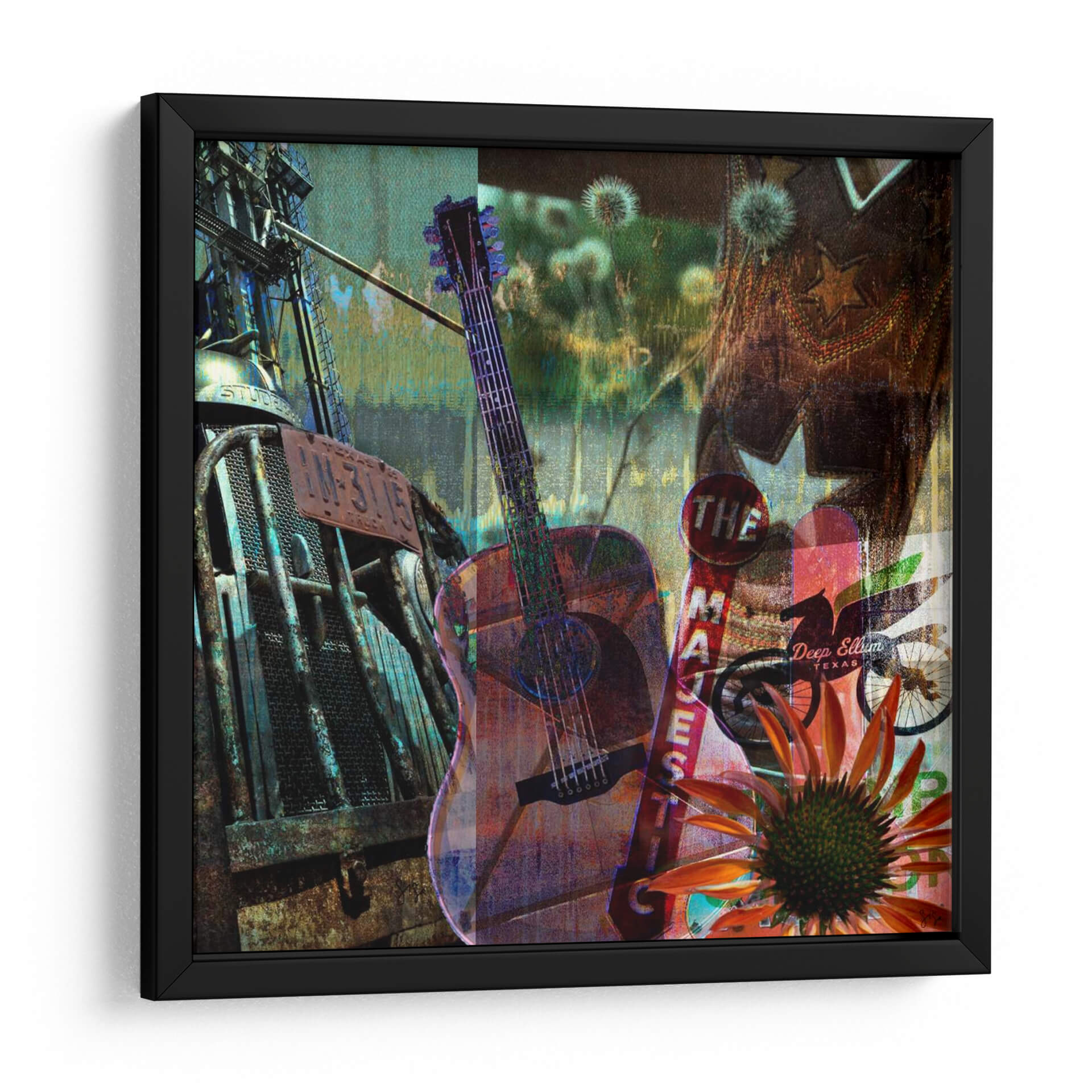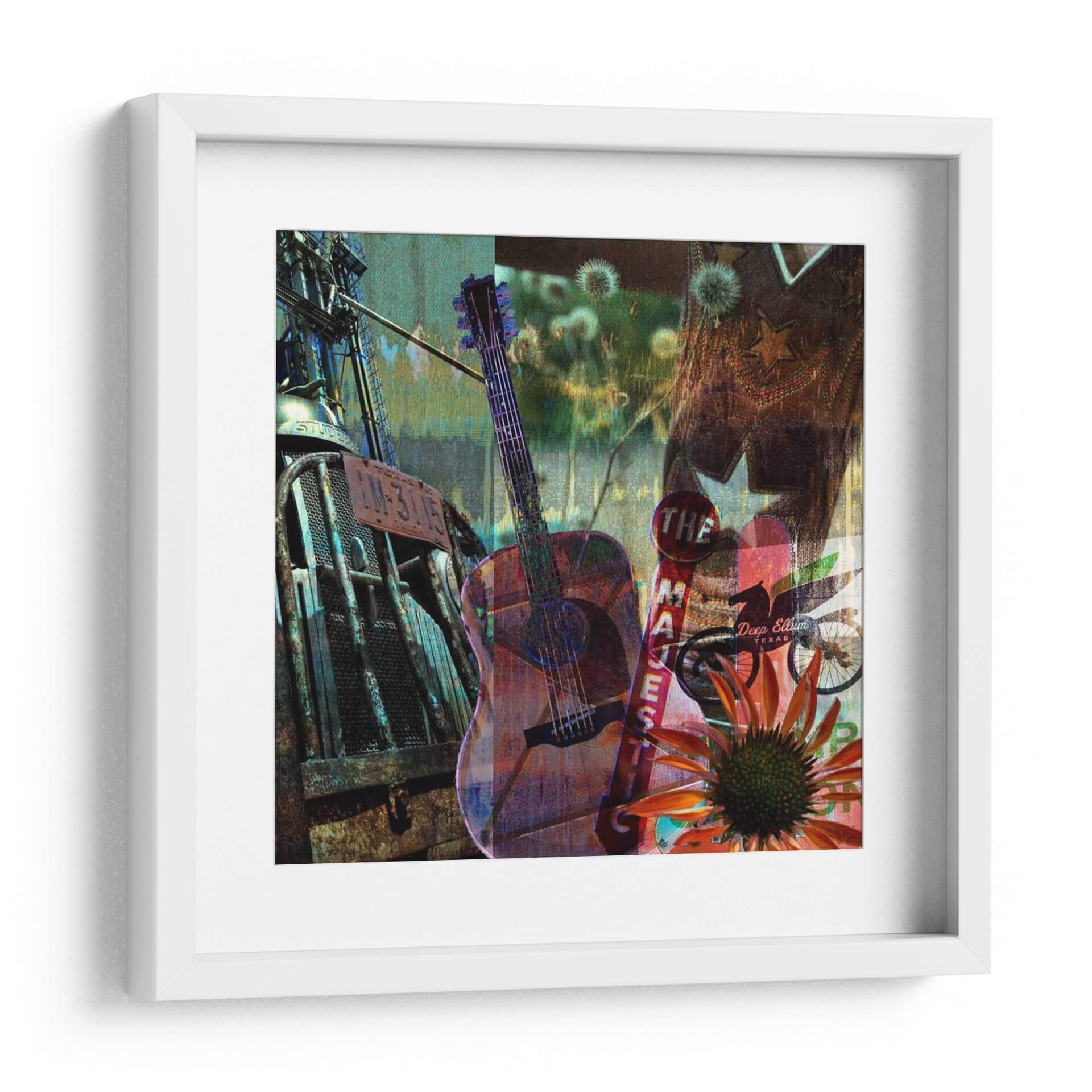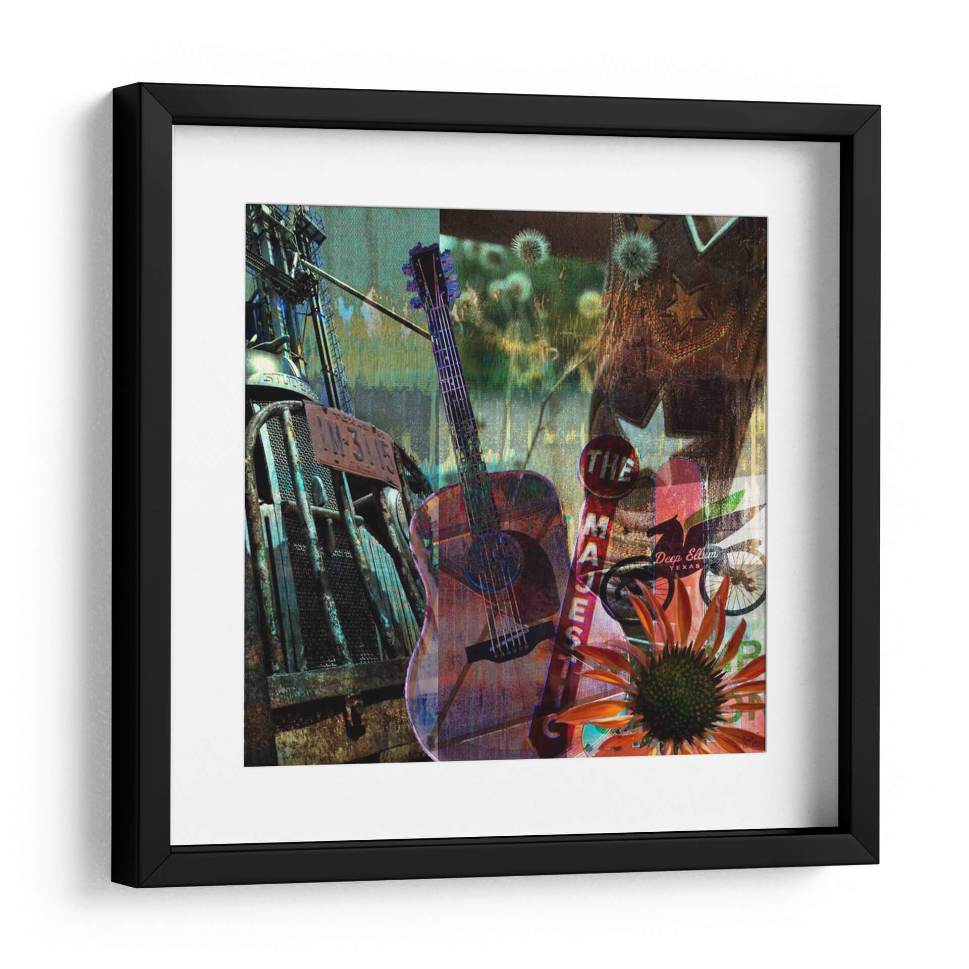 Sumérgete en la rica narrativa visual de "Collage De Guitarra" de Sisa Jasper, una obra de arte que evoca la esencia del espíritu americano y la música country. Este cautivador cuadro decorativo es una fusión de elementos icónicos: una guitarra acústica en primer plano, superpuesta con texturas rústicas, un sombrero de vaquero, un letrero de neón que evoca locales clásicos y toques de la naturaleza como una flor vibrante. La paleta de colores es rica y variada, con tonos tierra, ocres, azules profundos y acentos anaranjados que crean una atmósfera nostálgica y a la vez enérgica. El estilo collage, con su superposición de imágenes y texturas, aporta profundidad y dinamismo, invitando al espectador a descubrir cada detalle. Esta pieza es ideal para quienes buscan añadir un toque de carácter y personalidad a su hogar u oficina, especialmente en espacios decorados con un estilo rústico, industrial o ecléctico. "Collage De Guitarra" no es solo una decoración de pared, es una invitación a celebrar la música, la historia y la cultura americana, convirtiéndose en un punto focal que inspira conversaciones y evoca recuerdos. Transforma tu espacio con esta pieza única que combina arte y emoción.