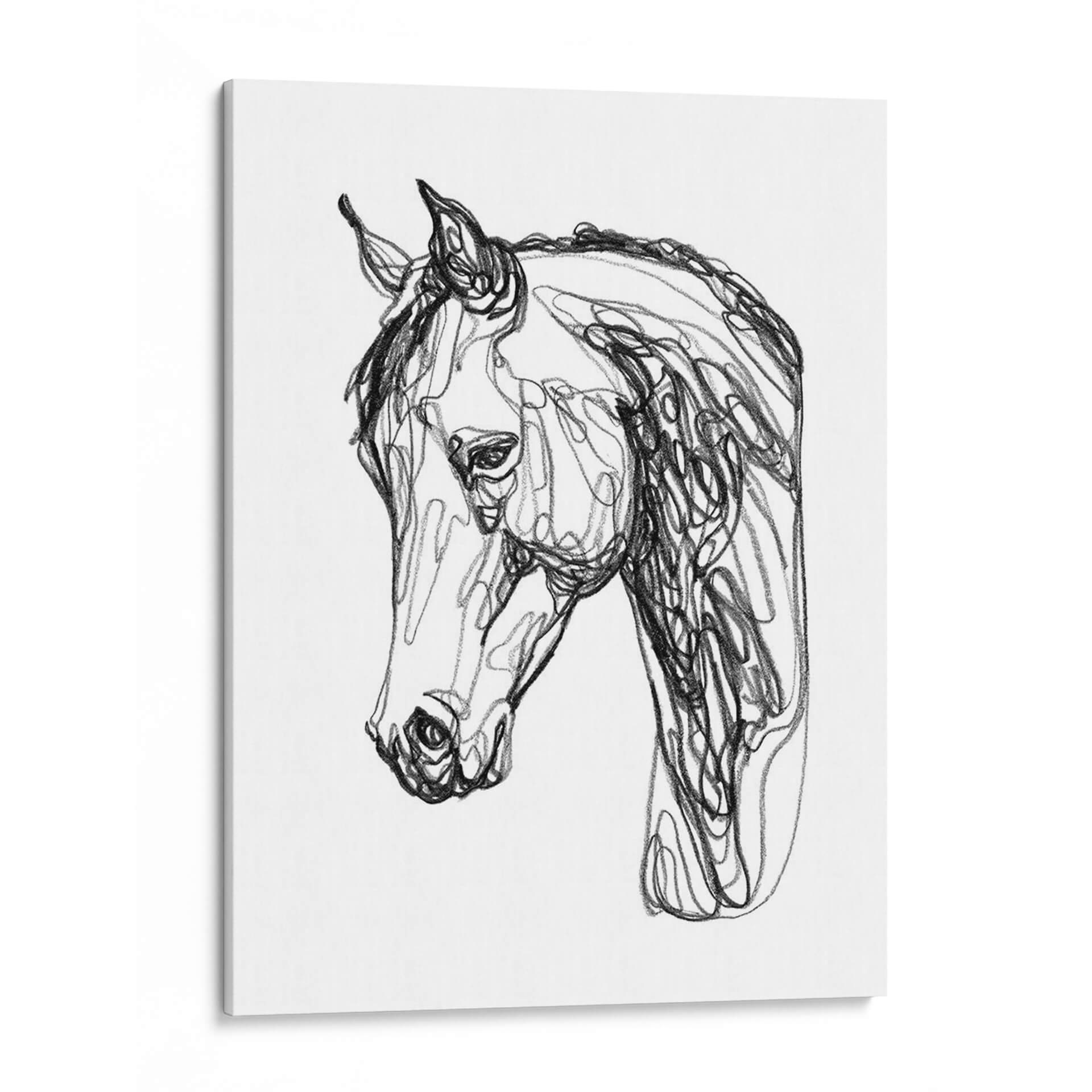 Sumérgete en la elegancia y el poder del 'Contorno Equino II', una obra de arte que captura la esencia majestuosa de un caballo con trazos audaces y expresivos. Creado por la talentosa artista Emma Scarvey, este cuadro decorativo minimalista se centra en el contorno y la forma del equino, utilizando una técnica de dibujo a lápiz o carboncillo que evoca una sensación de movimiento y vida. La paleta de colores monocromática, dominada por el contraste entre el negro y el blanco, otorga a la pieza una sofisticación atemporal y versátil, permitiendo que se integre armoniosamente en una amplia gama de estilos decorativos, desde el moderno hasta el rústico o escandinavo. La composición se enfoca en el retrato de la cabeza del caballo, transmitiendo una atmósfera de calma, nobleza y fuerza interior. Este cuadro decorativo es ideal para aquellos que buscan añadir un toque de naturaleza y refinamiento a su hogar u oficina. Ya sea en un salón, dormitorio, estudio o pasillo, 'Contorno Equino II' se convertirá en un punto focal que inspira admiración y conexión con el mundo animal, aportando carácter y una elegancia sutil a cualquier pared. Una pieza que combina la pasión por el arte ecuestre con un diseño contemporáneo y atractivo.