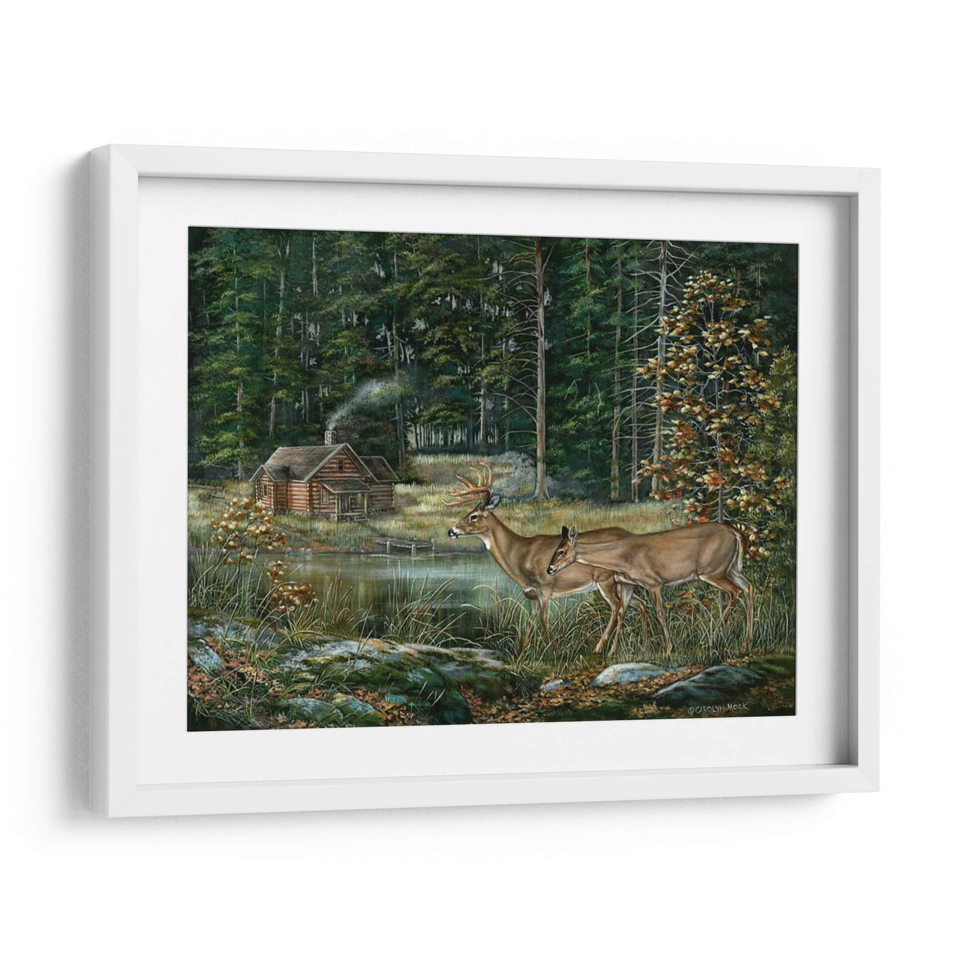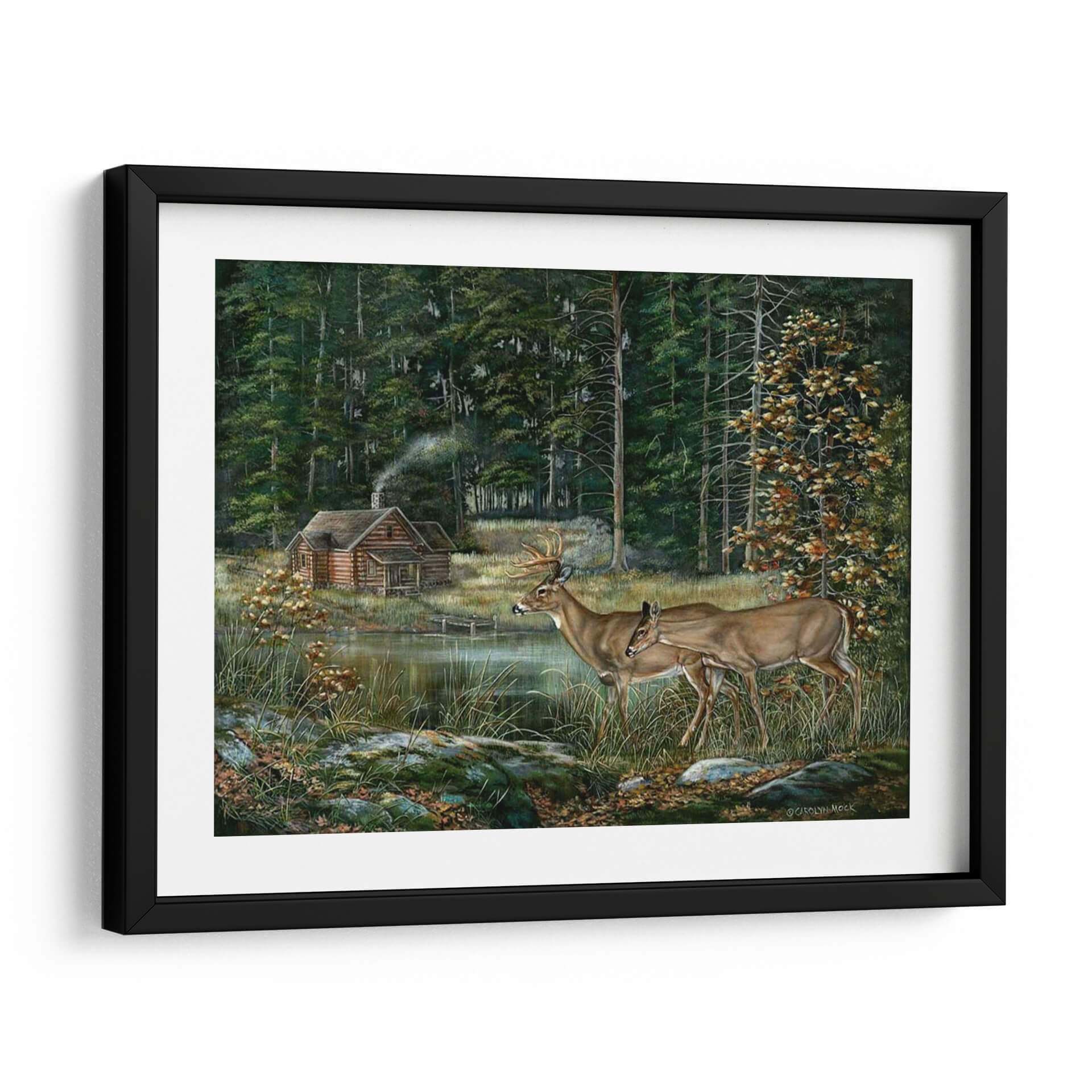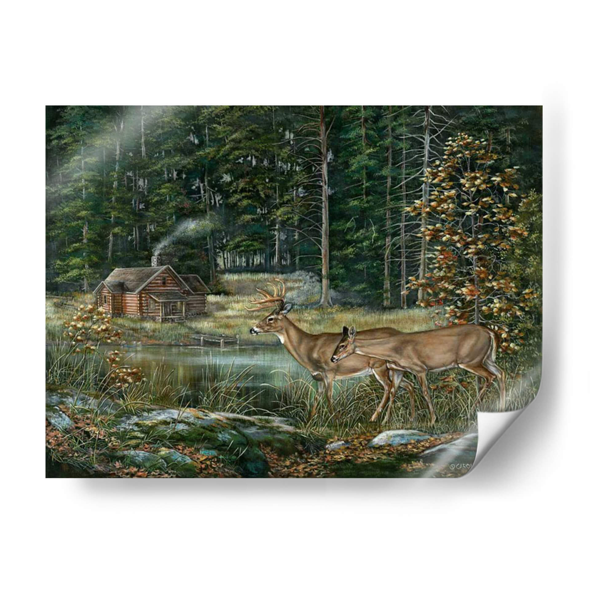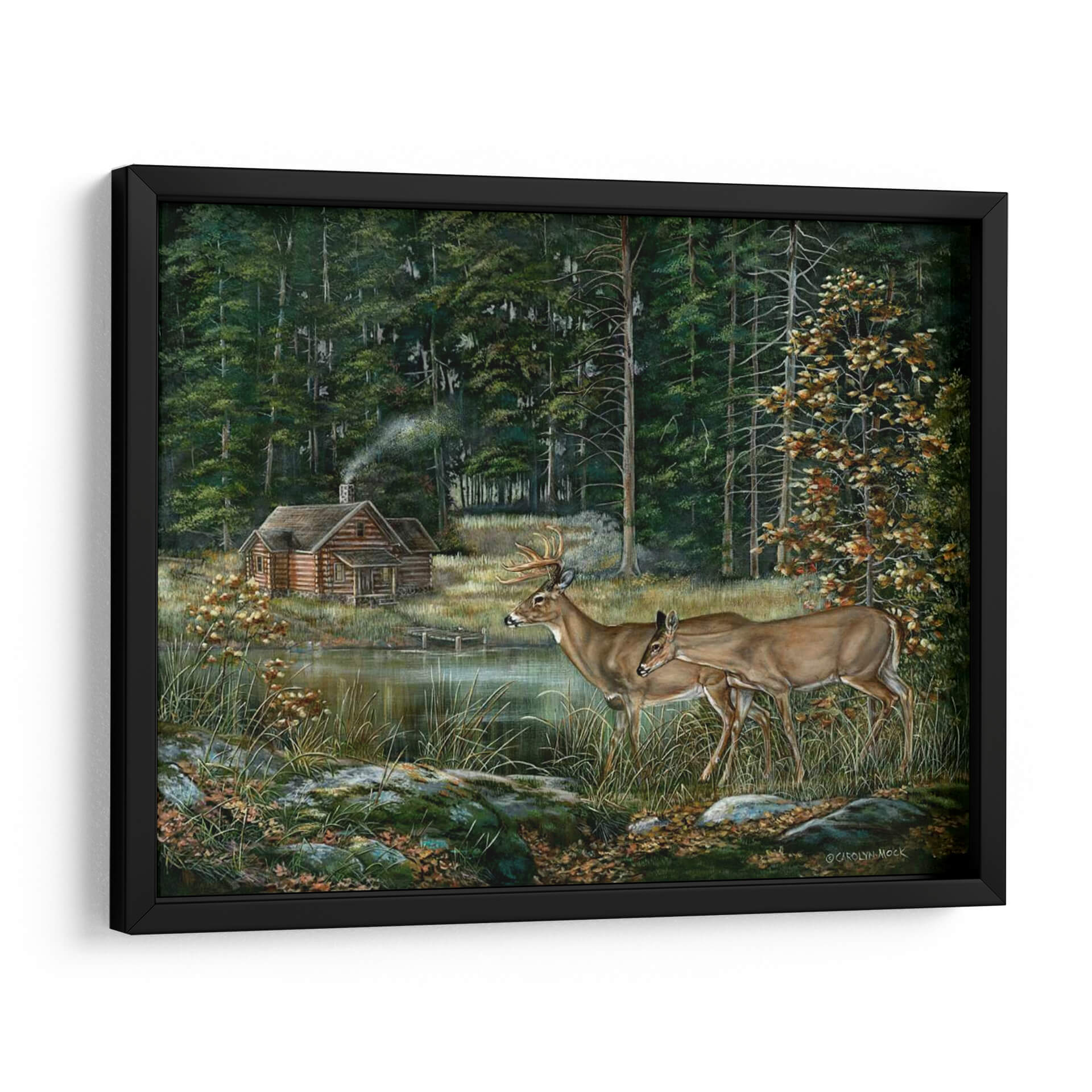 Sumérgete en la serena belleza de 'Crepúsculo de Mira', una obra de arte que captura la esencia de un refugio forestal al anochecer. Esta pieza presenta una acogedora cabaña de madera junto a un lago tranquilo, rodeada por la densa y misteriosa vegetación de un bosque. Dos ciervos, majestuosos y en calma, se acercan a la orilla del agua, añadiendo un toque de vida salvaje y gracia a la escena. La paleta de colores, dominada por profundos verdes, tonos tierra y las suaves luces del atardecer, evoca una atmósfera de paz y conexión con la naturaleza. Los detalles en la vegetación, las hojas caídas y el humo que emana de la chimenea de la cabaña, invitan a la contemplación y al sosiego. 'Crepúsculo de Mira' es ideal para quienes buscan infundir en su hogar una sensación de tranquilidad, escapismo y admiración por la vida silvestre. Este cuadro decorativo es perfecto para salas de estar, estudios o dormitorios, aportando un aire rústico y elegante que transformará cualquier espacio en un santuario personal. Deja que esta obra maestra te transporte a un mundo de calma y belleza natural.