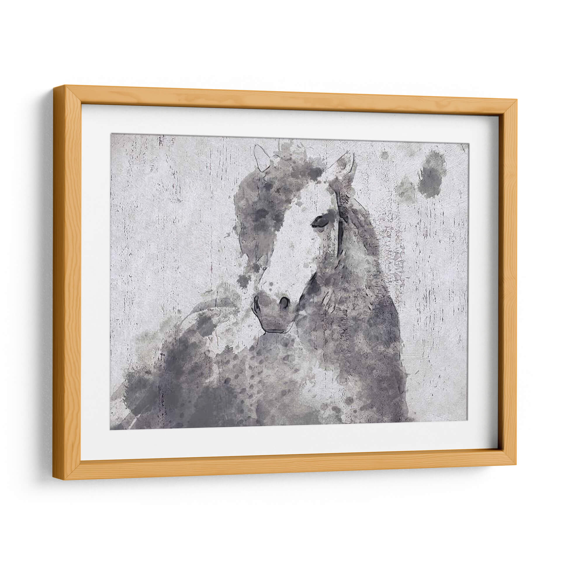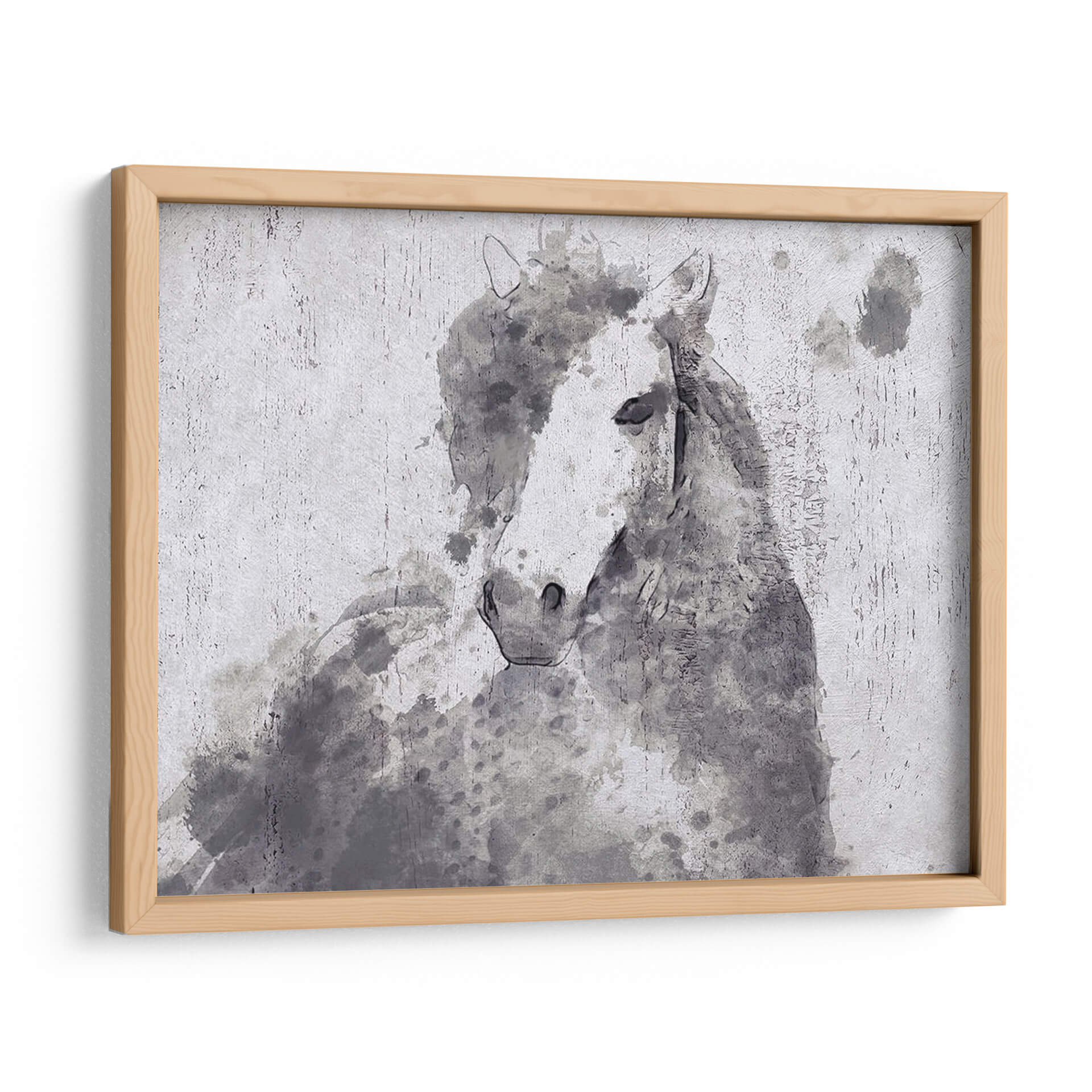 Captura la majestuosidad y la delicadeza del mundo ecuestre con este evocador cuadro decorativo "Dapple Horse II" de Irena Orlov. La obra presenta una interpretación artística de un caballo, realizada en un estilo que recuerda a la acuarela y el boceto a carboncillo, con trazos sueltos y manchas de tinta que confieren una sensación de movimiento y vida. La paleta de colores, dominada por grises, blancos y negros, crea una atmósfera serena y sofisticada, ideal para complementar una amplia gama de estilos decorativos, desde el moderno hasta el rústico o minimalista. La composición, centrada en la figura del caballo, invita a la contemplación y transmite una sensación de fuerza tranquila y elegancia natural. Este cuadro es perfecto para añadir un toque de arte contemporáneo y personalidad a tu salón, dormitorio, oficina o cualquier espacio que busque una conexión con la naturaleza y la belleza animal. Su diseño versátil lo convierte en una pieza de conversación y una fuente de inspiración diaria, fusionando la técnica artística con la emotividad de la figura equina.
