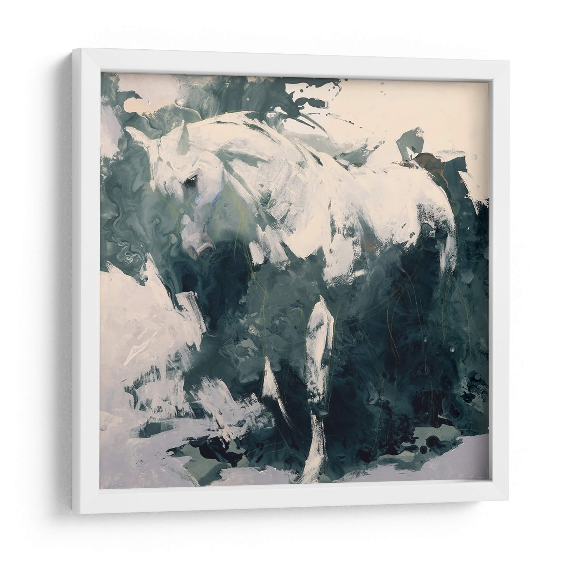 Sumérgete en la majestuosidad y el misterio con "Estudiar En Verde", una obra de arte de Julie T. Chapman que captura la esencia de un caballo blanco en un entorno abstracto y evocador. Las pinceladas audaces y la paleta de colores dominada por verdes profundos y blancos puros crean una atmósfera de calma pero también de una fuerza latente. Esta pieza es perfecta para quienes buscan añadir un toque de elegancia y naturaleza a su hogar u oficina. La composición dinámica, que fusiona lo figurativo con lo abstracto, invita a la contemplación y se convierte en un punto focal cautivador para cualquier estancia. Ideal para salas de estar modernas, estudios o dormitorios que buscan una expresión artística única y con carácter. Este cuadro decorativo transformará tus espacios, aportando serenidad y un sentido de conexión con la naturaleza salvaje. Descubre la belleza atemporal de esta obra y deja que su energía renueve tu ambiente.